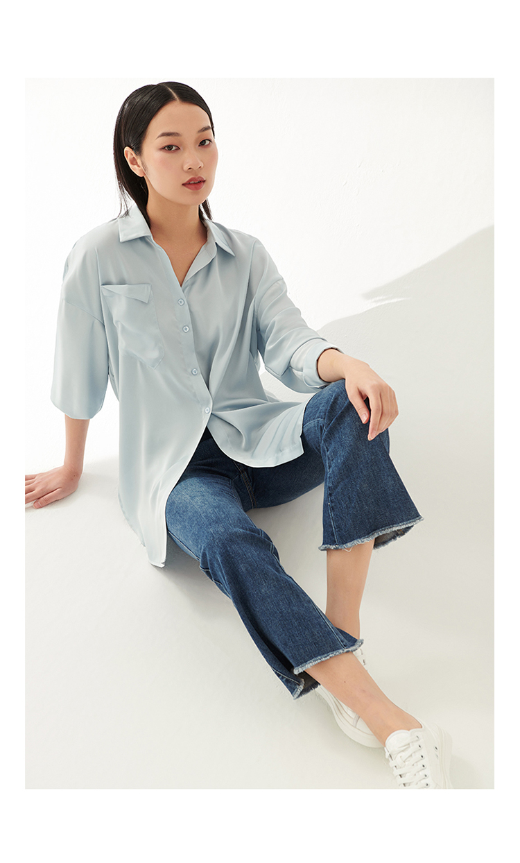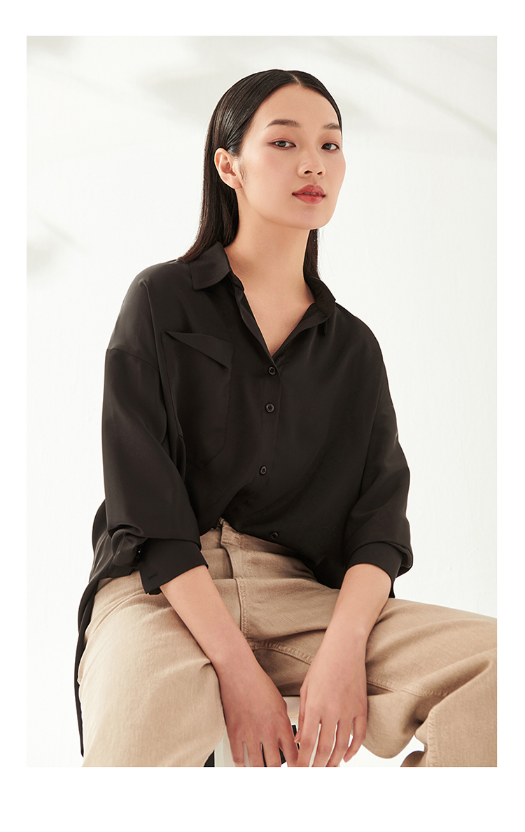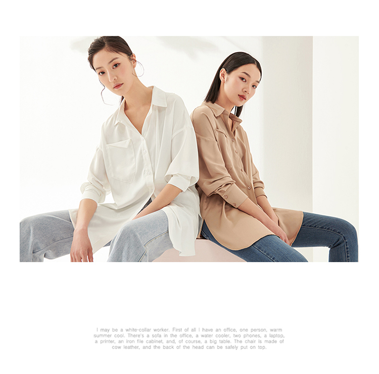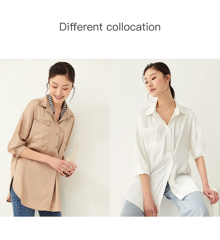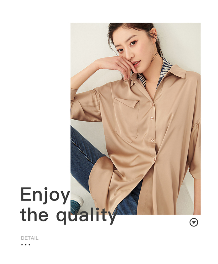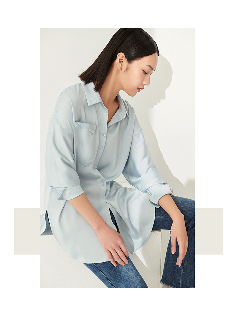 inandon女装春夏新款丝质系带两穿衬衫女收腰显瘦落肩中长上衣21226