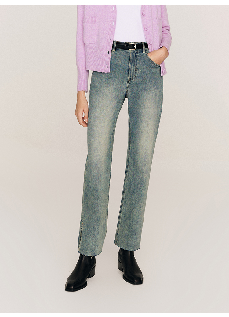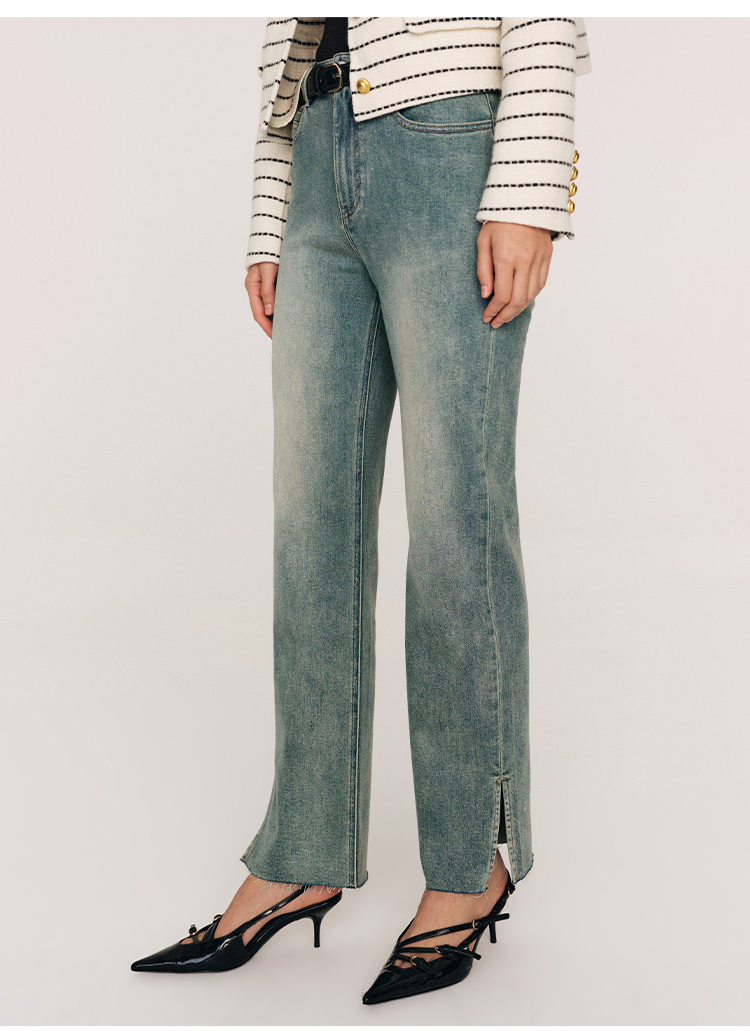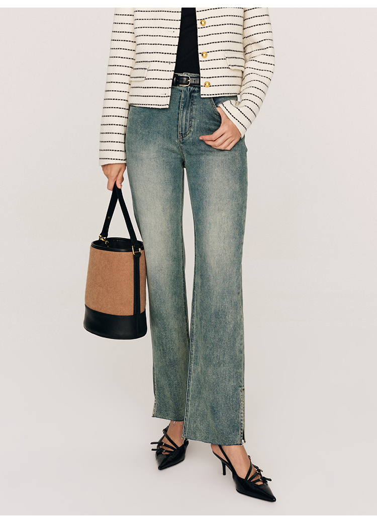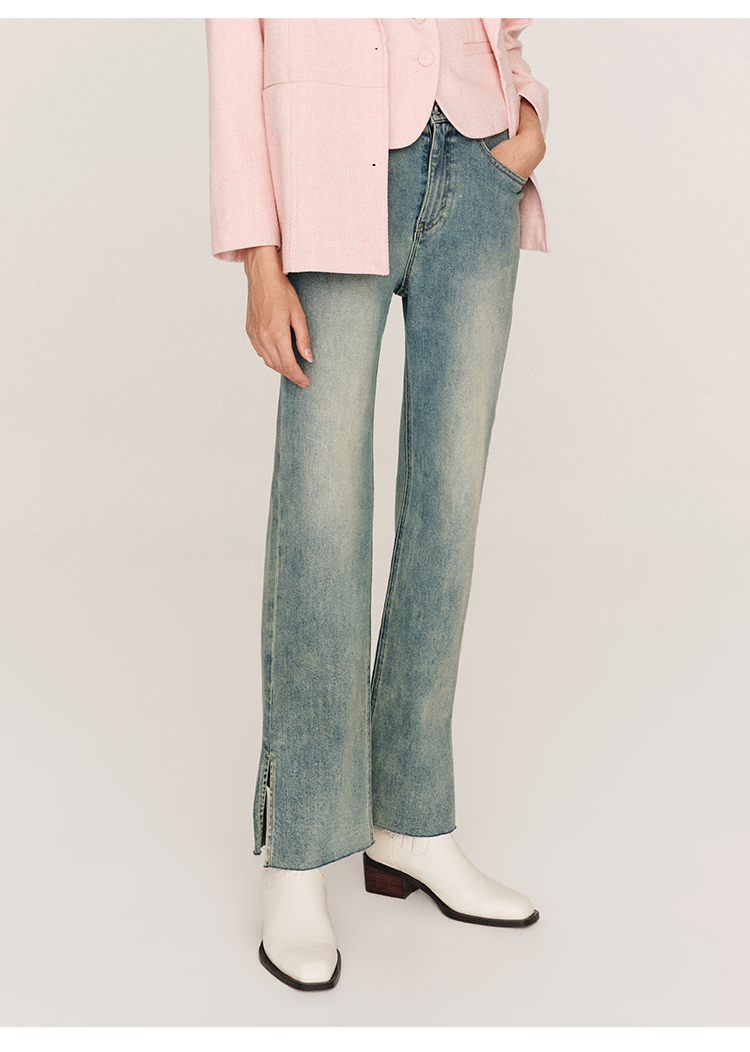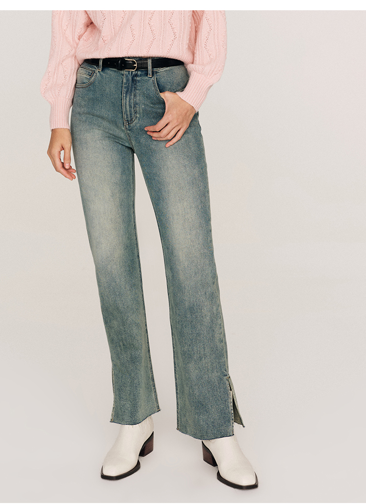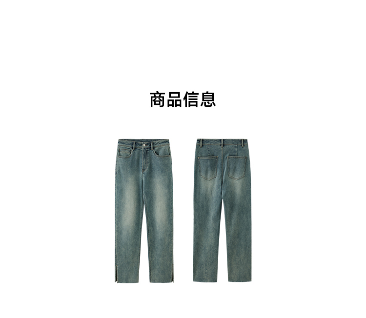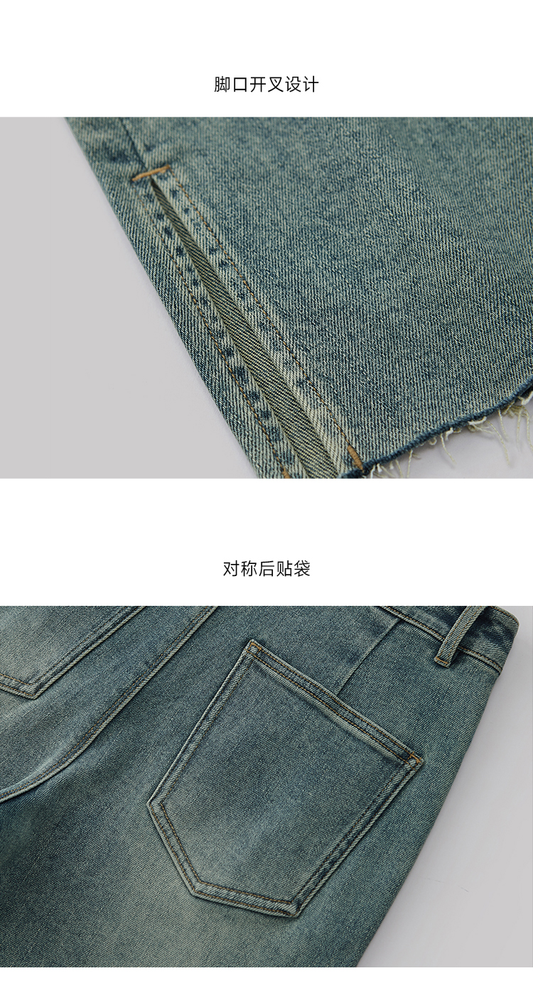 长腿牛仔 裤型绝佳 复古开衩直筒牛仔裤FB495023O