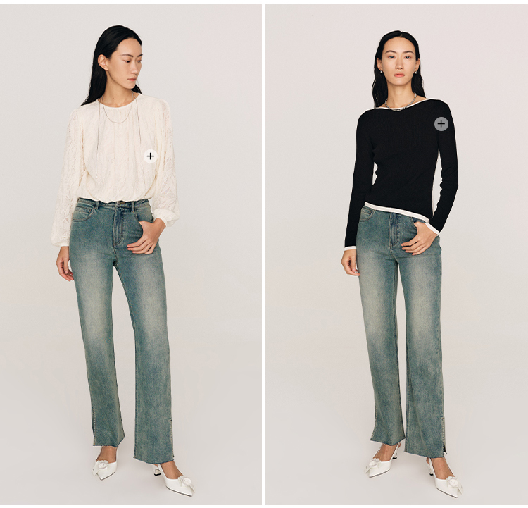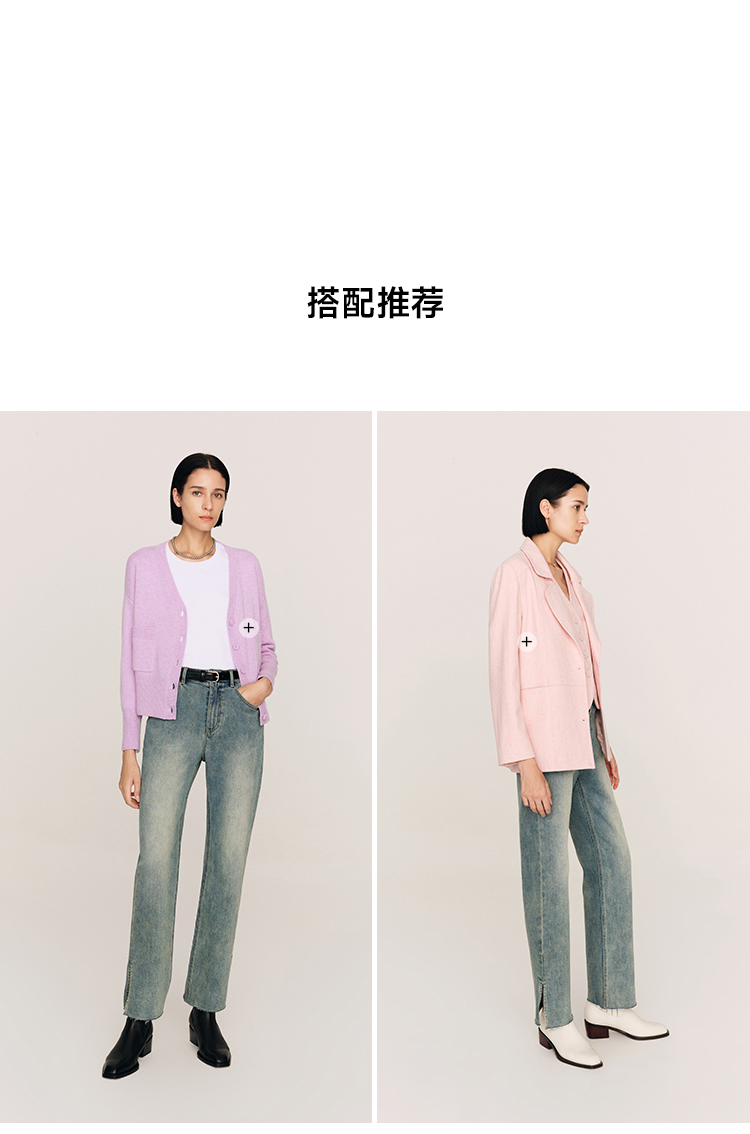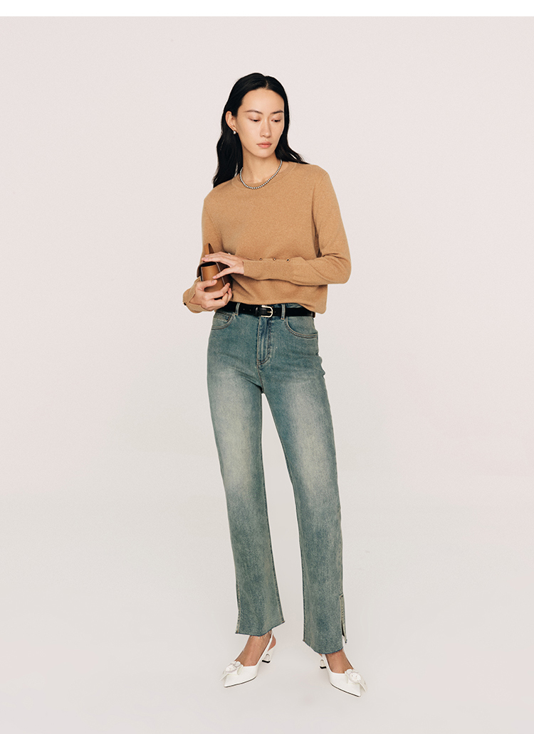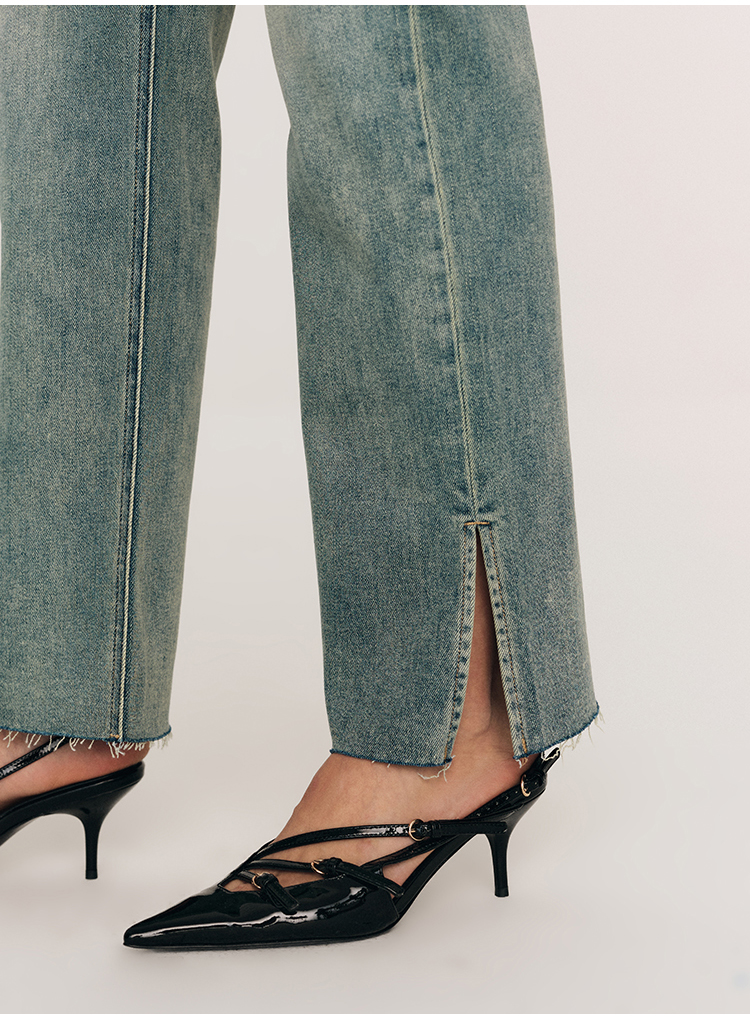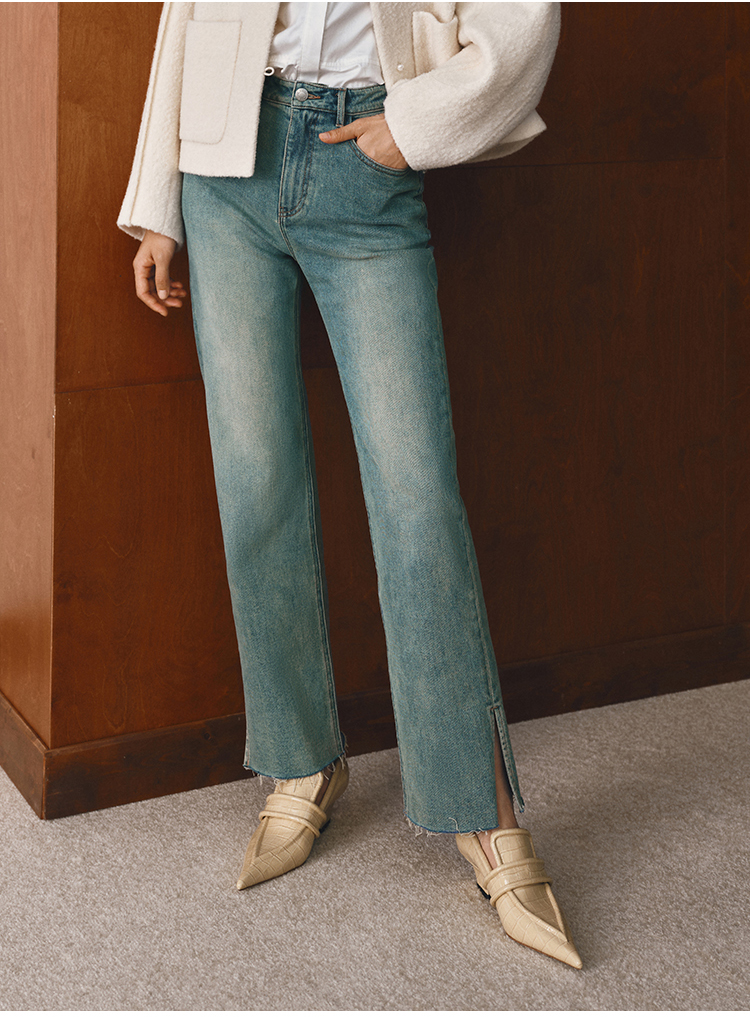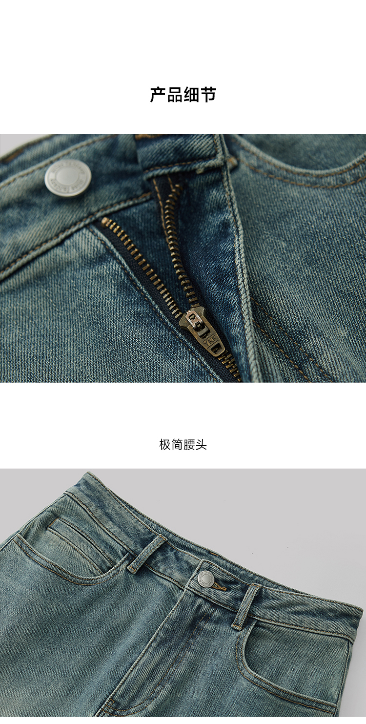长腿牛仔 裤型绝佳 复古开衩直筒牛仔裤FB495023O