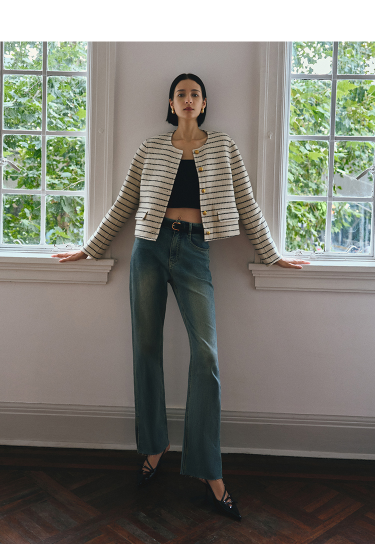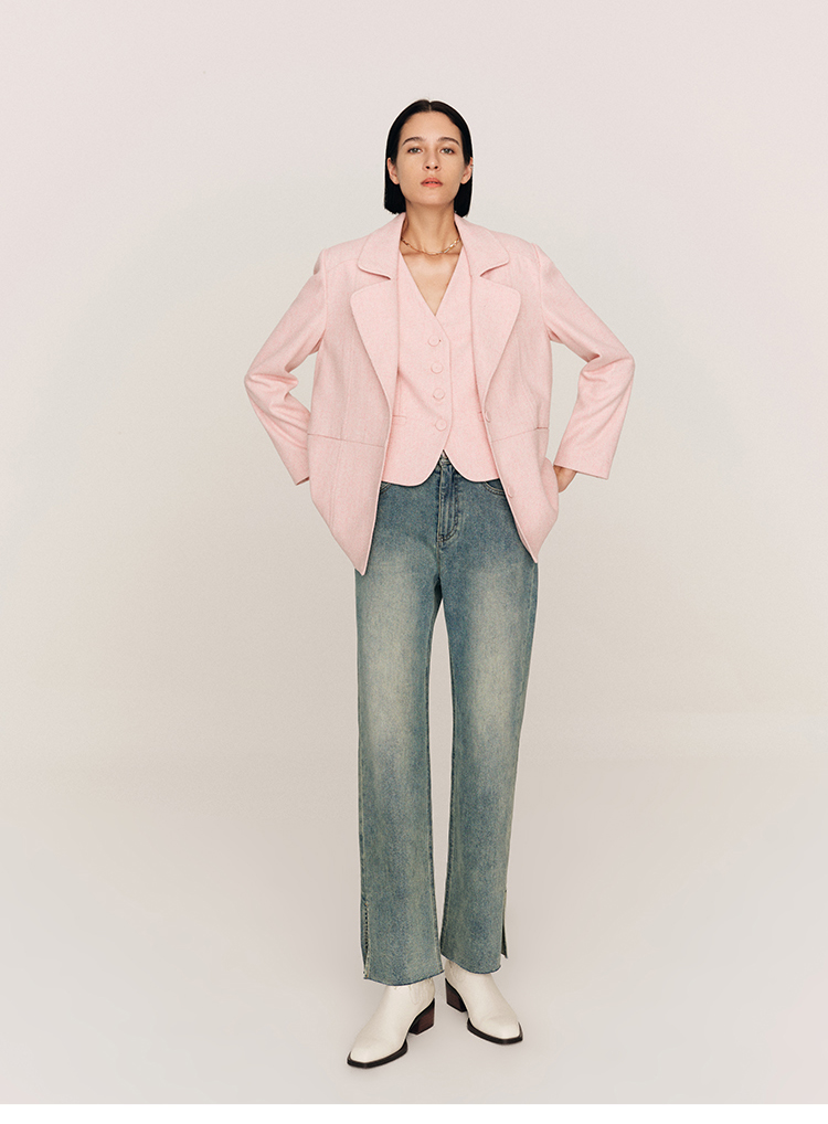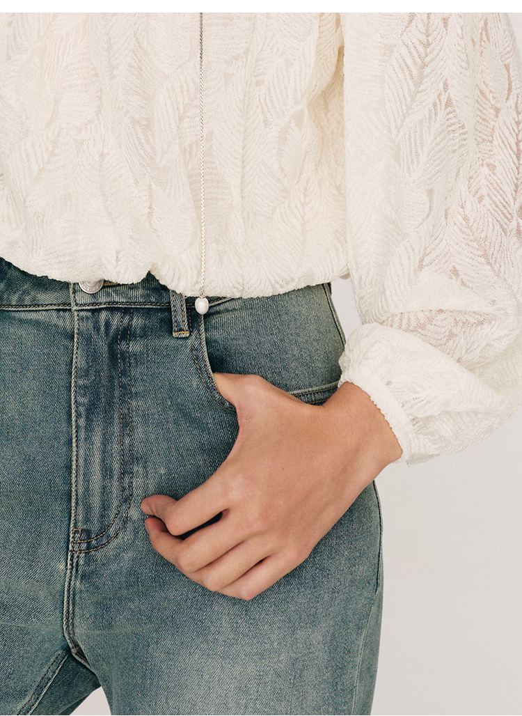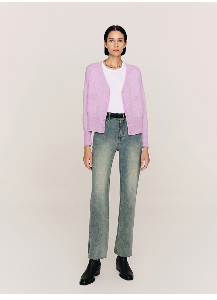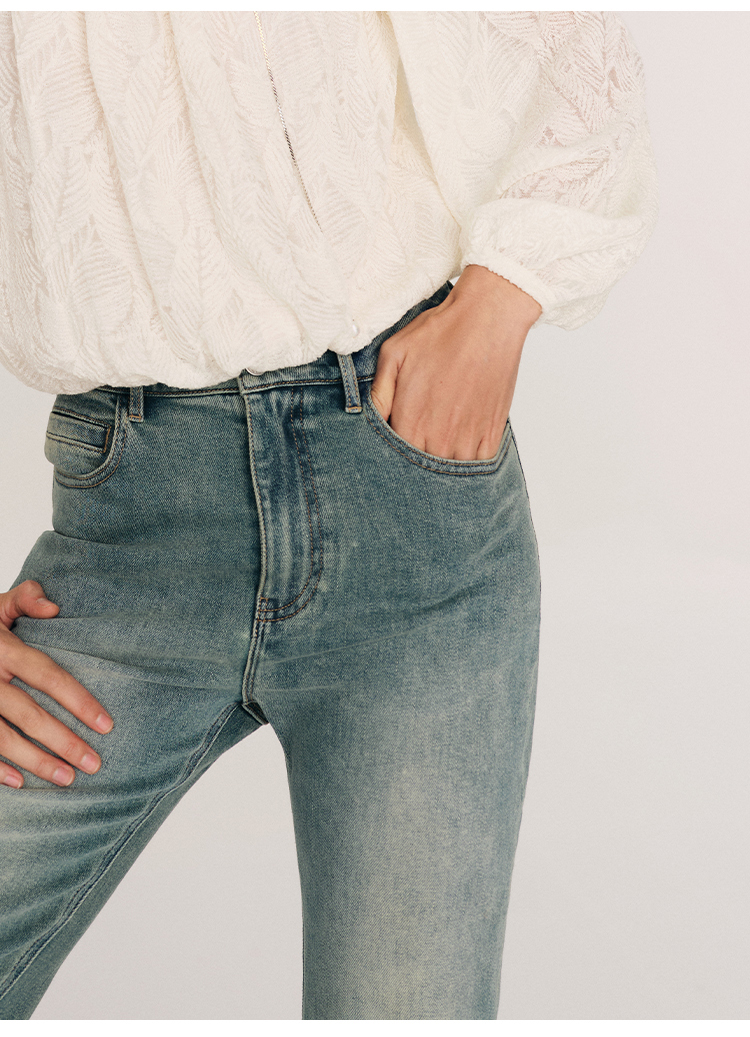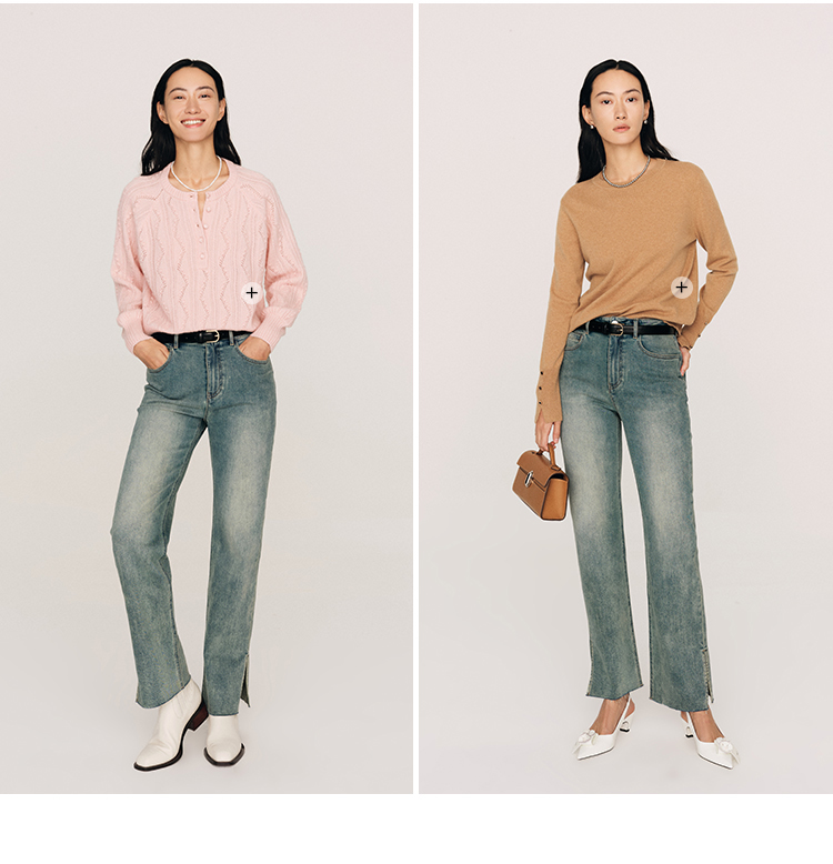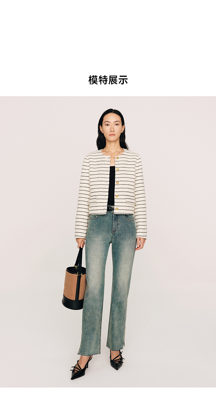 长腿牛仔 裤型绝佳 复古开衩直筒牛仔裤FB495023O