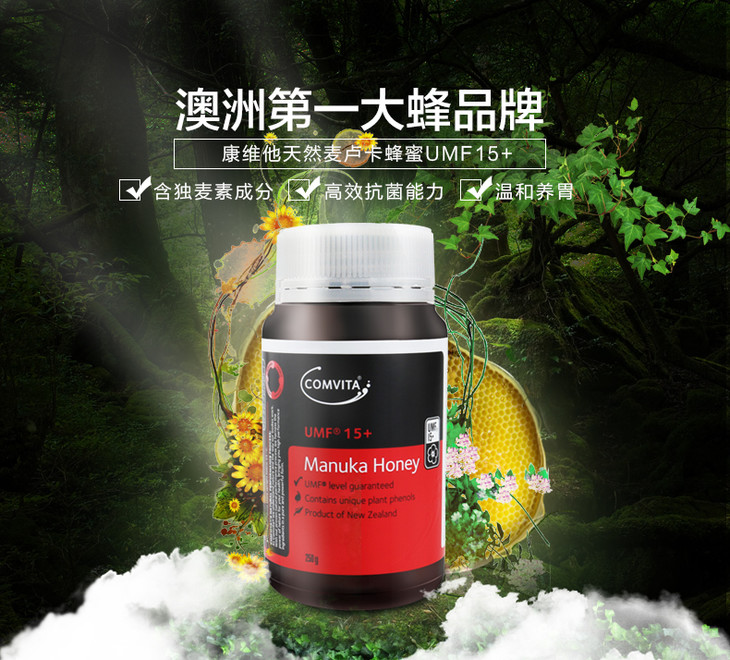 新西兰康维他comvita天然麦卢卡蜂蜜UMF15+250g