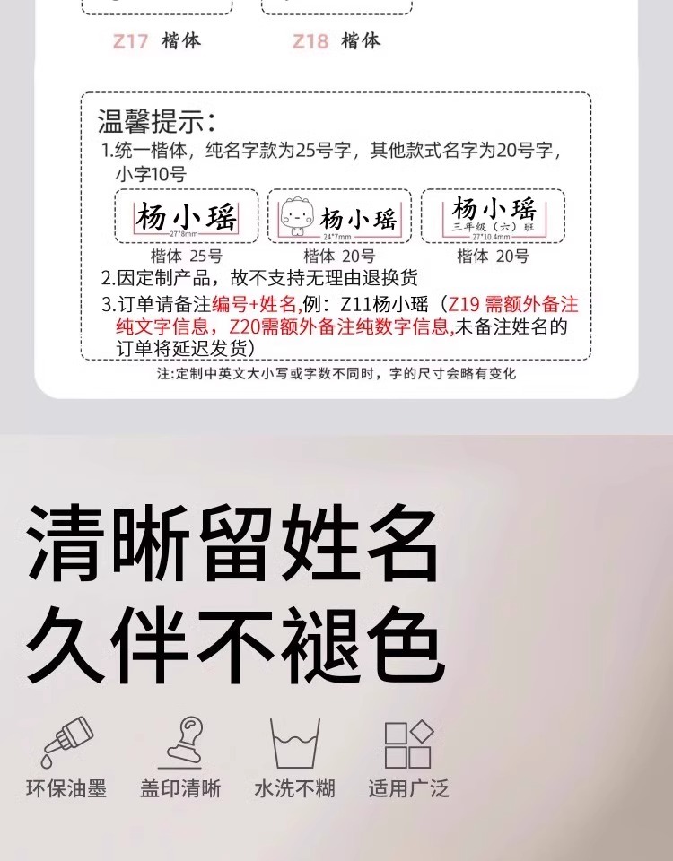科巢儿童名字印章防水防撕姓名贴纸不掉色幼儿园校衣服小学生专用