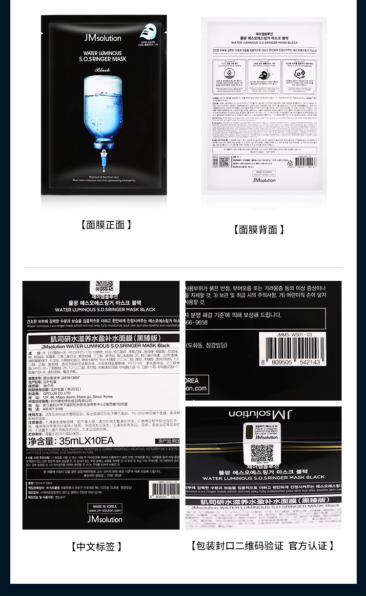 【plus版本】韩国肌司研JM solution水滋养急救面膜35ml*10片(水光炸弹)