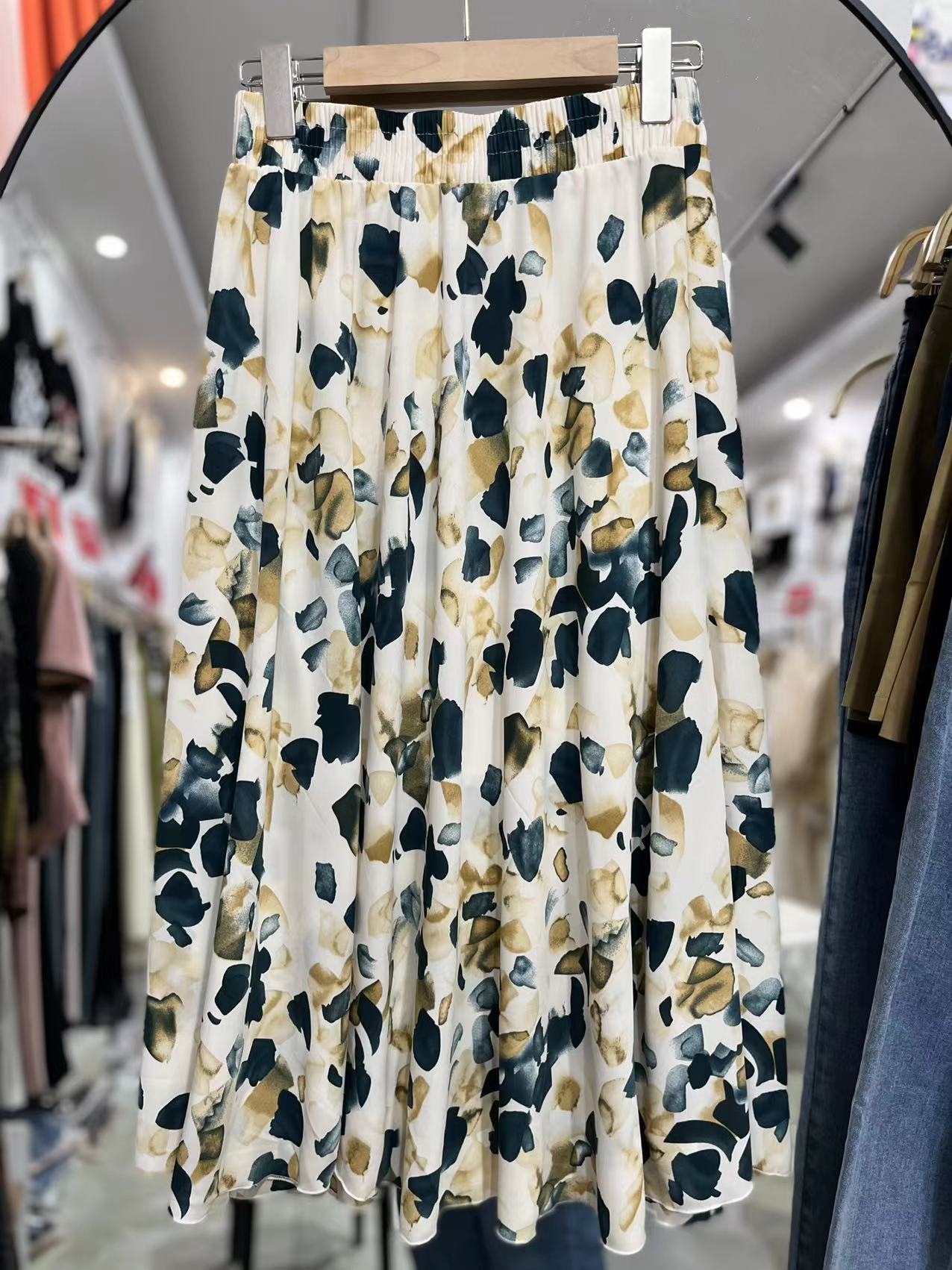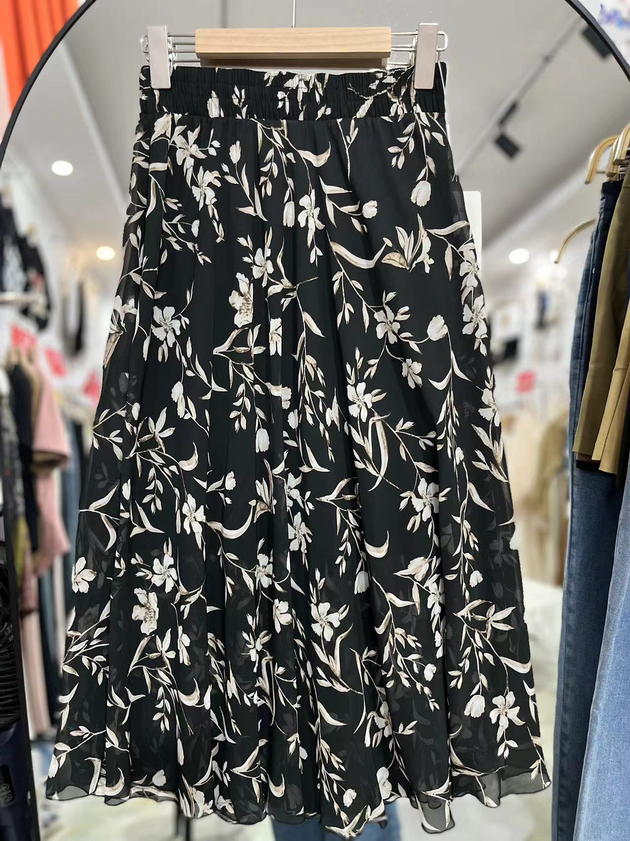 促-8851 花朵中长松紧腰百搭半裙-喜出