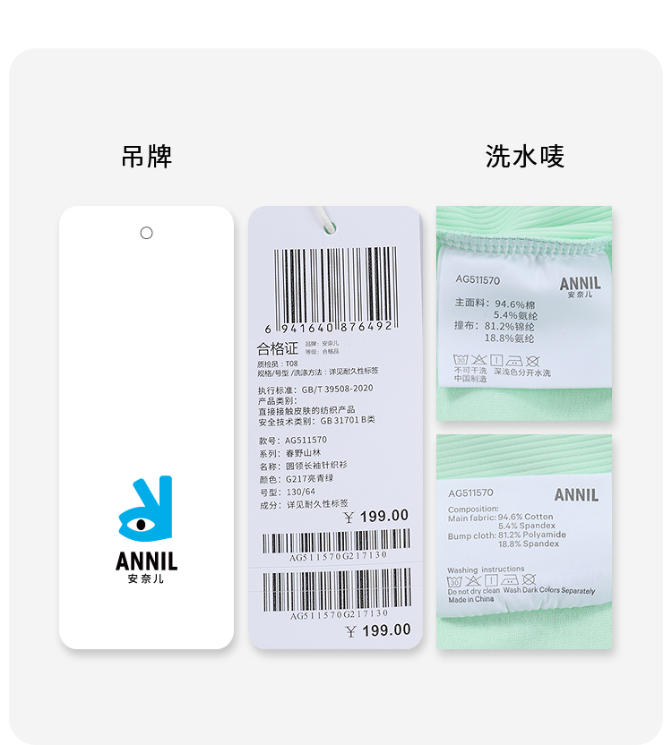 女童圆领长袖针织衫春季新款安奈儿童装实体店同款AG511570
