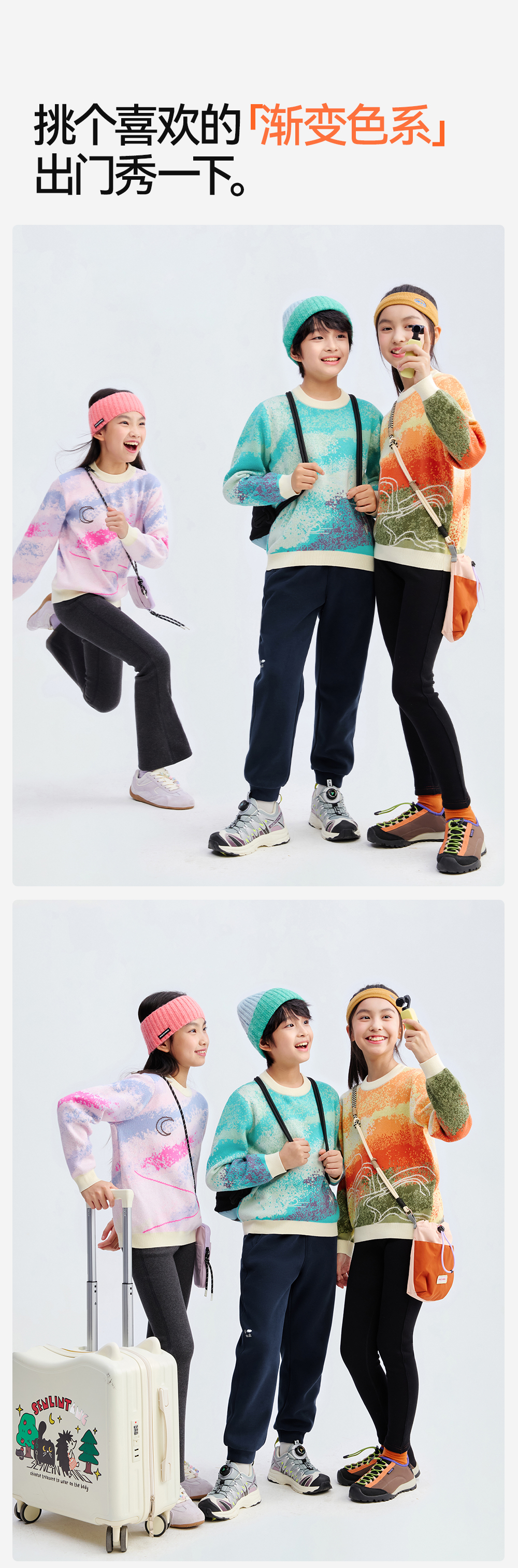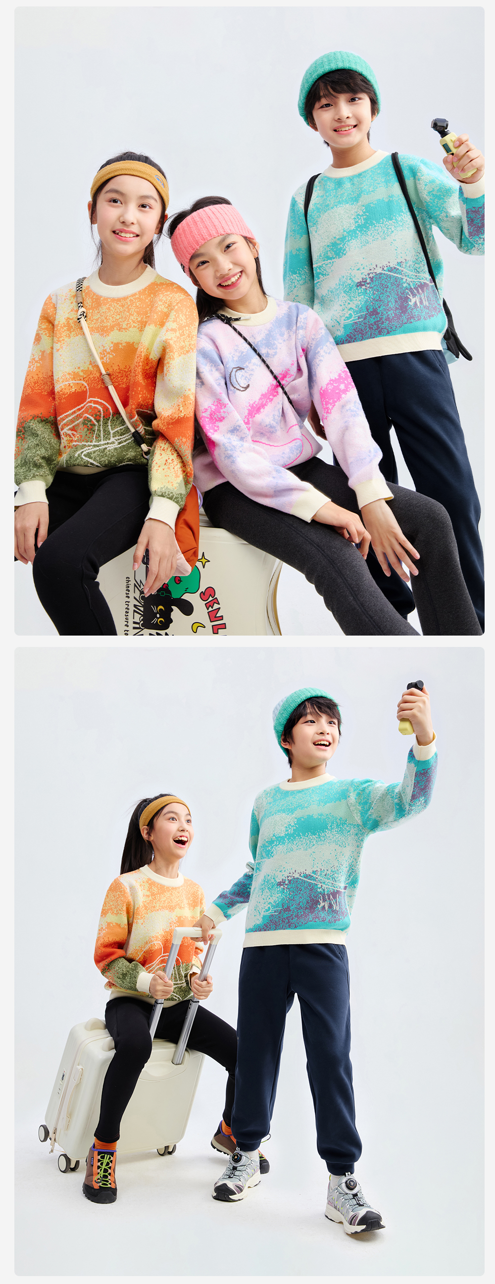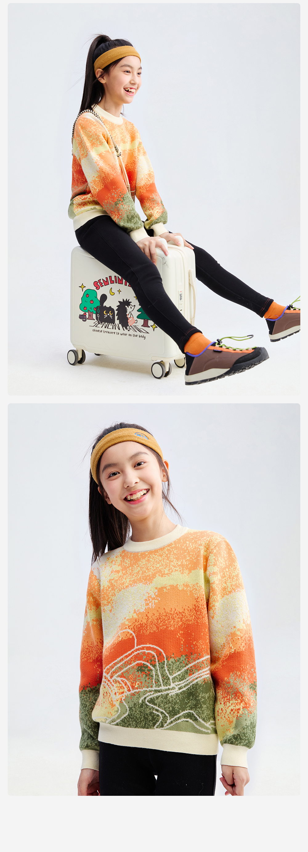 【精梳棉渐变针织衫】森林棠25秋款 儿童炫彩提花渐变柔软纯棉亲肤针织毛衣80612505