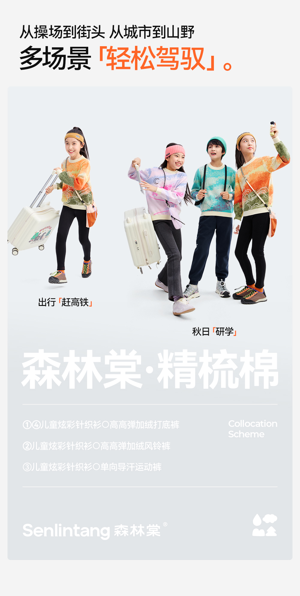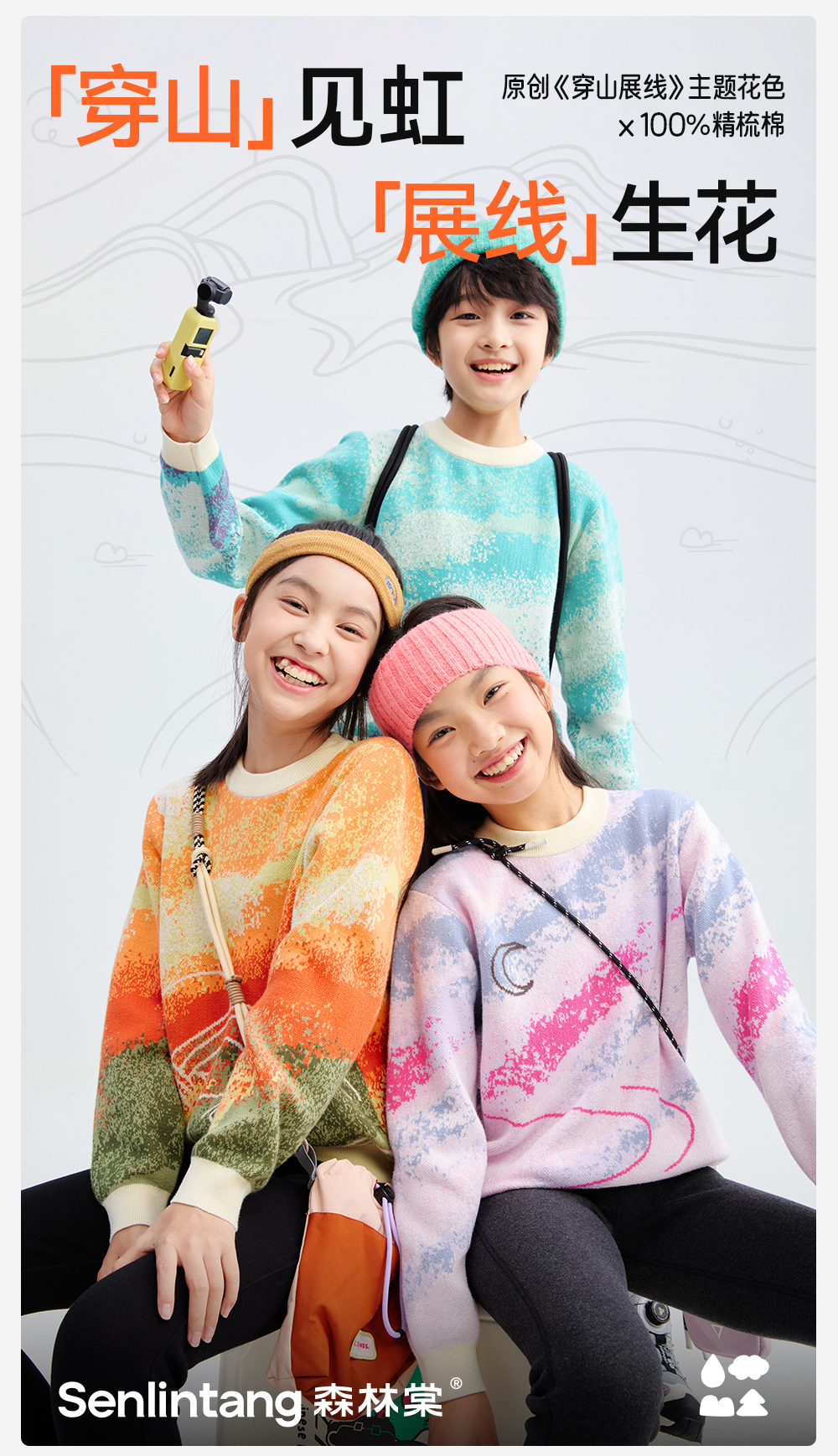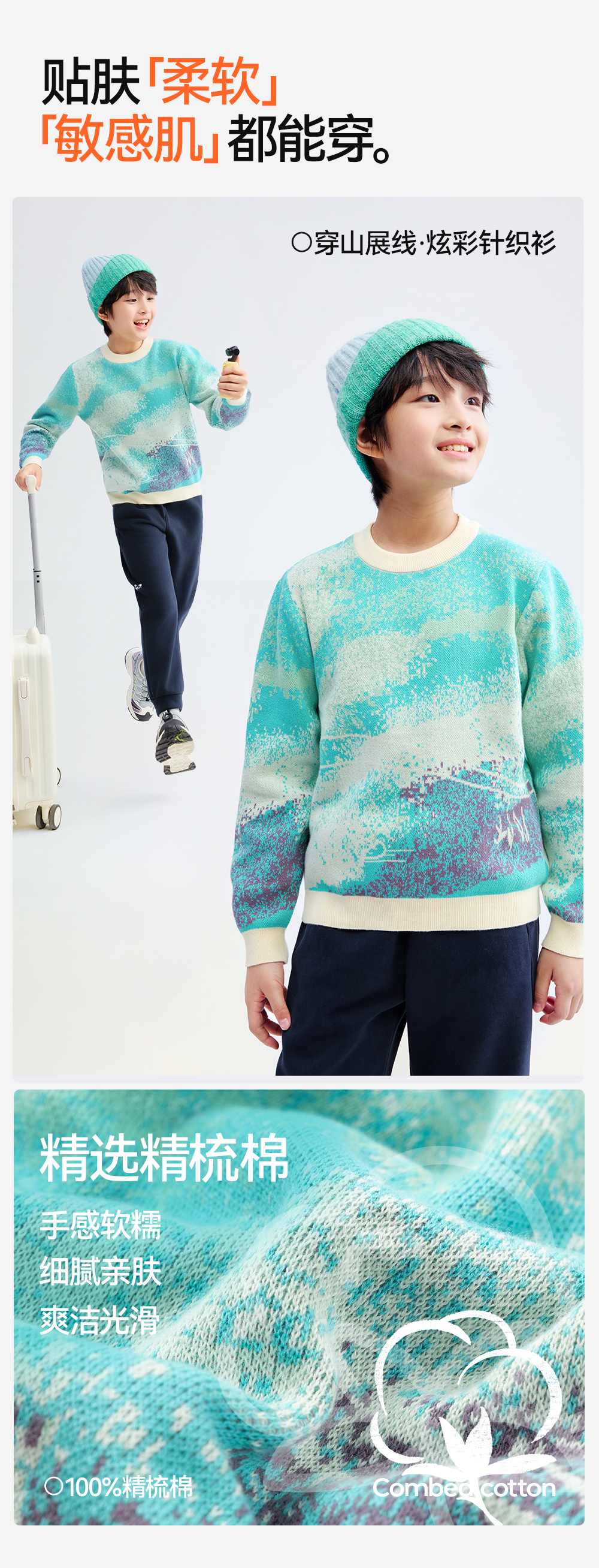 【精梳棉渐变针织衫】森林棠25秋款 儿童炫彩提花渐变柔软纯棉亲肤针织毛衣80612505