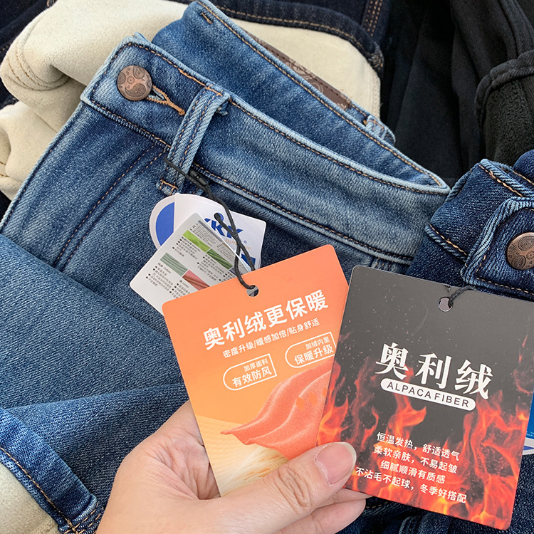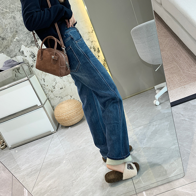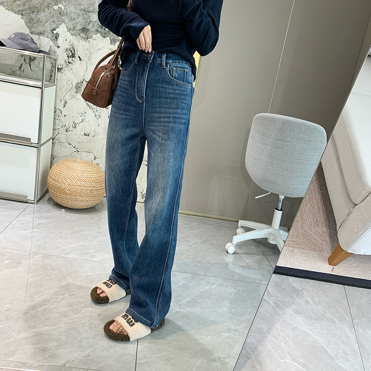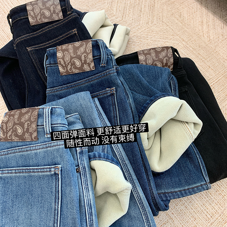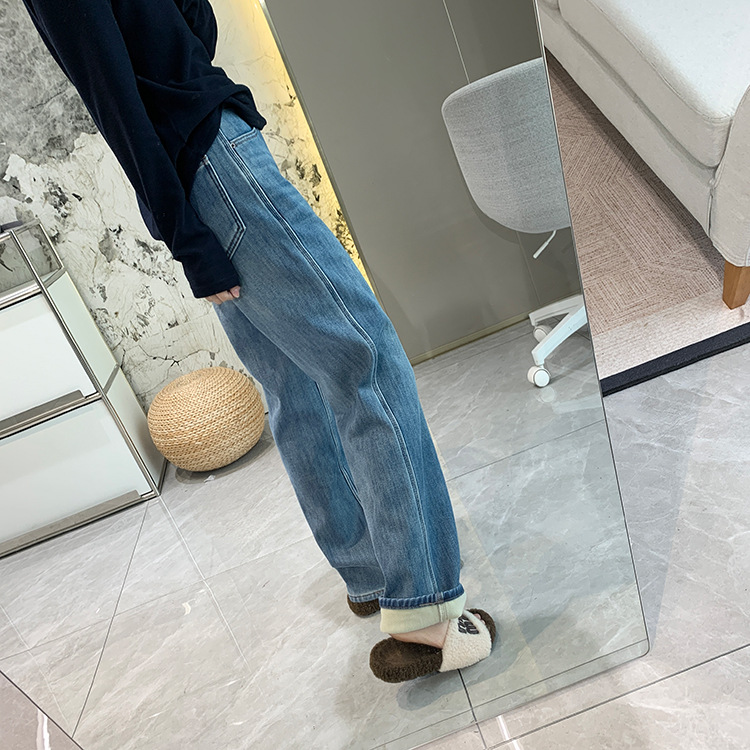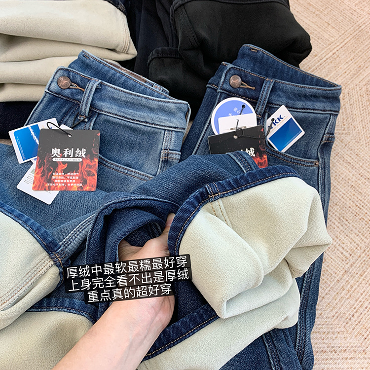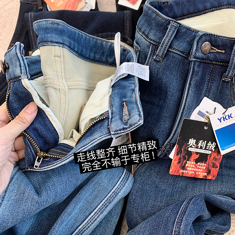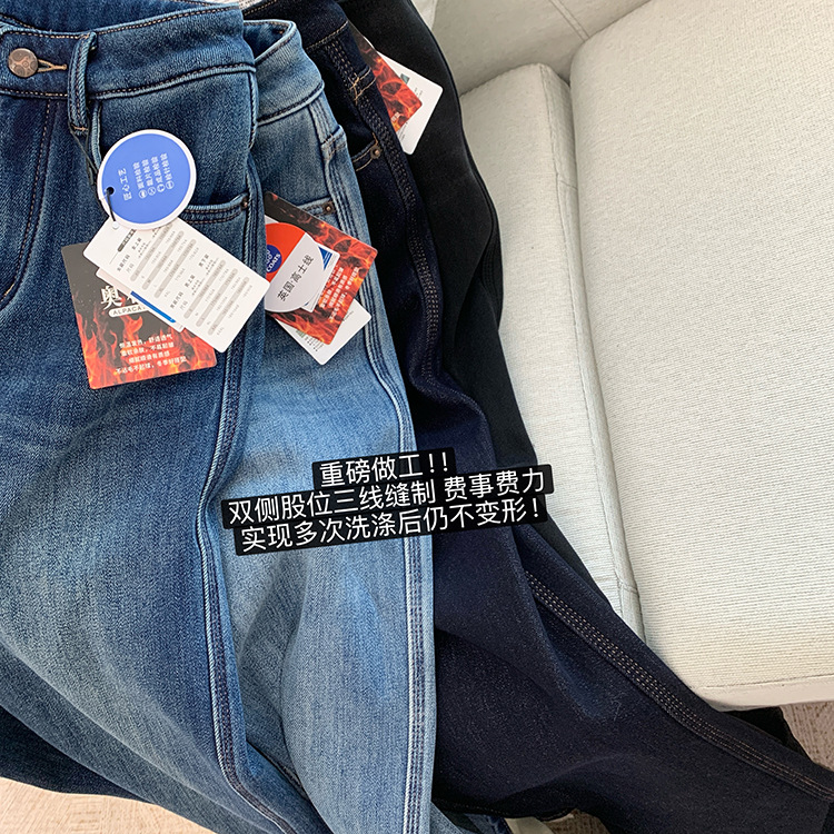 丁摩 一条过冬!【加绒】敲软糯奥利绒直筒牛仔裤女秋冬加厚四面弹高腰保暖长裤5ZF-10212