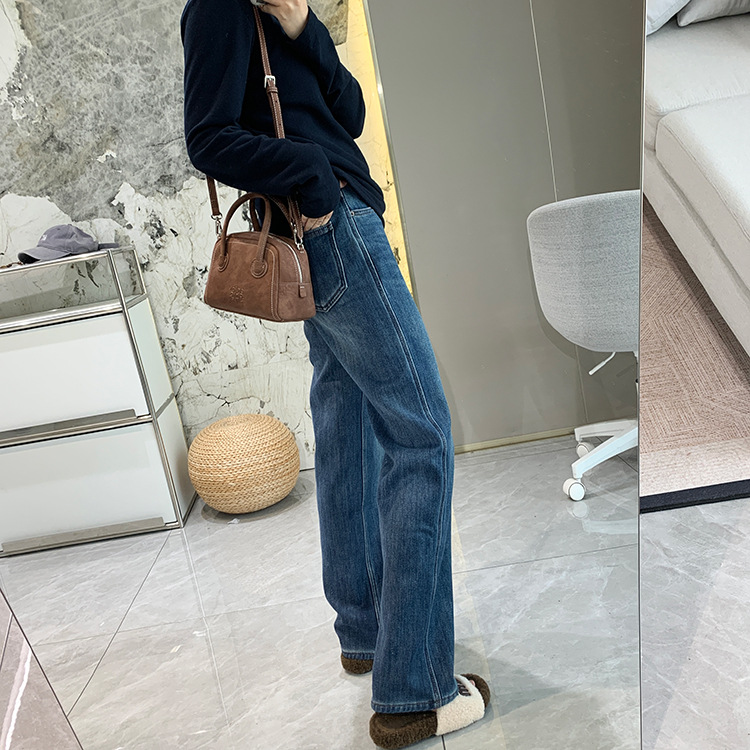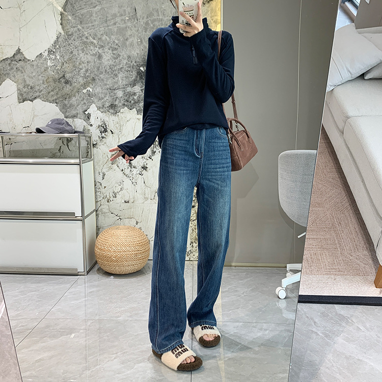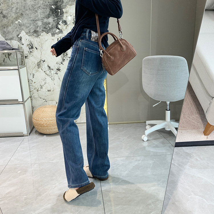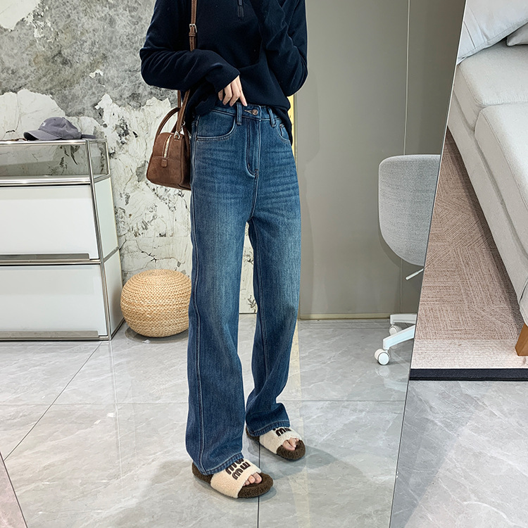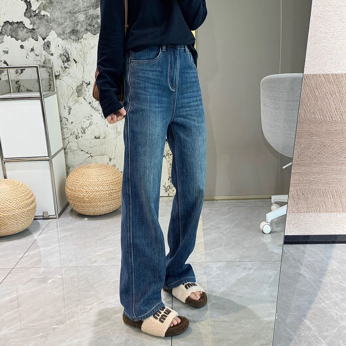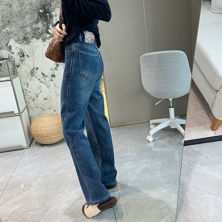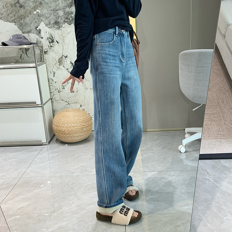 丁摩 一条过冬!【加绒】敲软糯奥利绒直筒牛仔裤女秋冬加厚四面弹高腰保暖长裤5ZF-10212