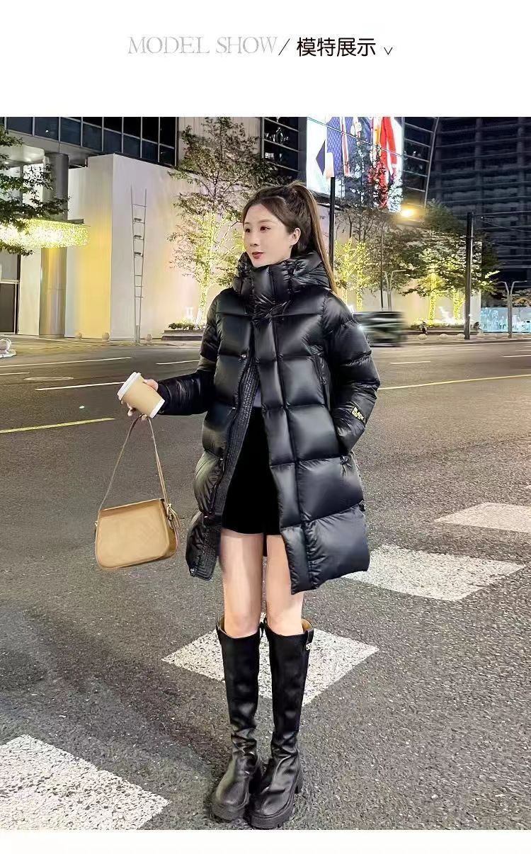 丁摩 中长款羽绒服黑金背带情侣羽绒服
