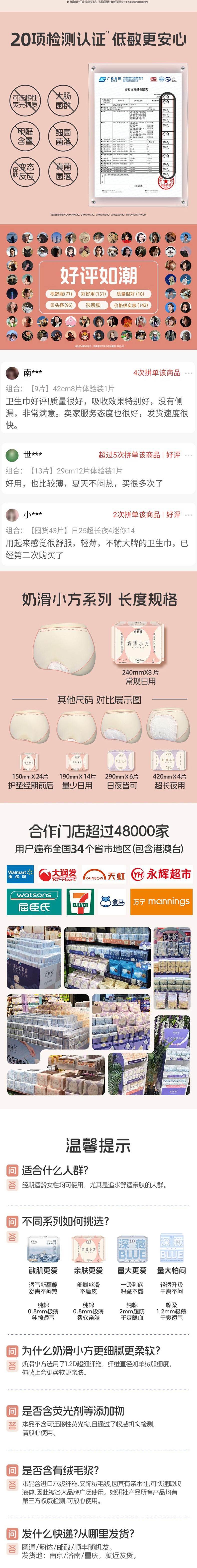 她研社 奶滑小方棉柔卫生巾日用/夜用290mm*6片 6974354668107