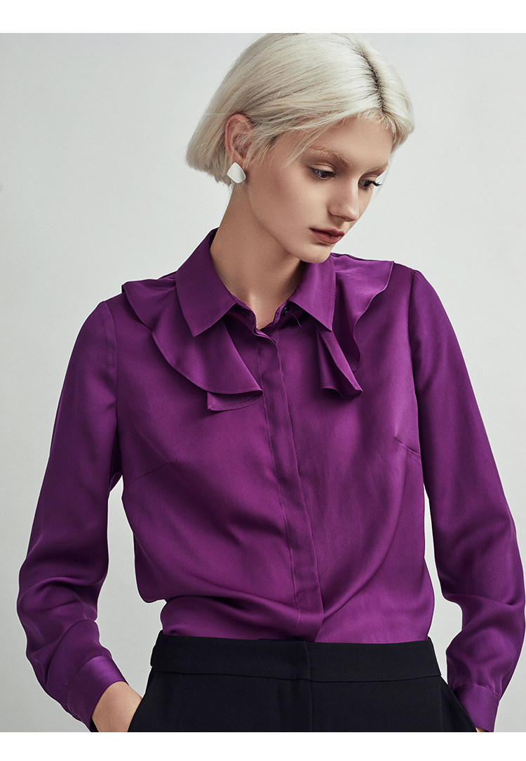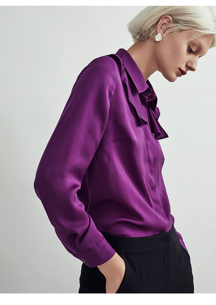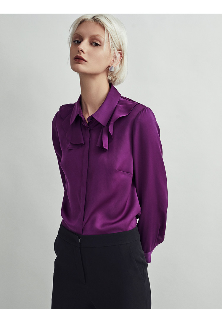 VIMAGE纬漫纪洋气气质时尚缎面百搭显瘦雪纺上衣女V1409011D