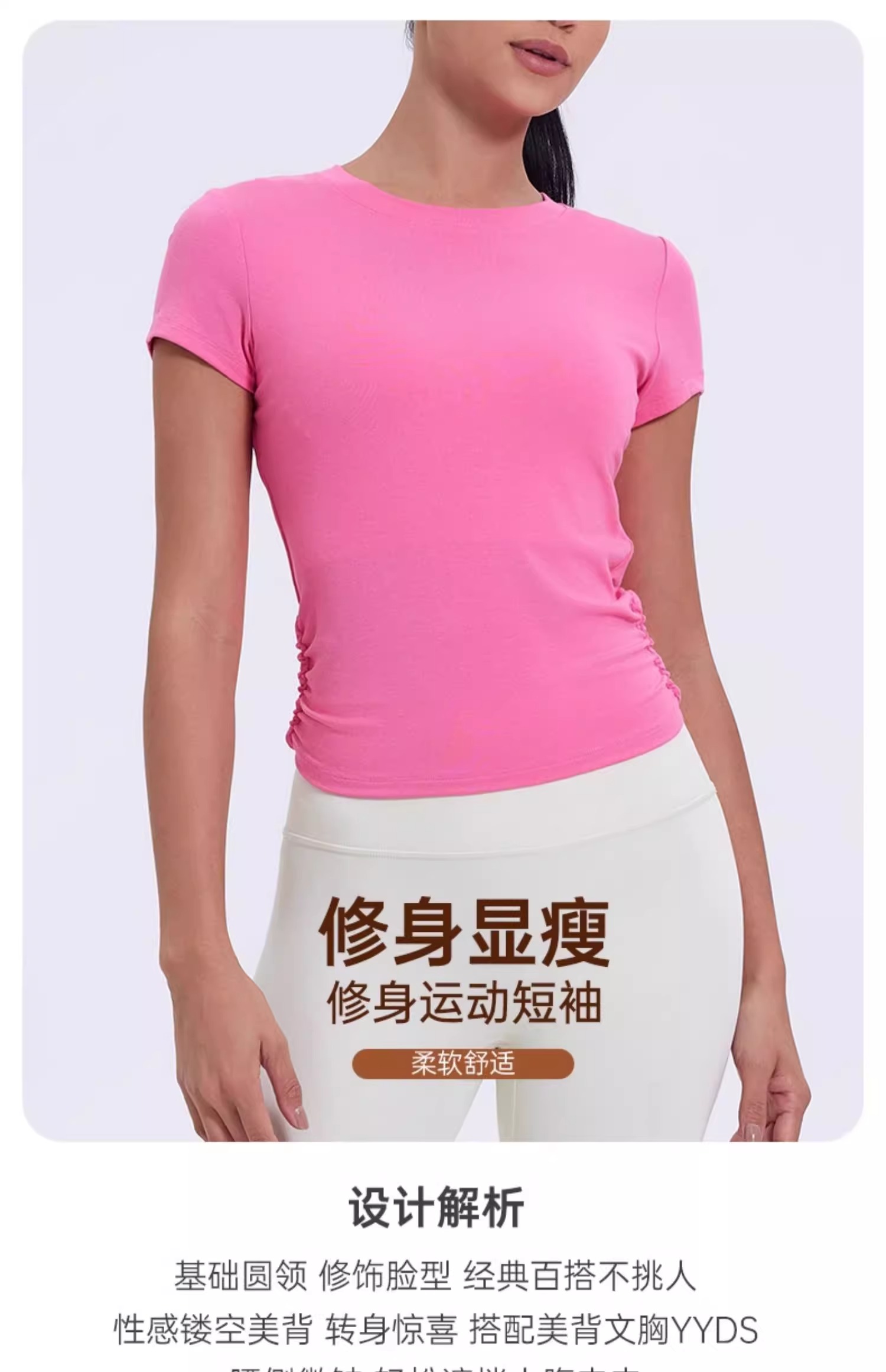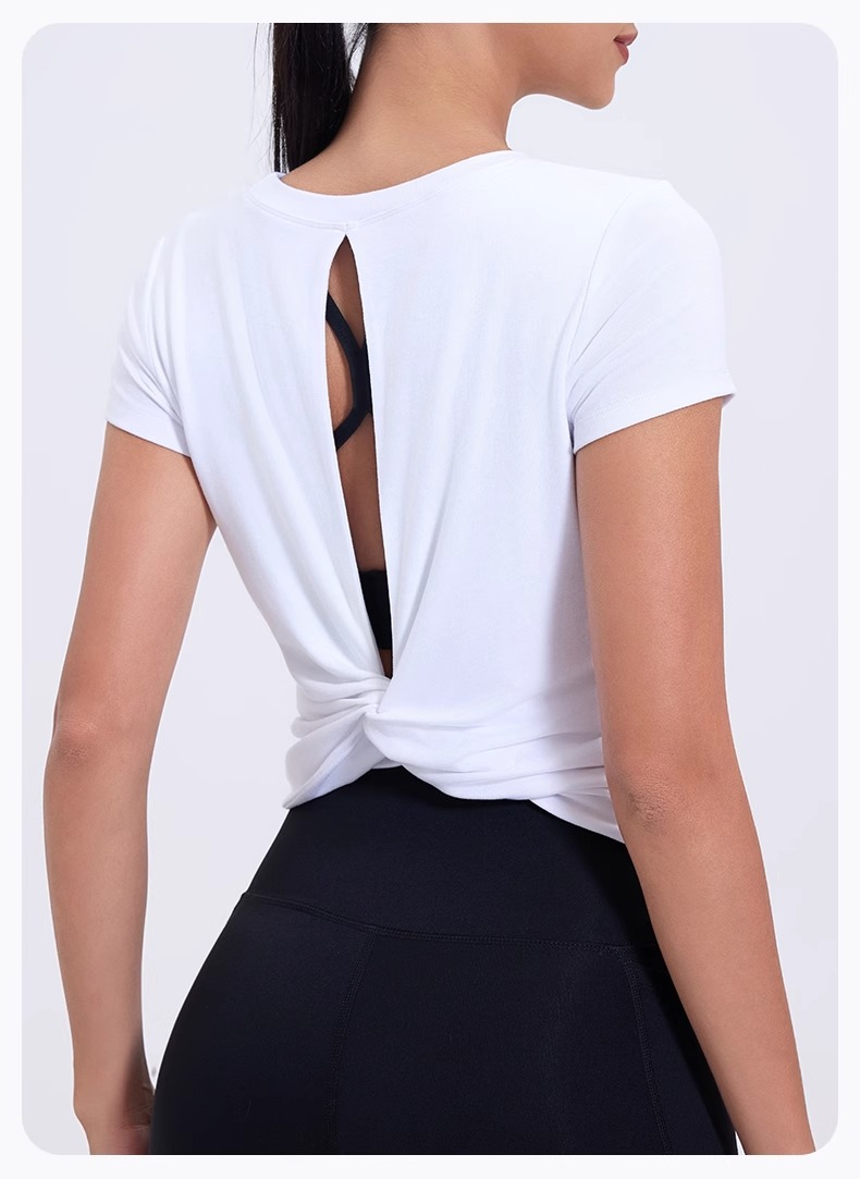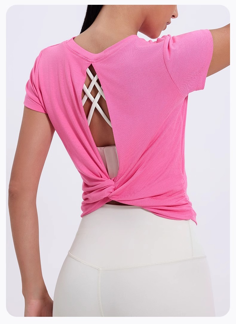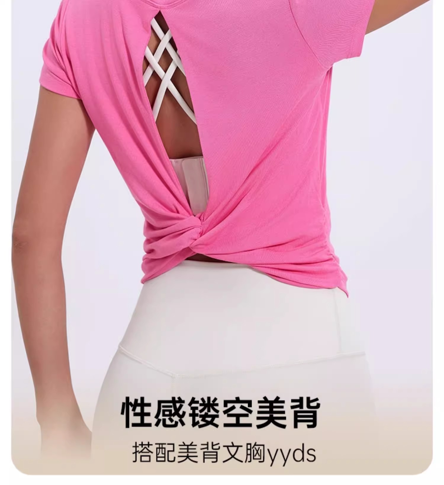 跃牌【瑜见伽人系列】2024运动罩衫后背镂空瑜伽短袖跑步衣训练服健身上衣YT3104