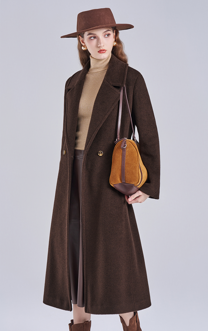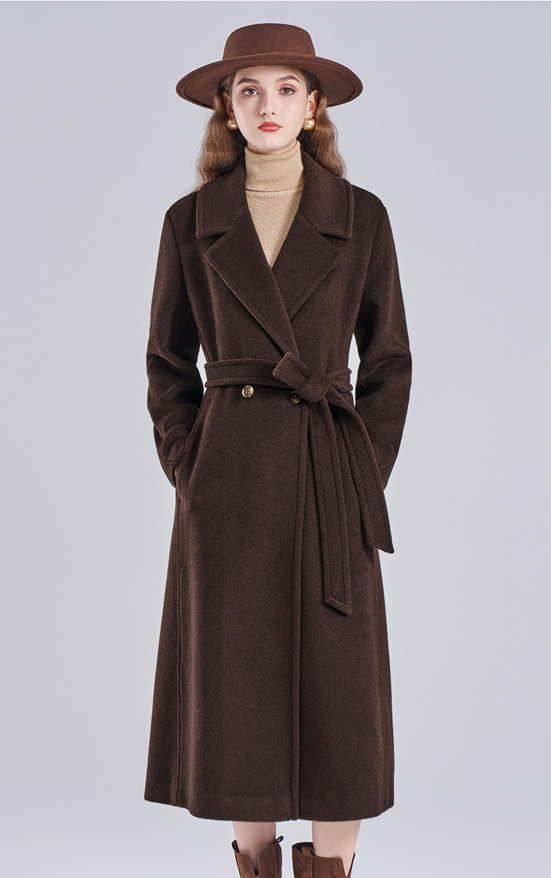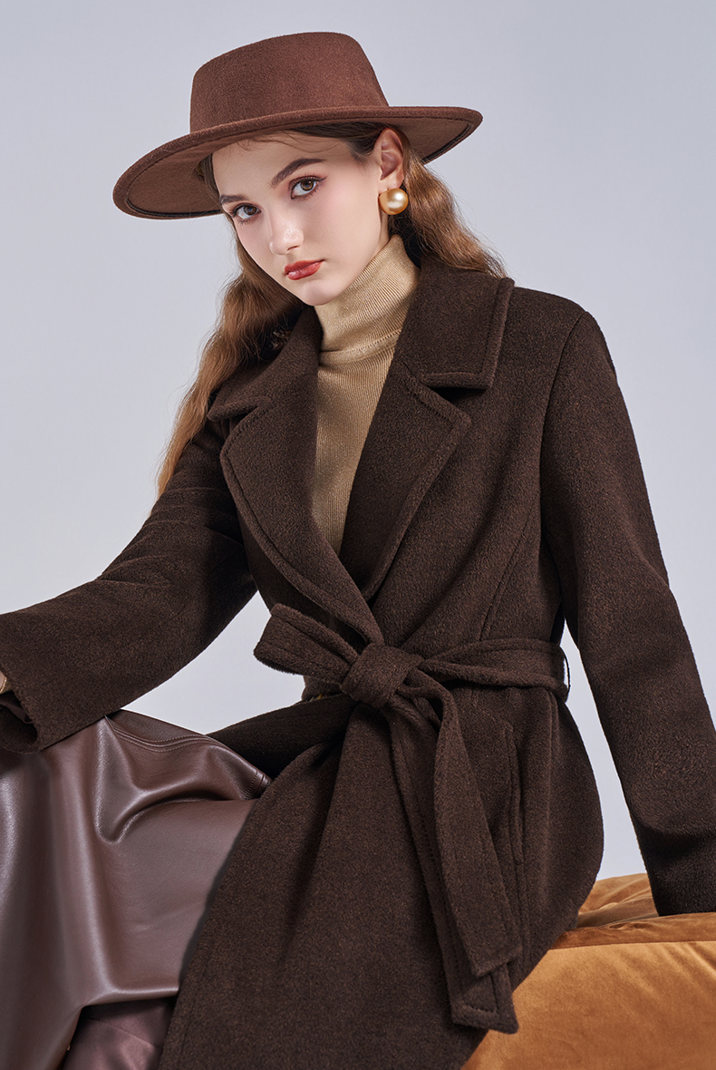 2025乔万尼新品冬100%羊毛复古暖棕鎏金格调系带羊毛大衣ED4A771