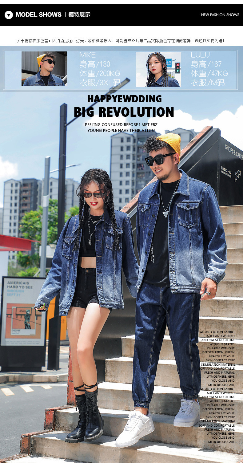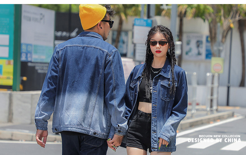 【Q】【新款DDJ】大依优型大码男装渐变情侣牛仔夹克外套宽松大码男士上衣