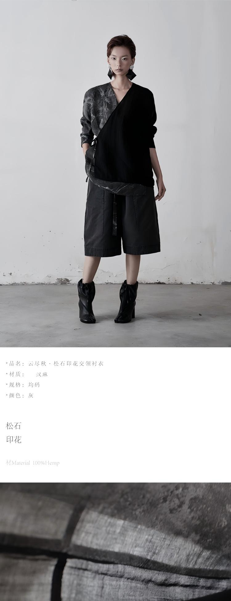 不裁 云尽秋·松石印花交领衬衣
