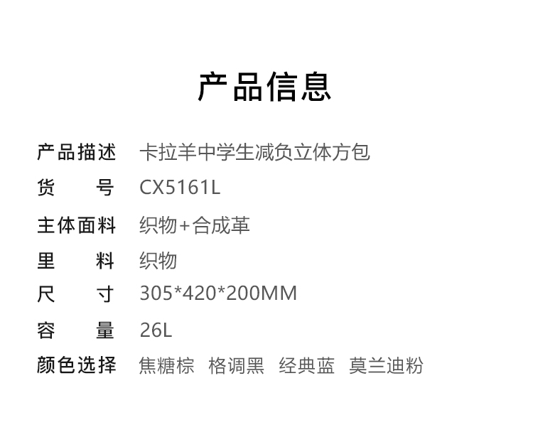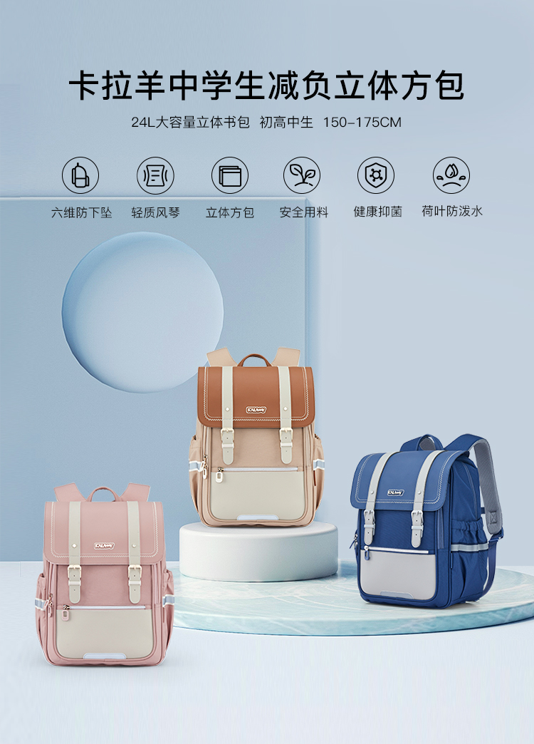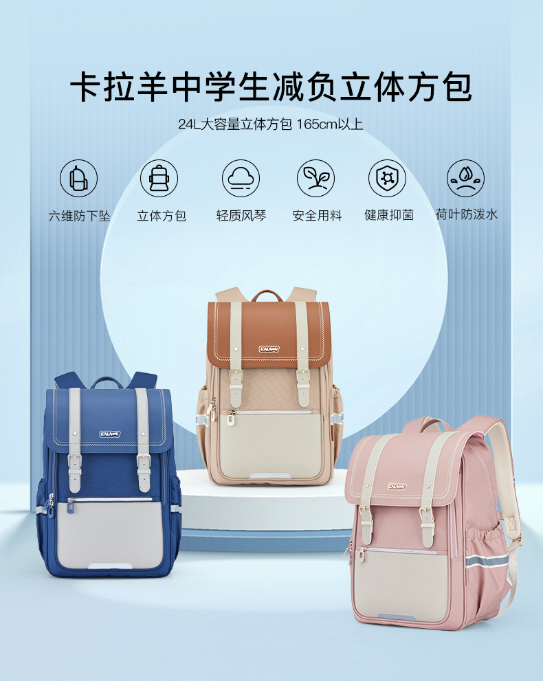卡拉羊中学生24L-26L减负立体方包防下坠书包 敦煌印象CX5161/L