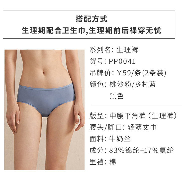 HSIA遐 生理期内裤女士经期防漏安全裤冰丝轻薄中腰姨妈裤2条装