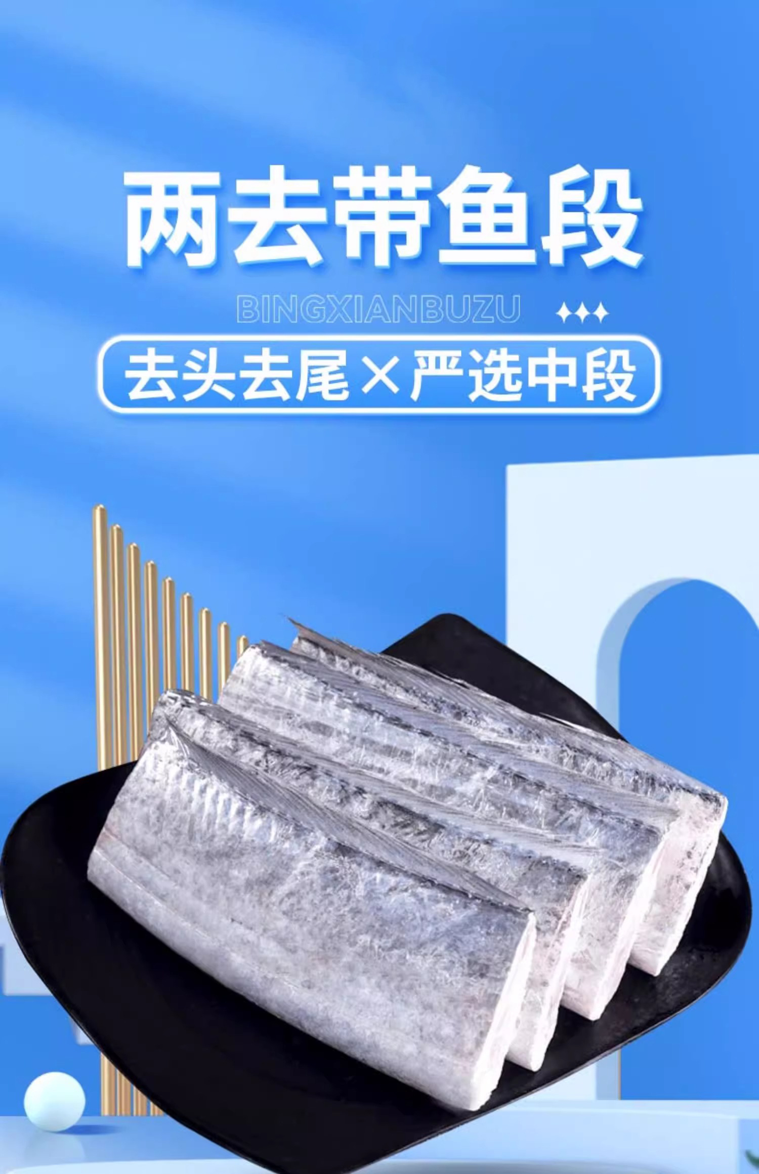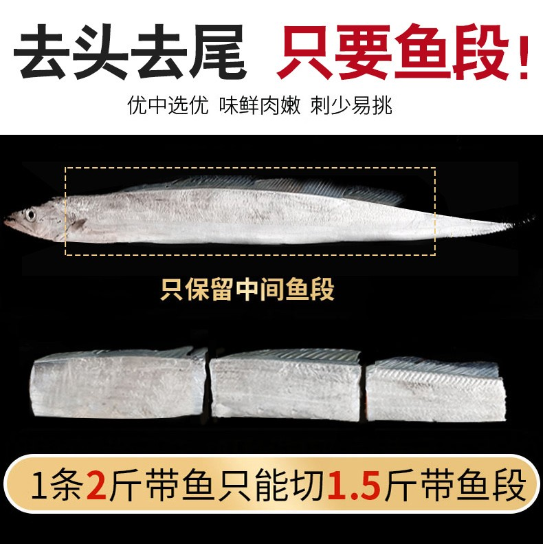 YP 超值5斤!肉厚刺少年货硬菜!鲜捕头鲜冻带鱼段500g*5袋带鱼中段