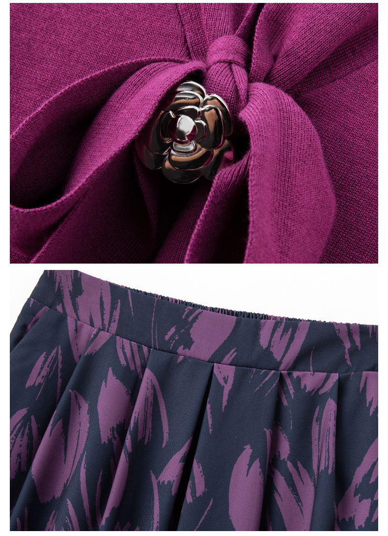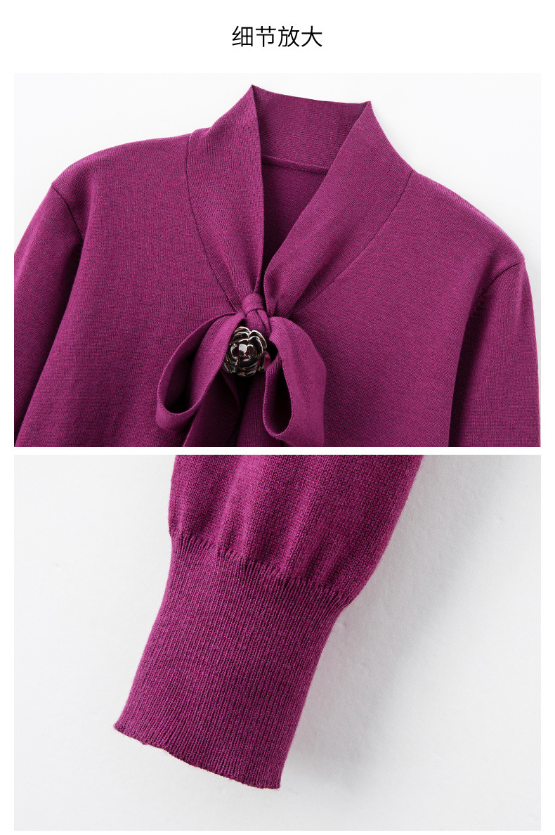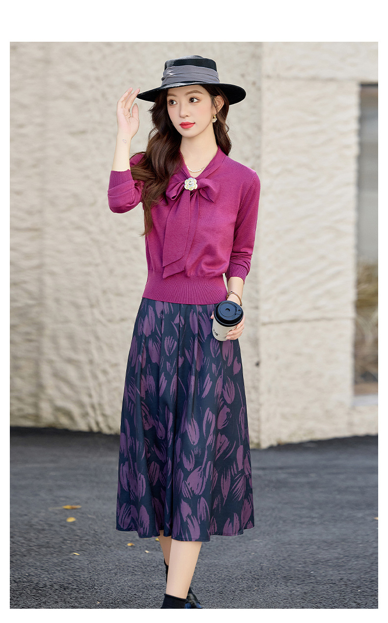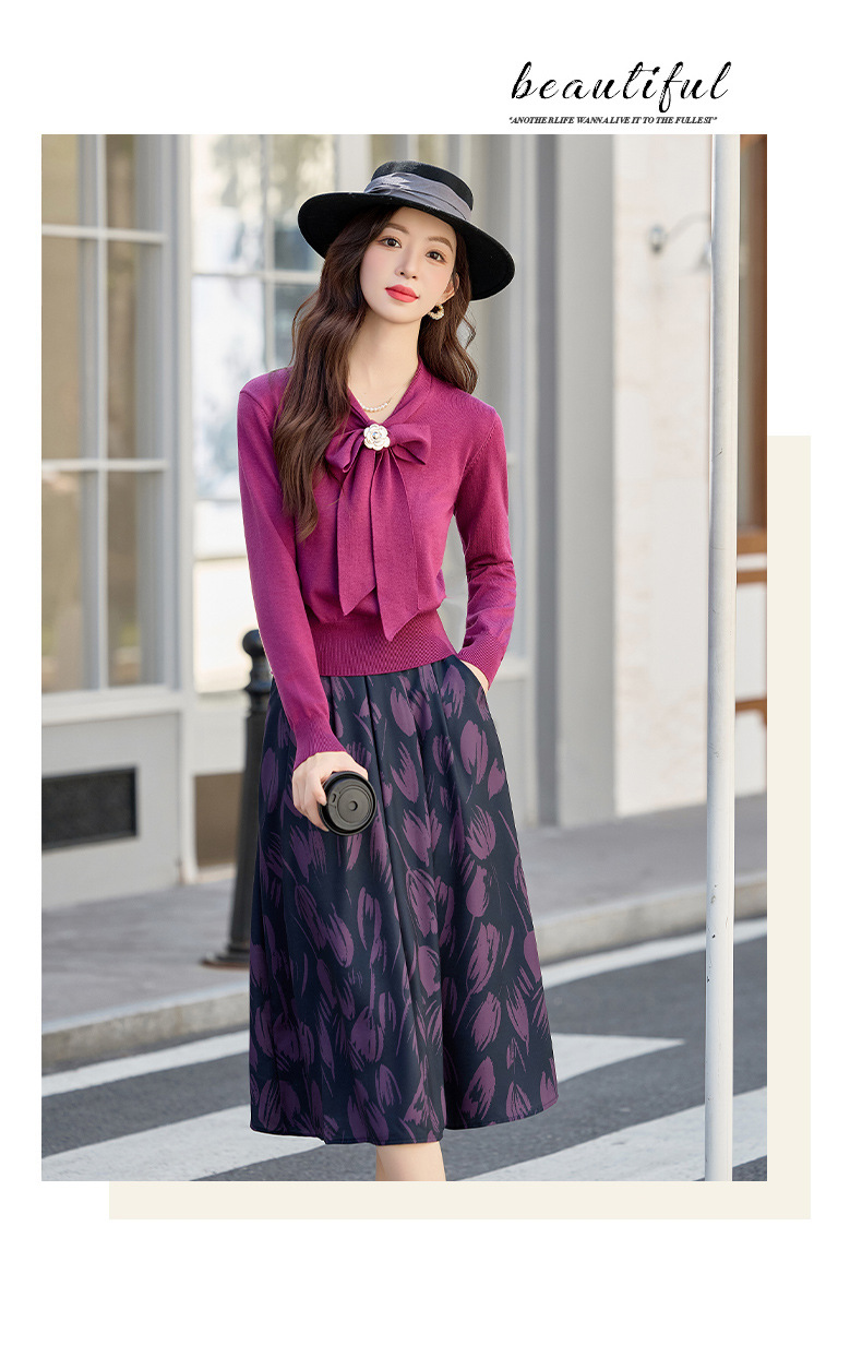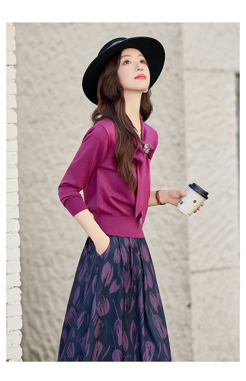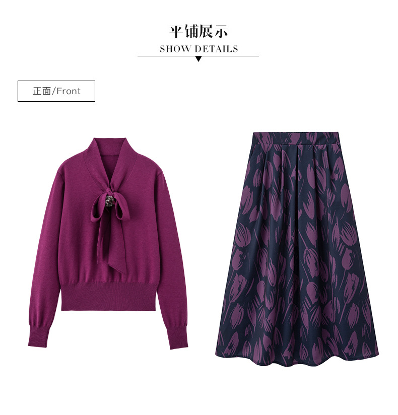 SH088-0825时尚套装2025秋新款女减龄洋气胡蝶结针织衫+半裙两件套裙 商品图3