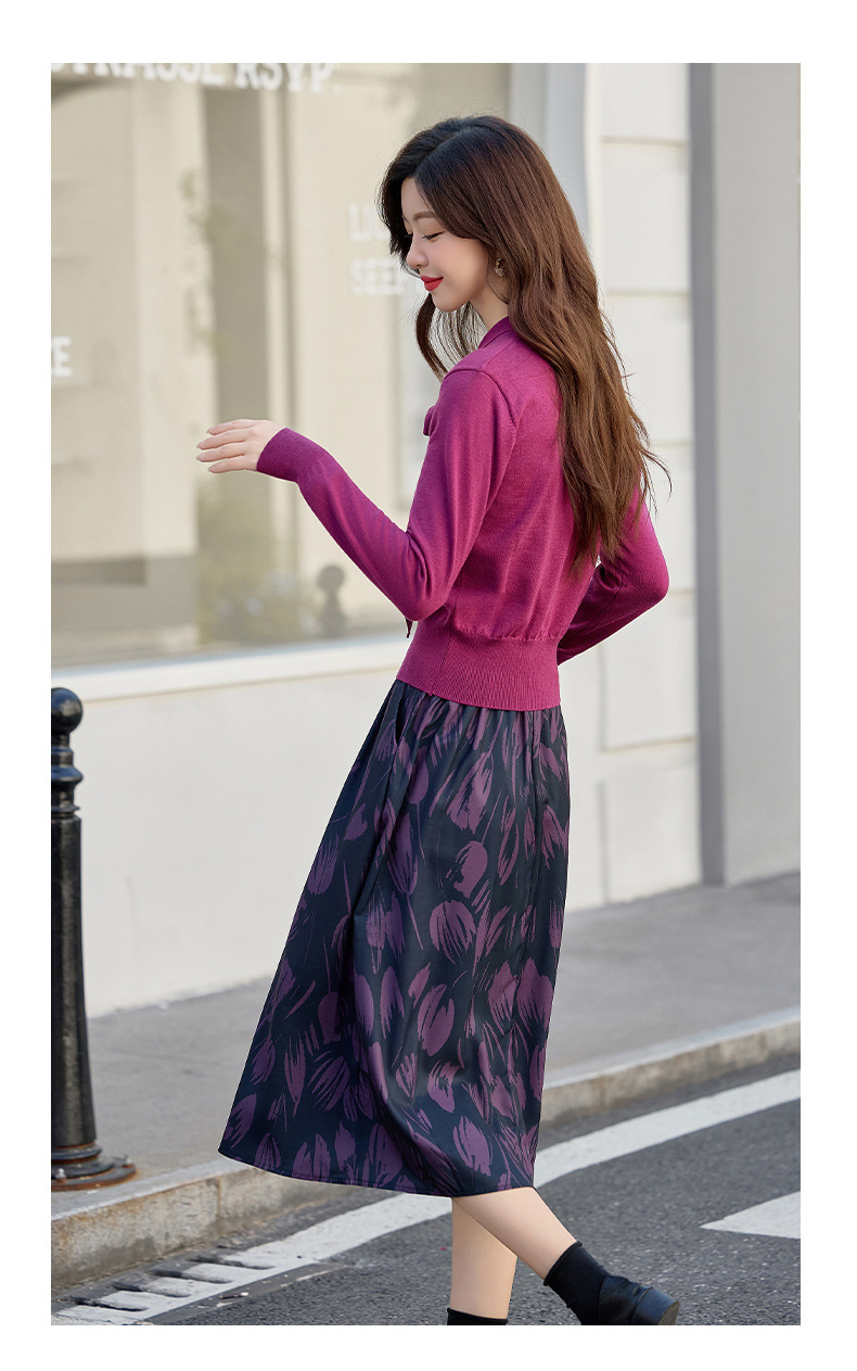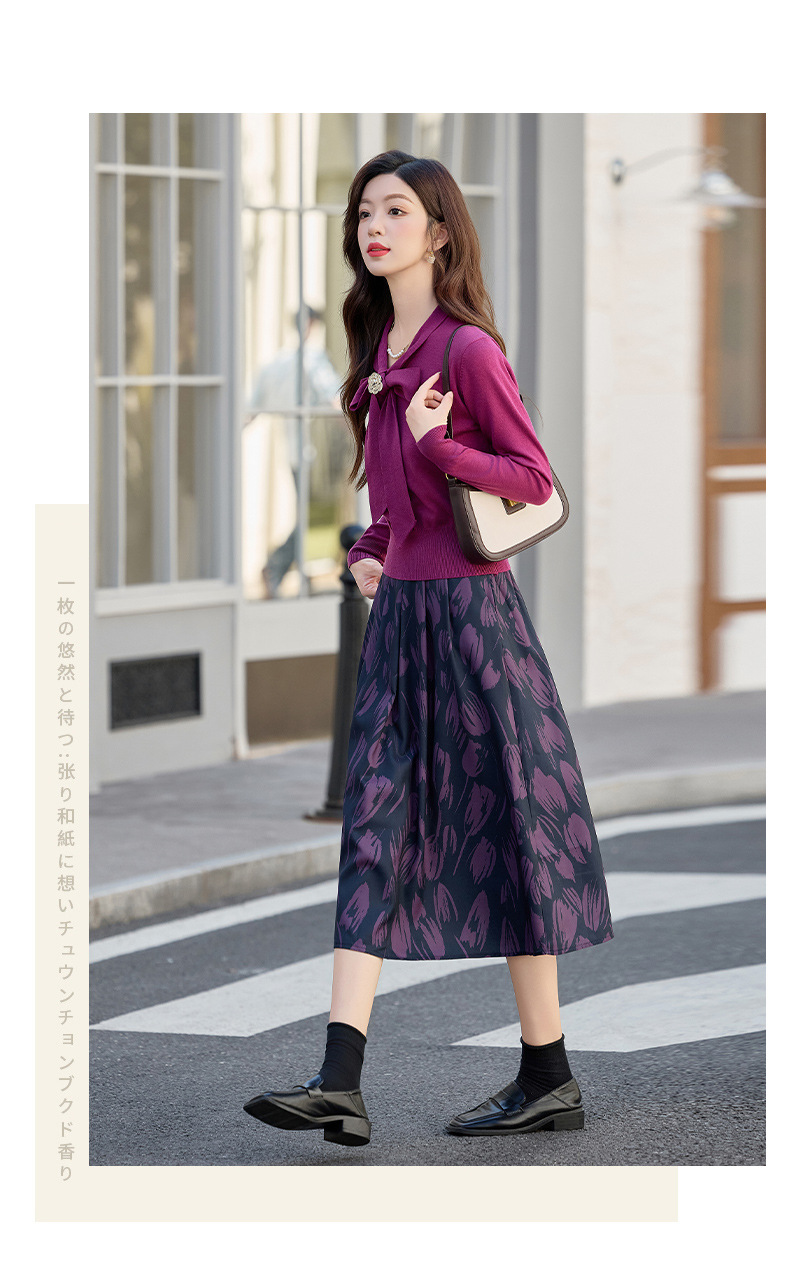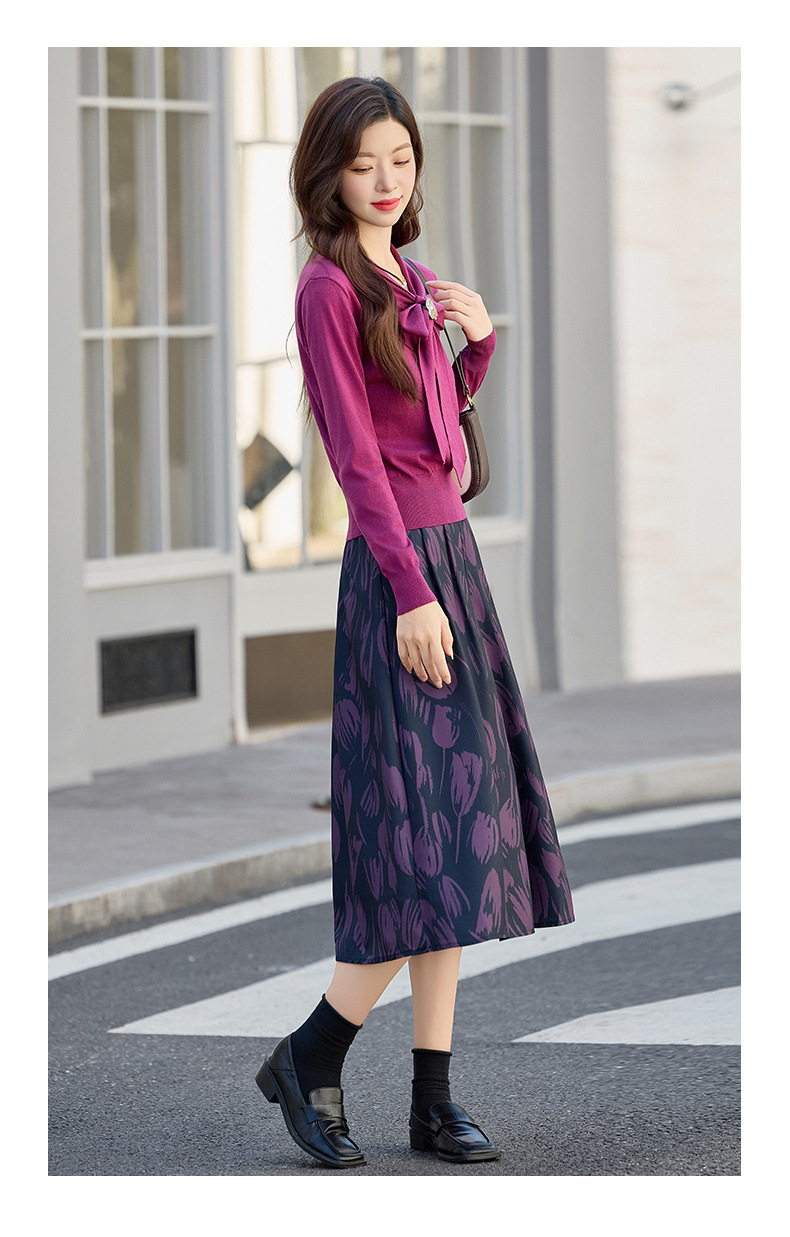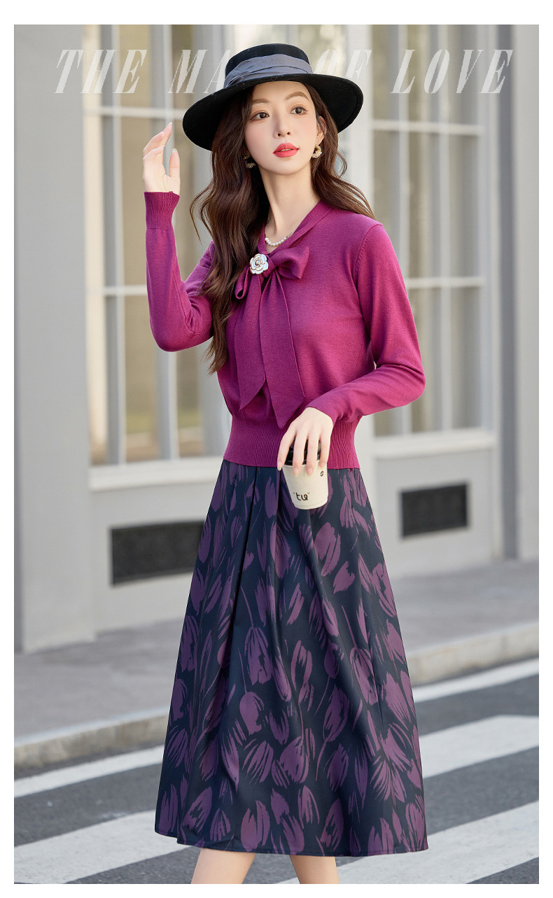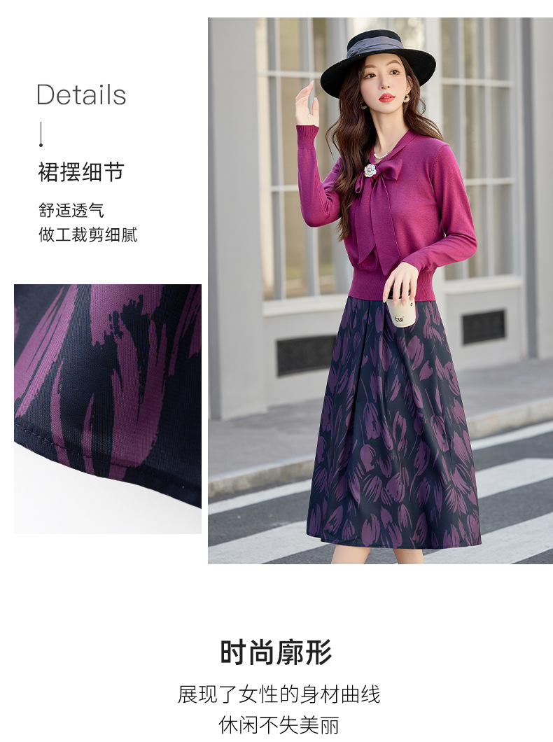 SH088-0825时尚套装2025秋新款女减龄洋气胡蝶结针织衫+半裙两件套裙 商品图3