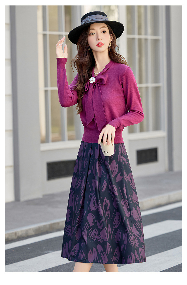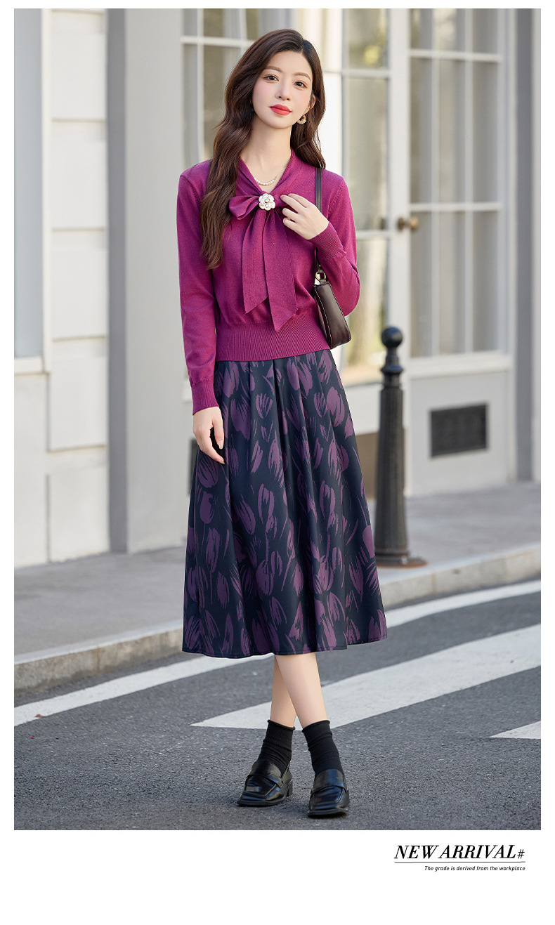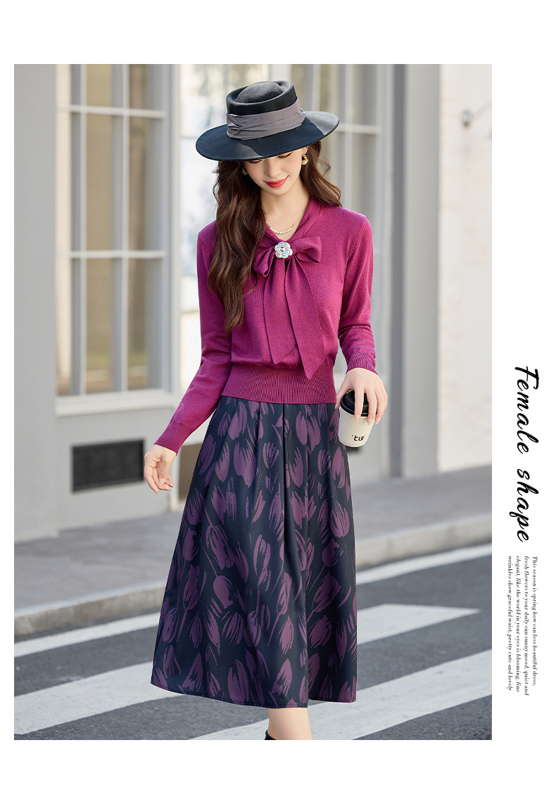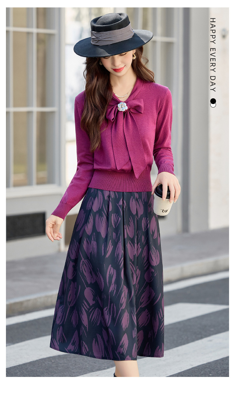 SH088-0825时尚套装2025秋新款女减龄洋气胡蝶结针织衫+半裙两件套裙 商品图0
