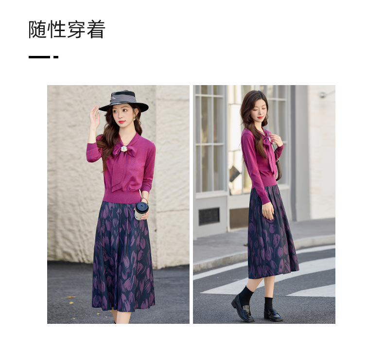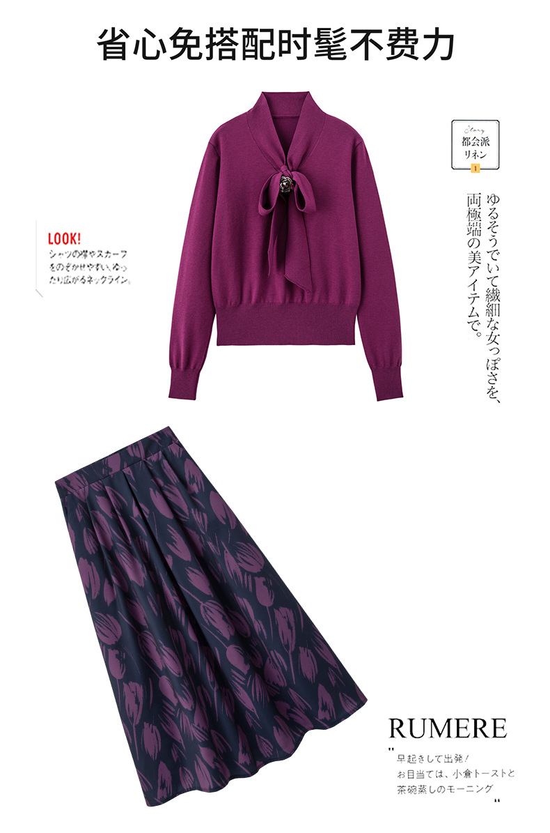 SH088-0825时尚套装2025秋新款女减龄洋气胡蝶结针织衫+半裙两件套裙 商品图2