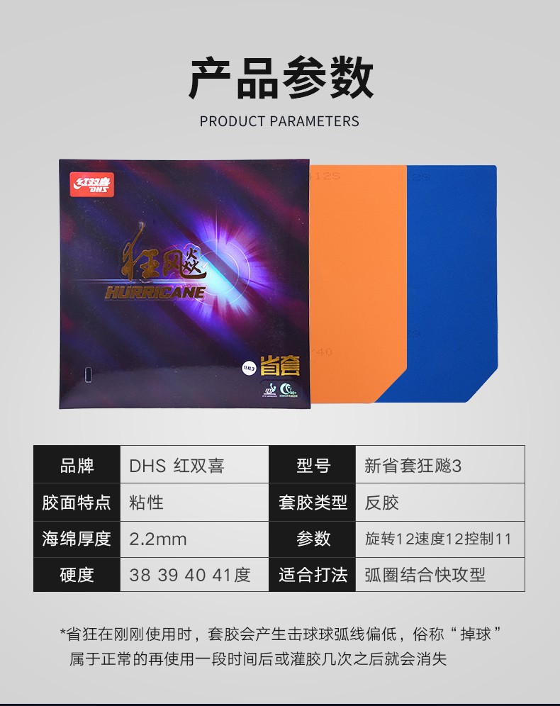 DHS红双喜 省套省狂飙3 狂飚三 乒乓球反胶套胶 橙海棉