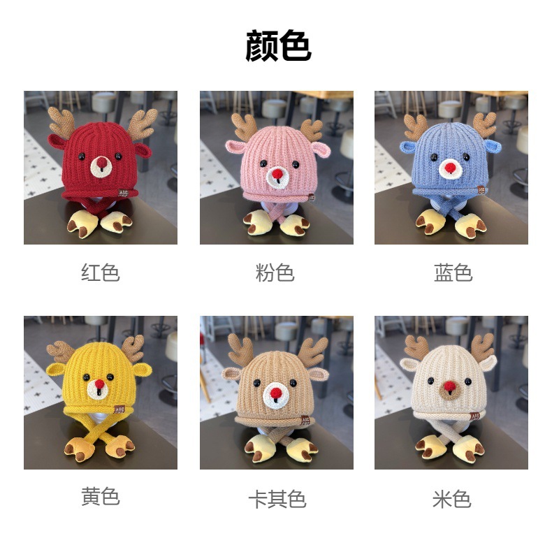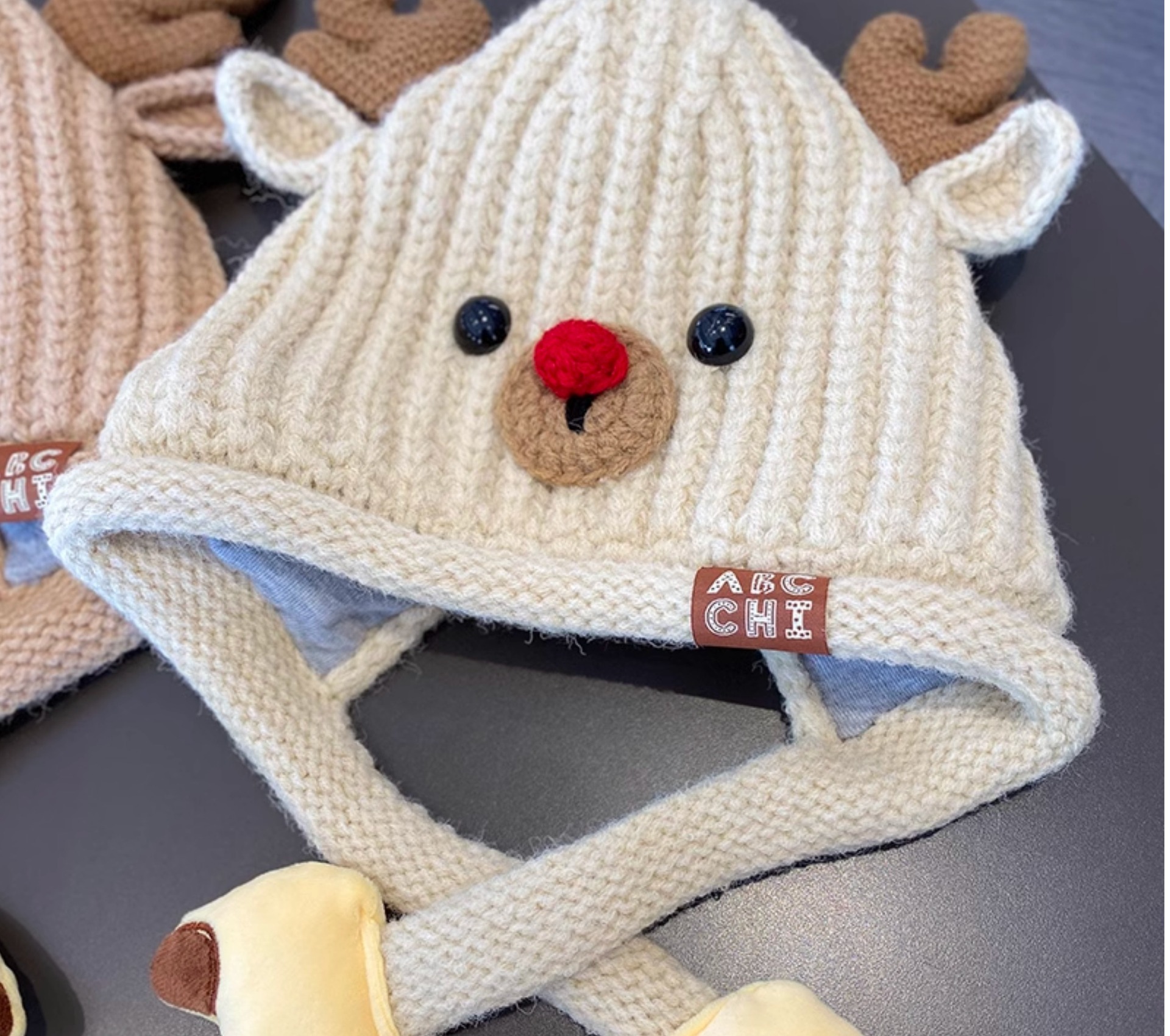 双12抢先购!【可爱保暖!多色可选】宝宝帽子冬季可爱圣诞护耳帽,男孩女童秋冬加厚保暖儿童针织毛线帽,个性时尚 护耳防寒更暖心 男女通用lm