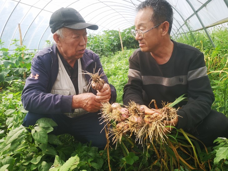 “福存”大蒜源自怀来新堡安的百年老种紫皮蒜,目前与蒲公英间作共生,长势稳健。其名是为缅怀河北农业大学驻小二台实验站的杨福存教授。