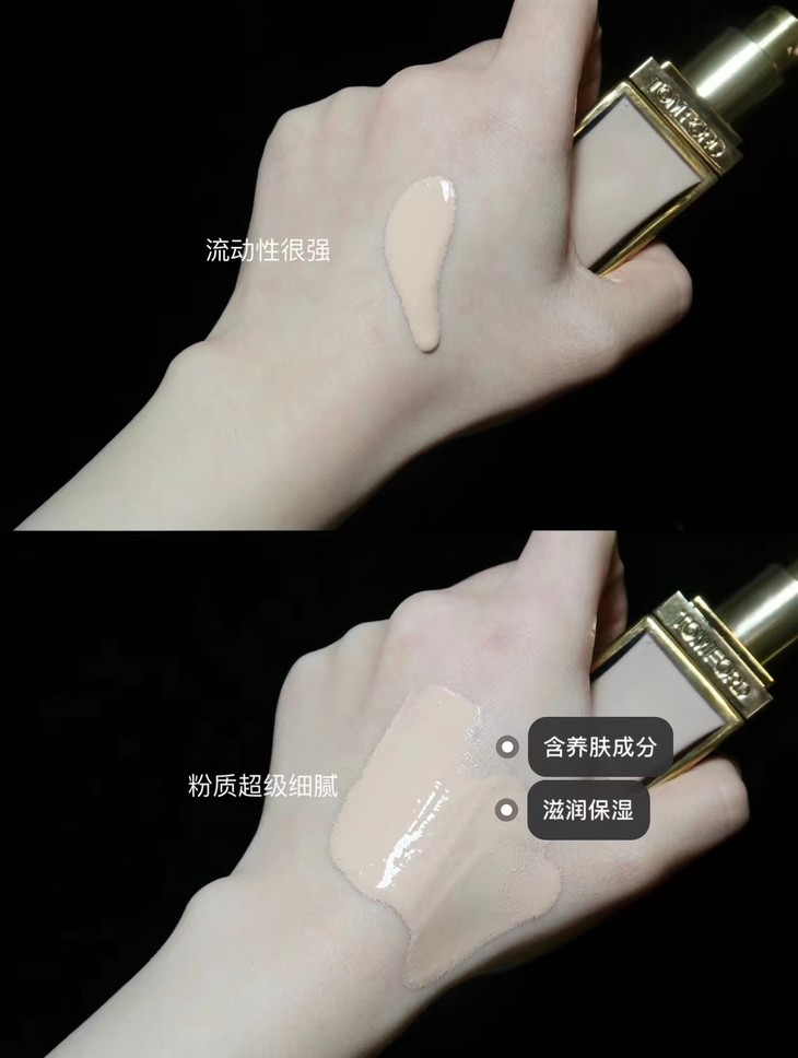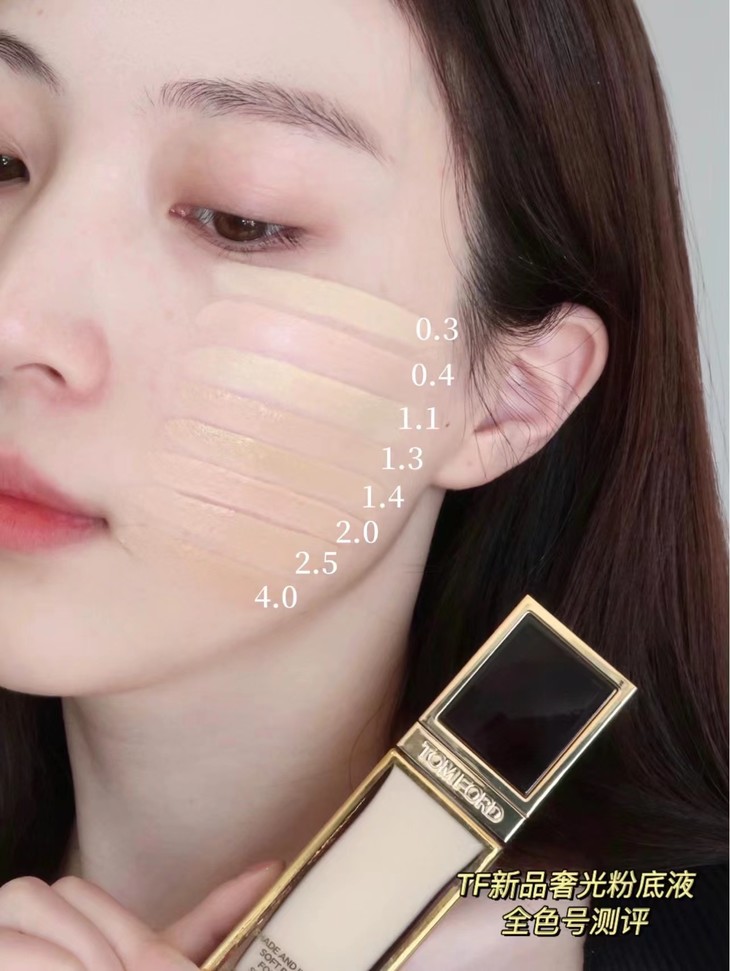 👑TF奢金粉底液30ml 👍顶奢黑金享受 ☀️内含:3D奢光微粒,折射光影,平衡面部结构,塑造3D立体的奢光妆面 💦蕴含多种精华成分,精华入妆,让底妆保湿通透,后续上妆更服帖 🙋精细研磨微粒轻薄贴肤,12H长久不脱妆 💎自然遮瑕均匀肤色,打造3D奢光妆面 ⭐还有:高倍防晒 SPF50+/PA++++ 🔥适合:干皮、混干皮、中性皮肤质 #1.1:暖杏米白 #0.4:冷调一白