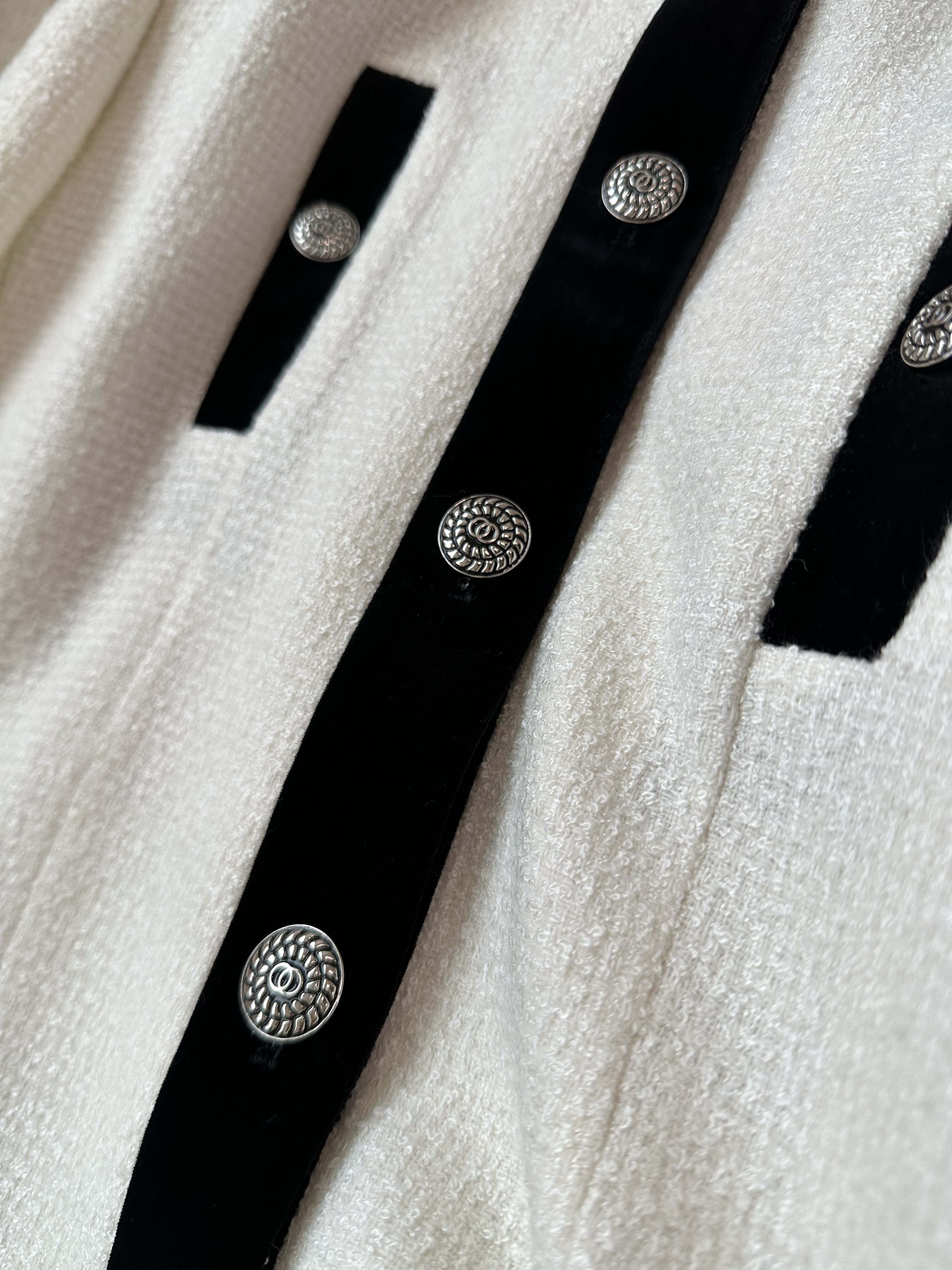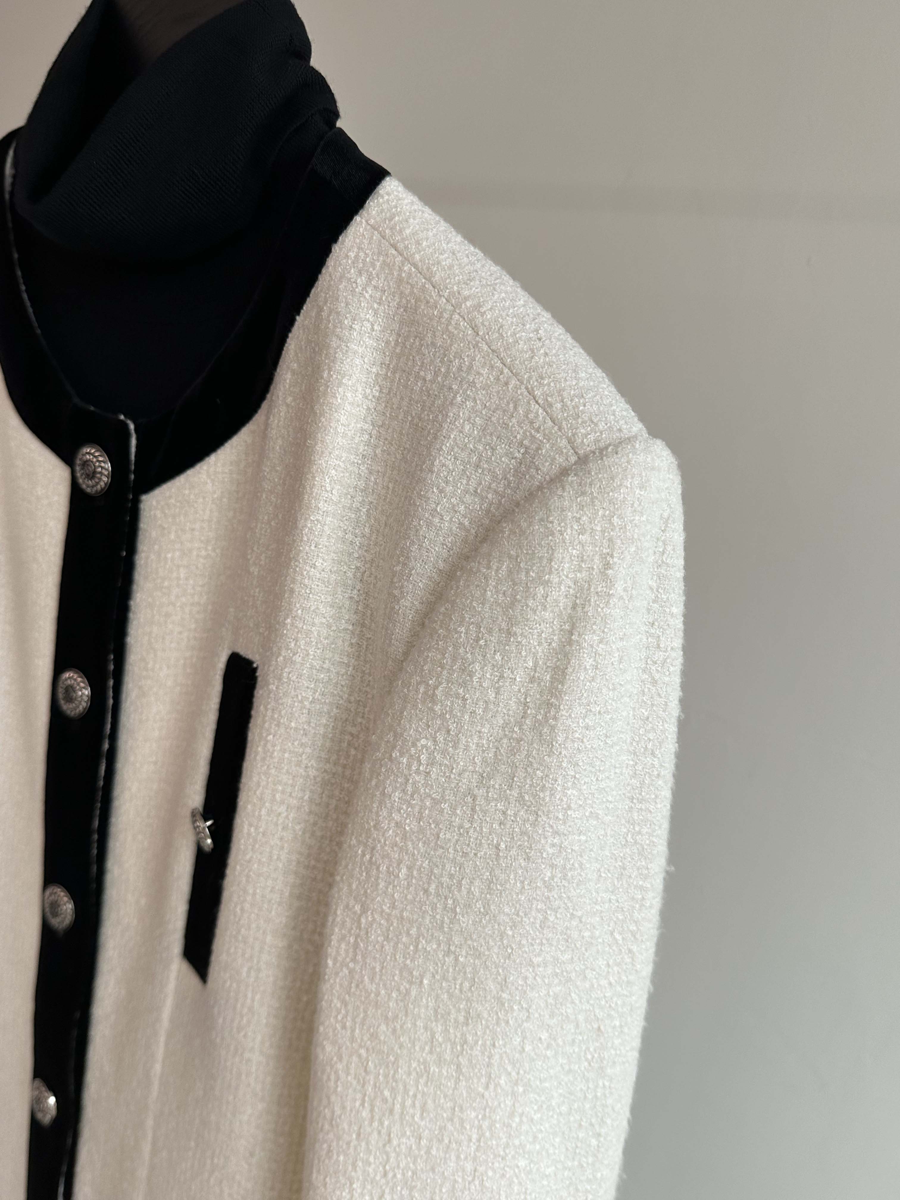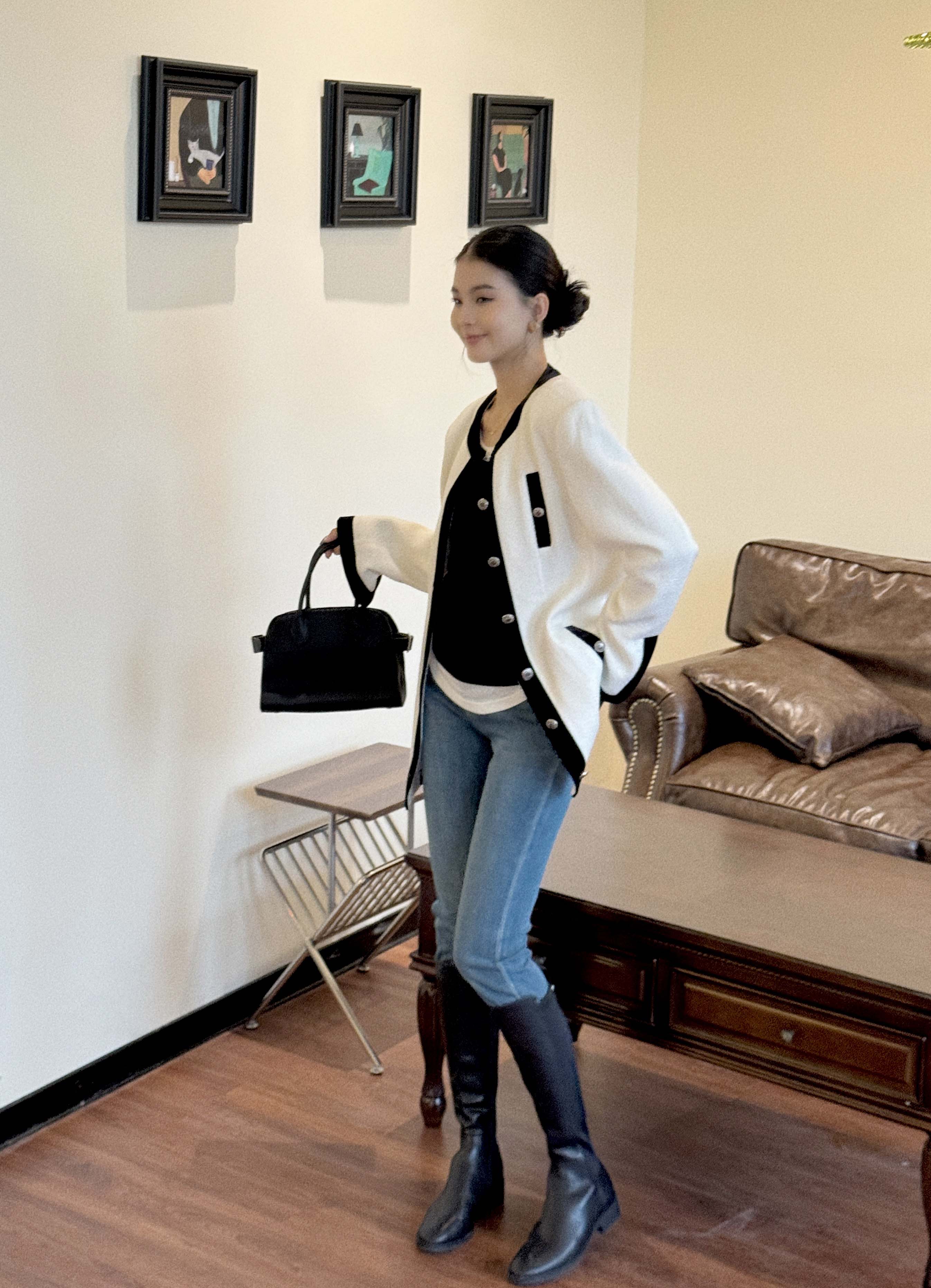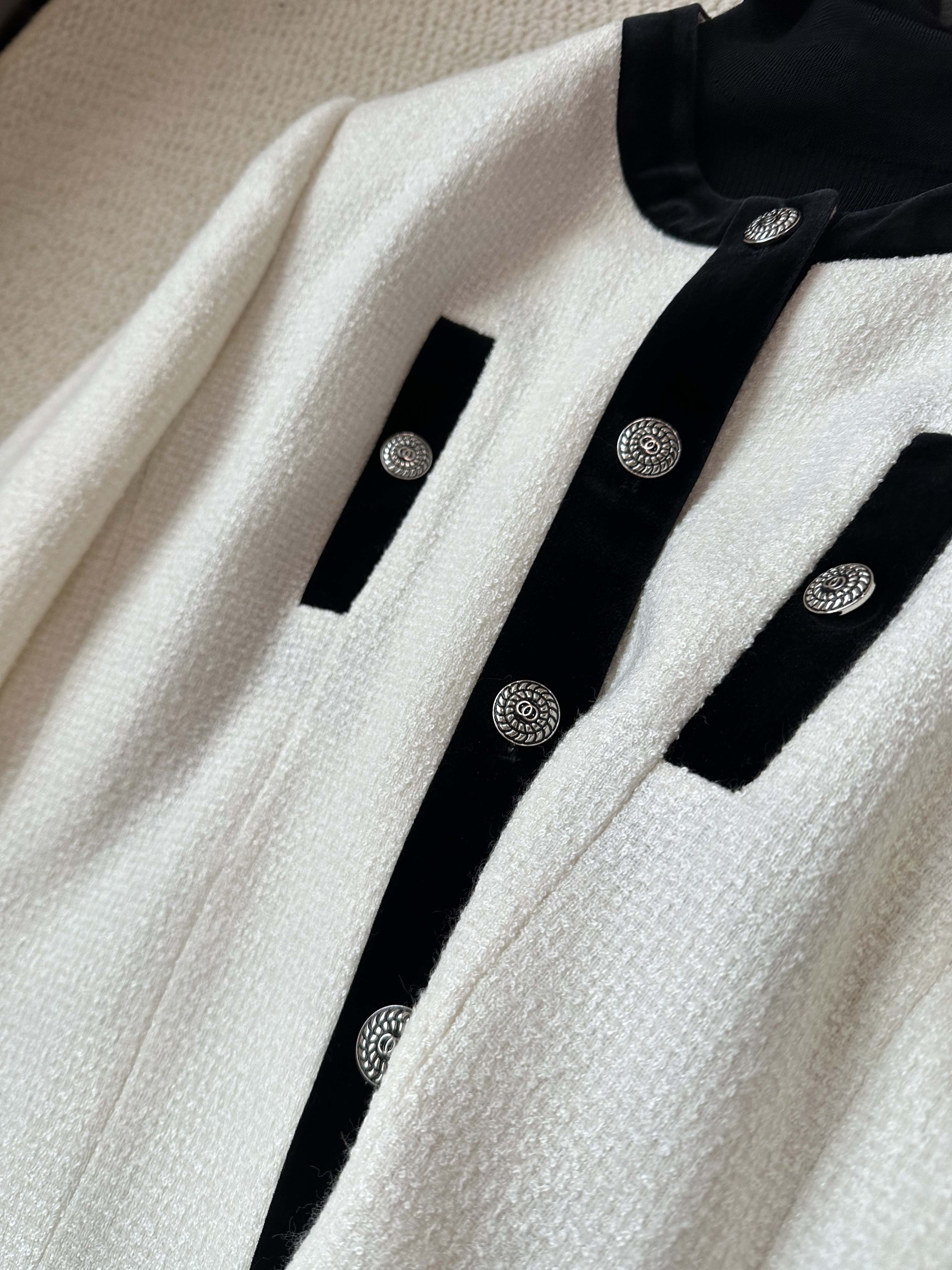 气质名媛小香风|韩系中古白撞黑边羊毛外套