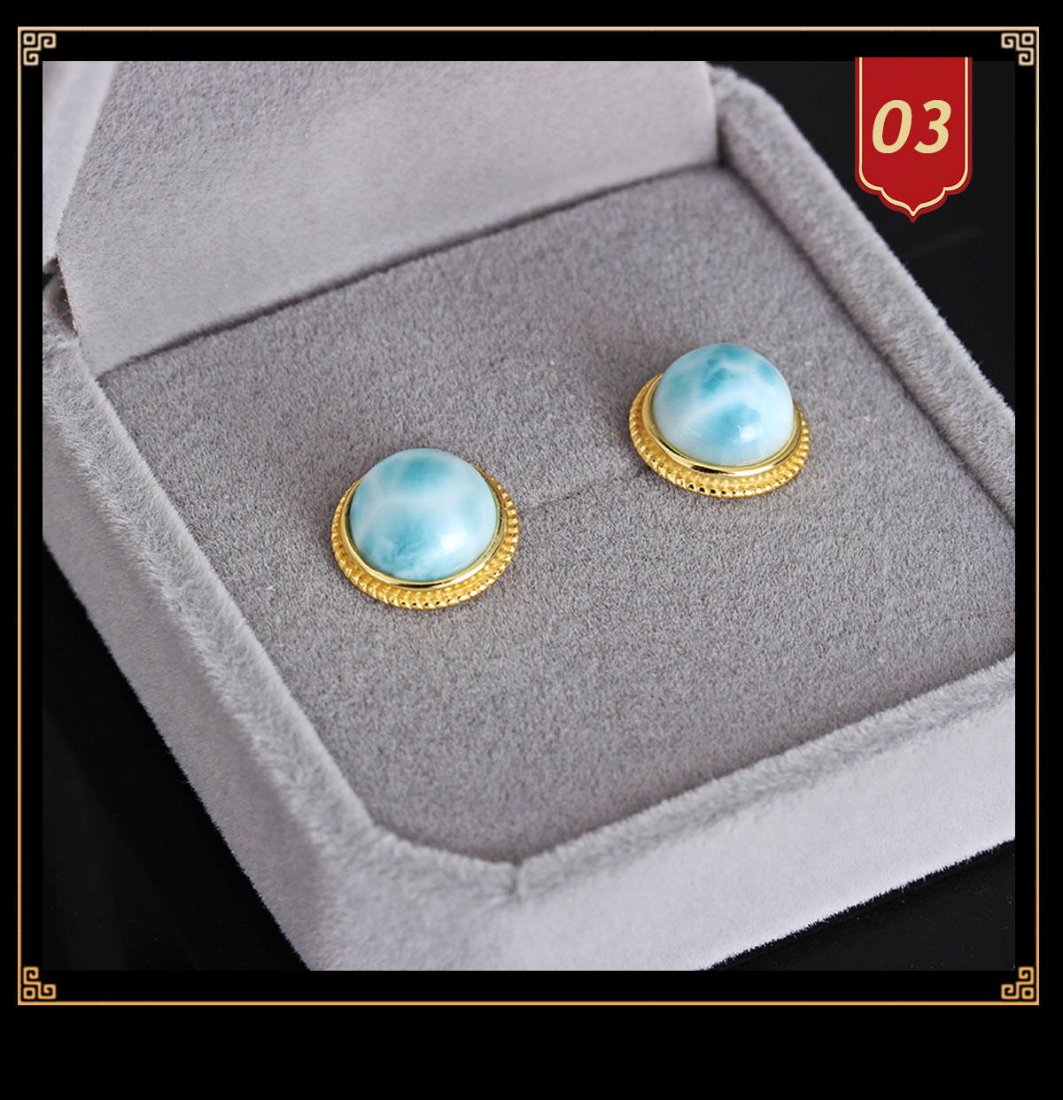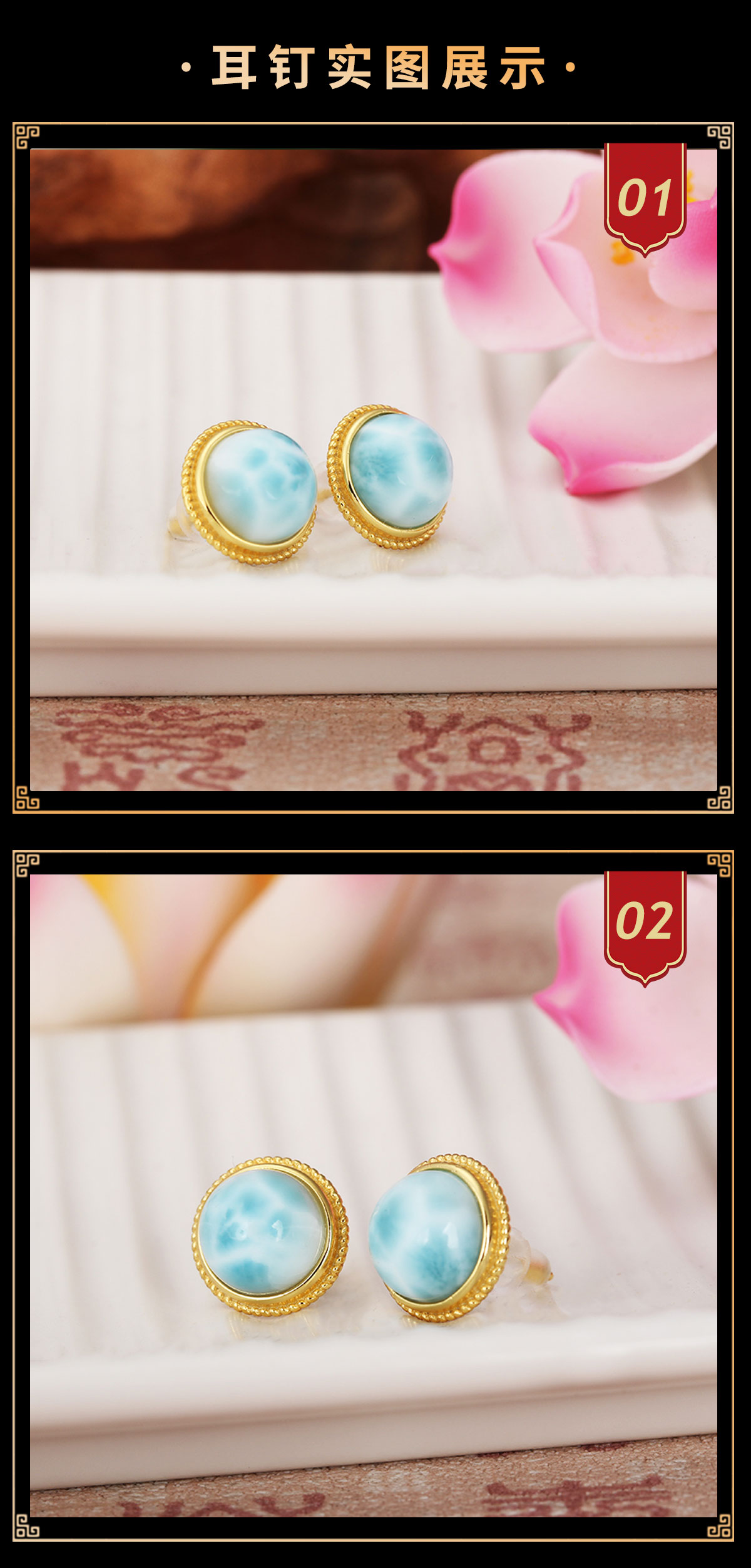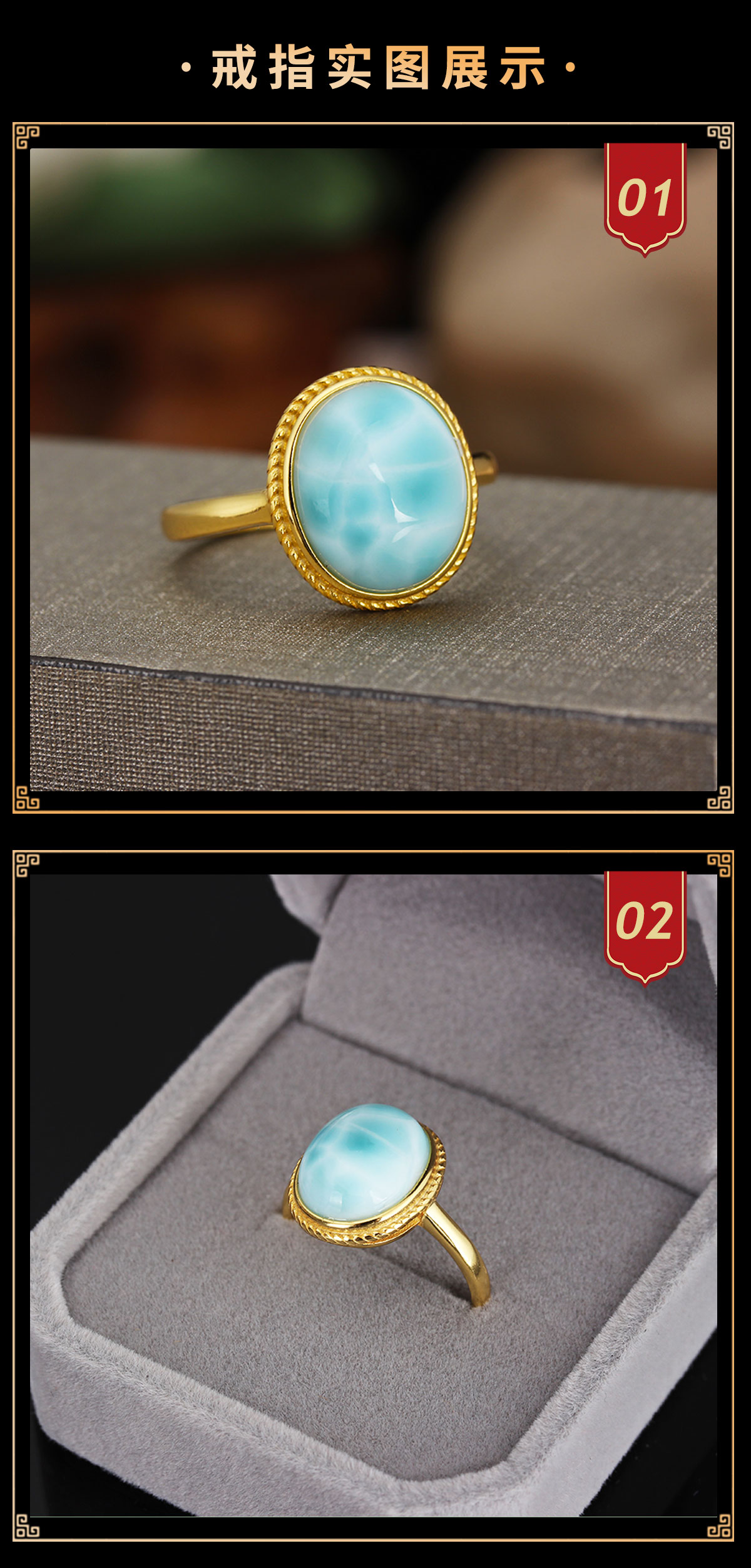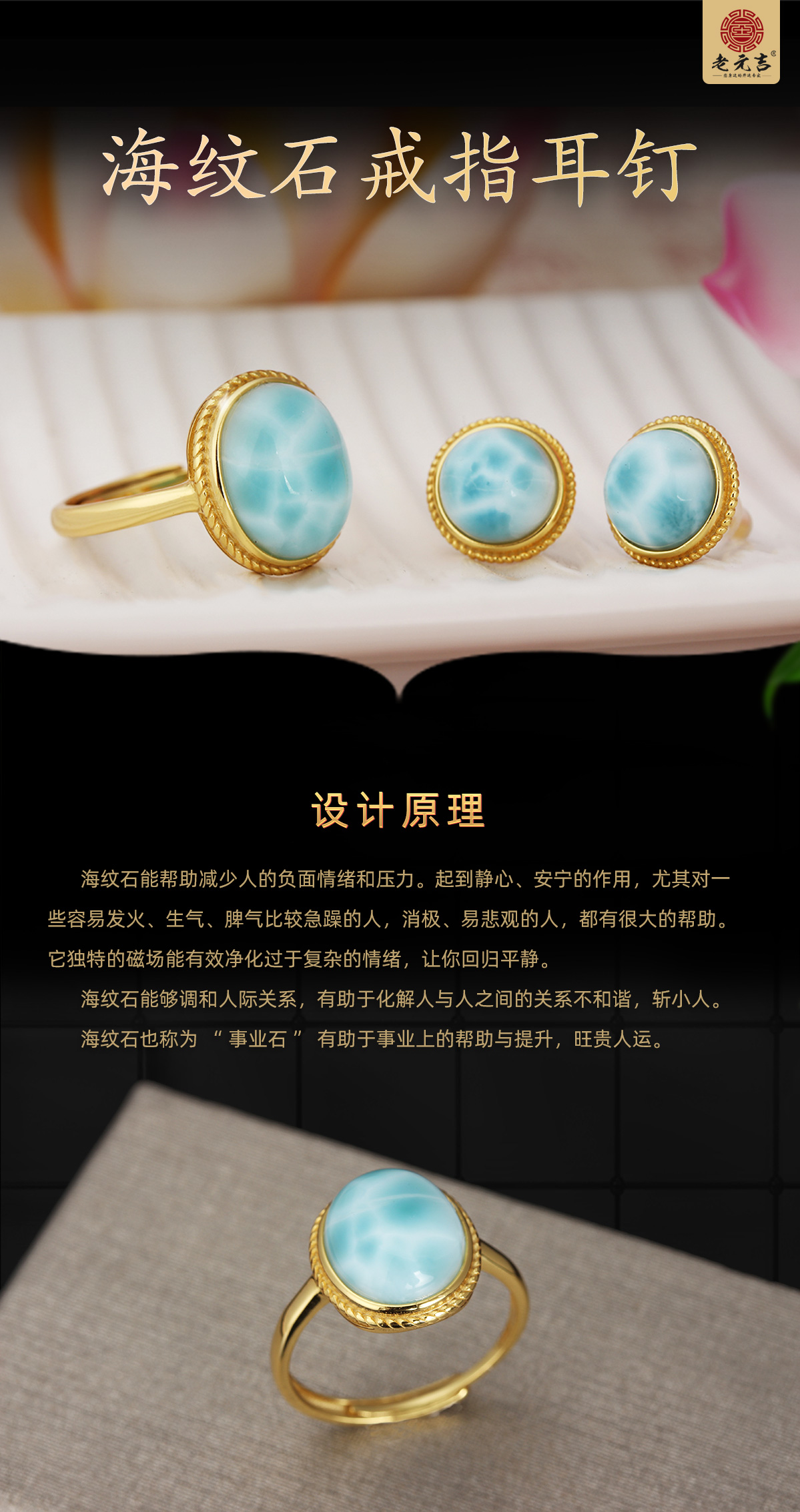 海纹石戒指耳钉复古设计可调节戒指配饰