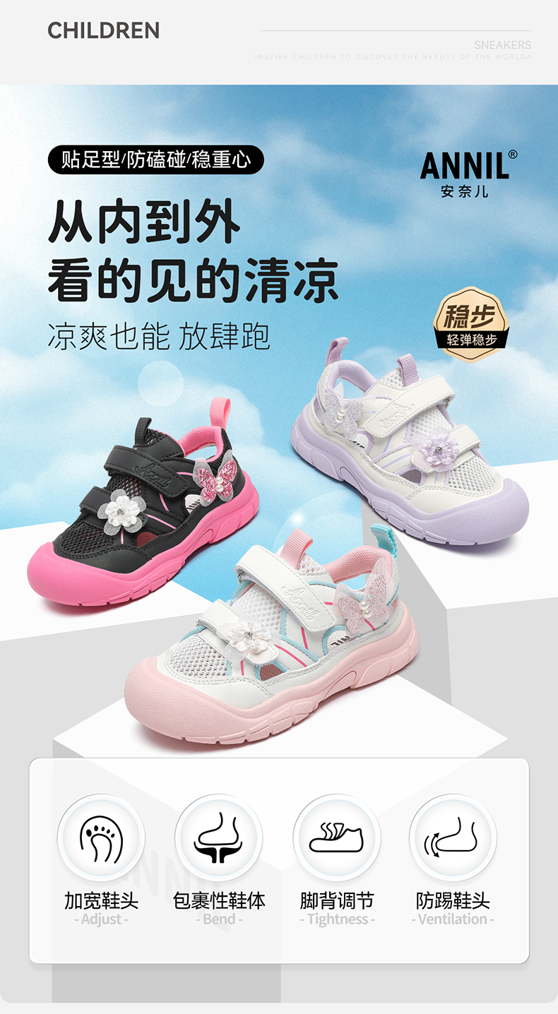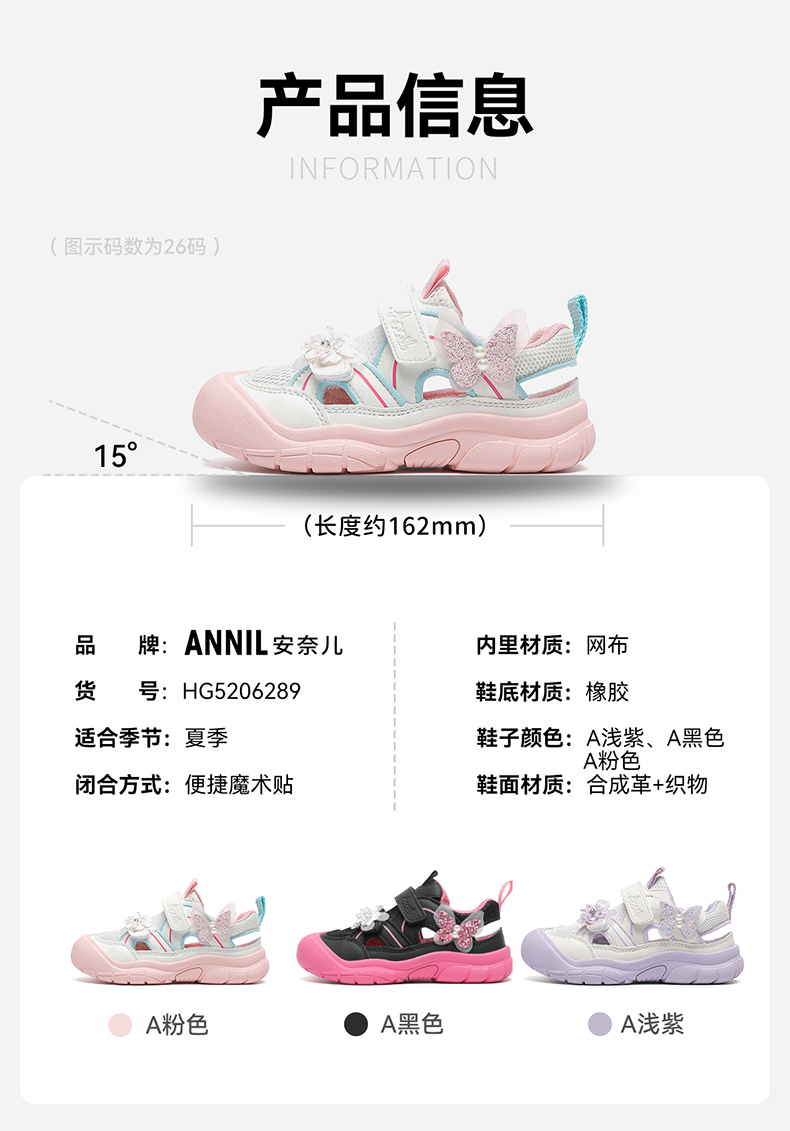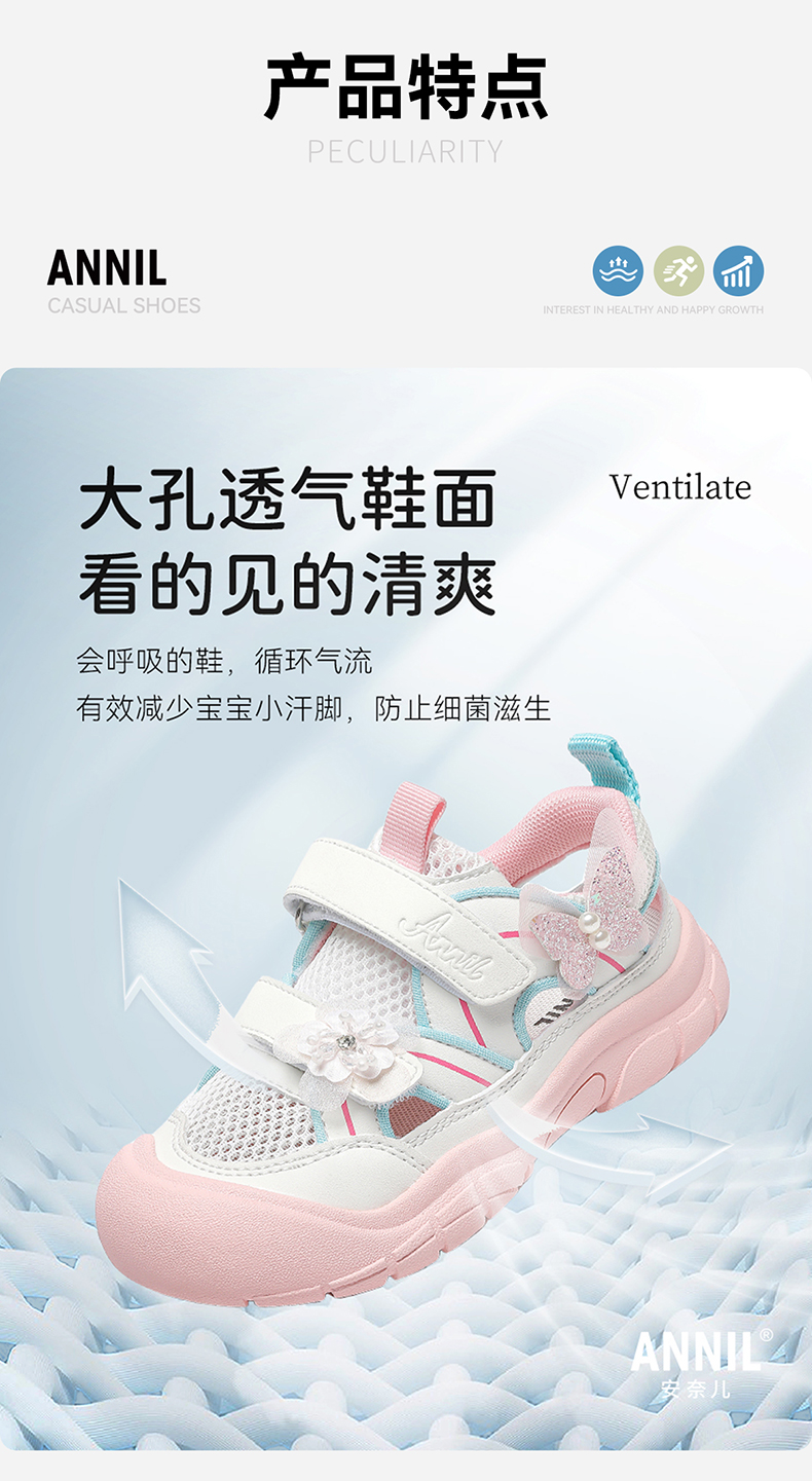 ANNIL/安奈儿夏季女童休闲防滑透气百搭公主时尚运动鞋HG5206289