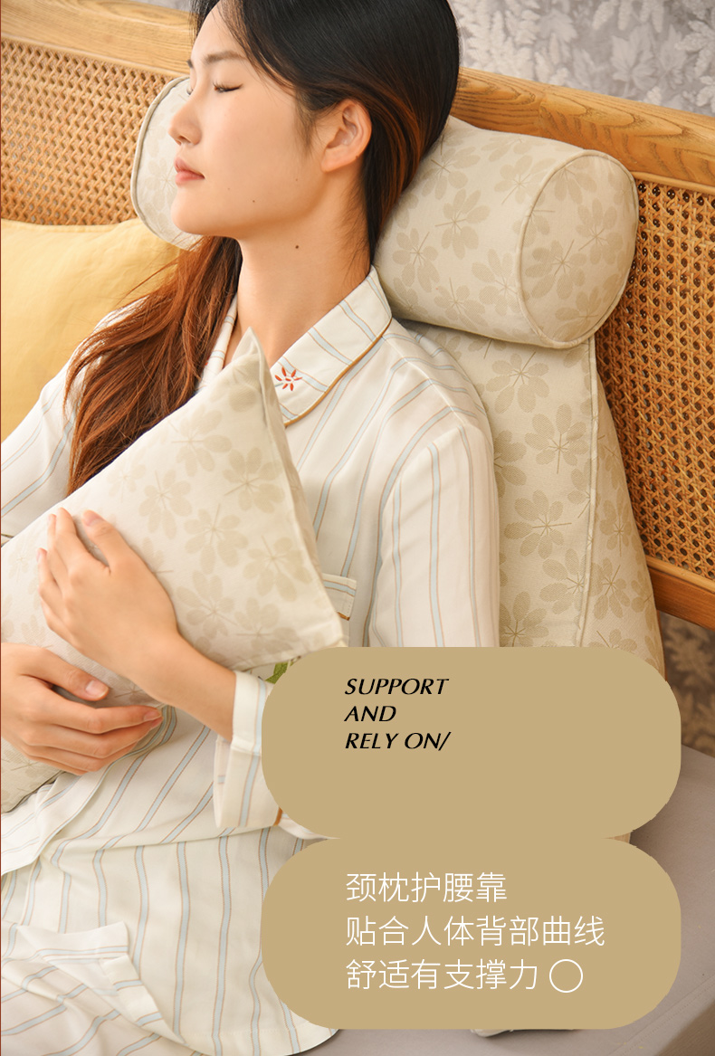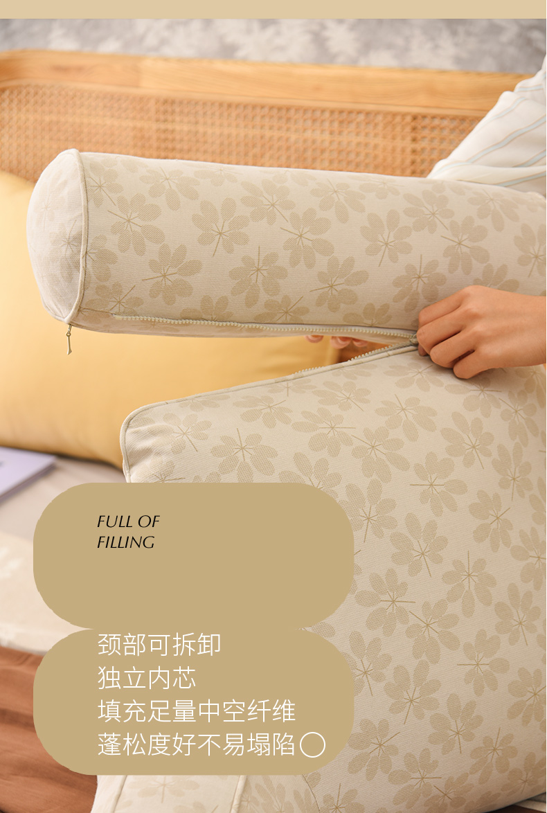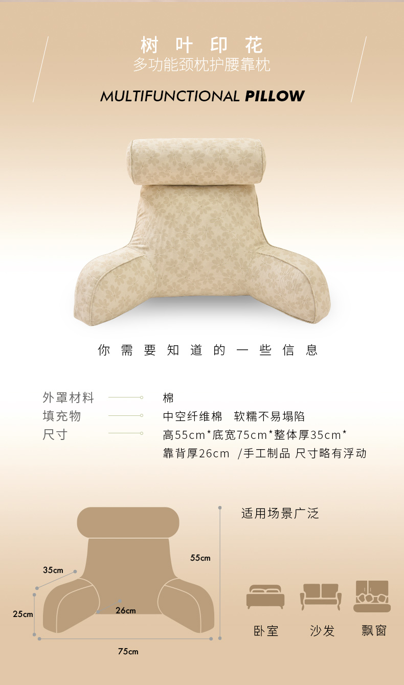 树叶印花颈枕护腰靠大靠背卧室榻榻米护腰沙发飘窗护颈枕可拆洗