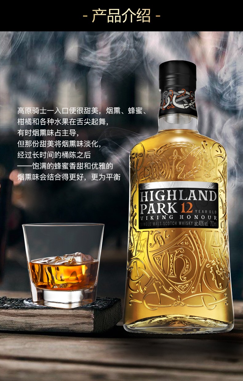 高原骑士(Highland Park)苏格兰单一麦芽威士忌 12年 700ml / 瓶