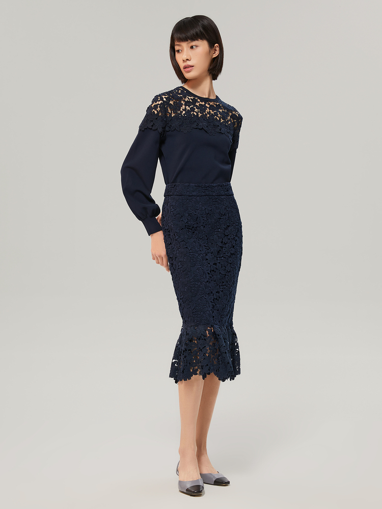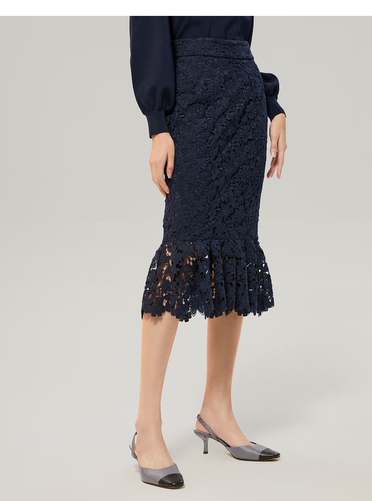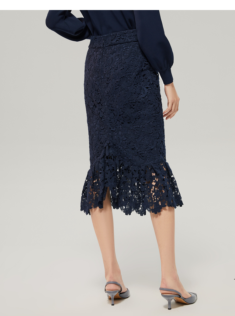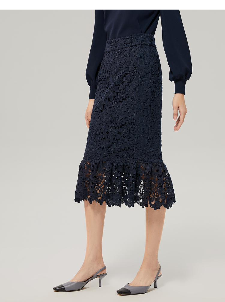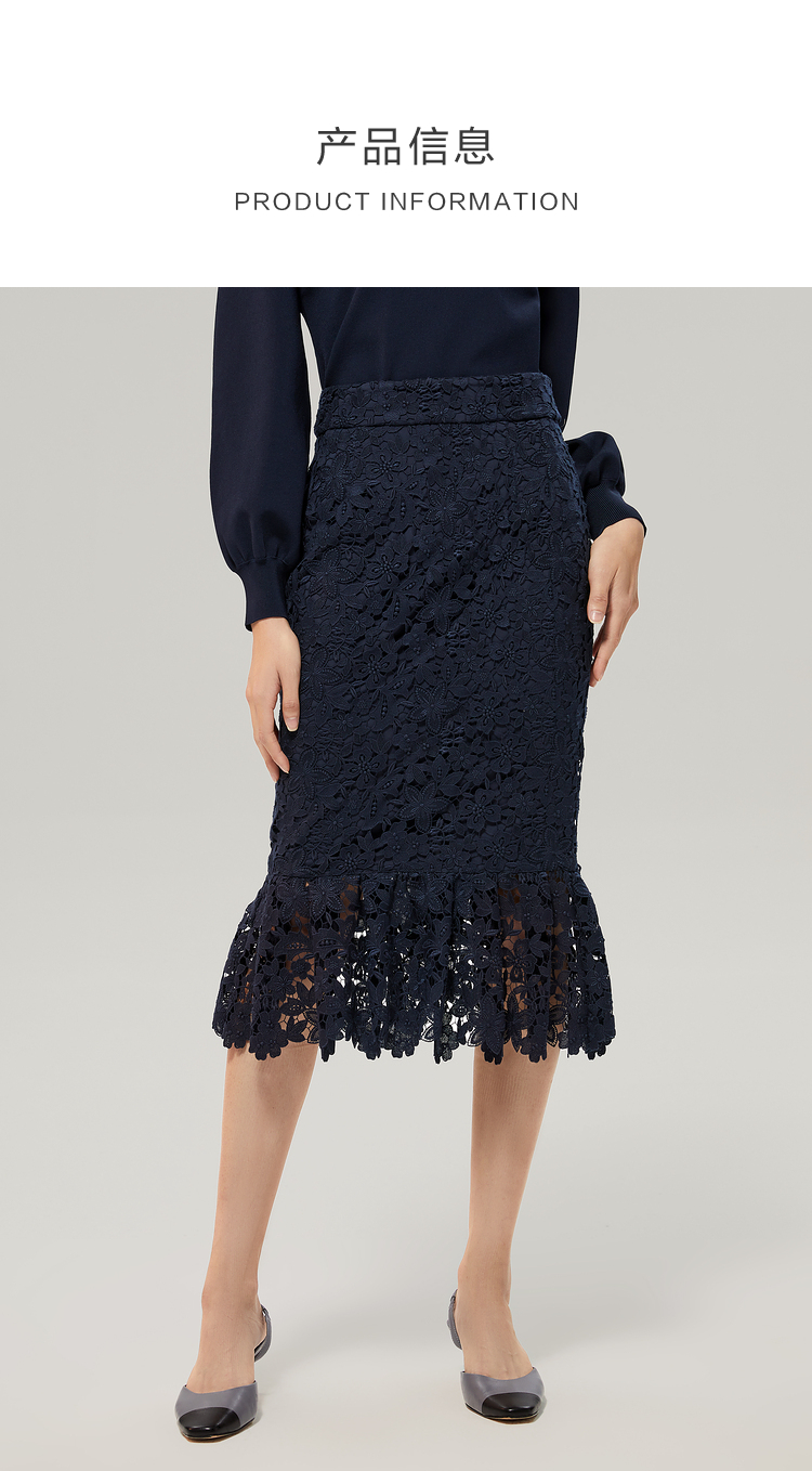OVV 2022秋冬新款女装水溶蕾丝立体修身包臀鱼尾裙半身裙