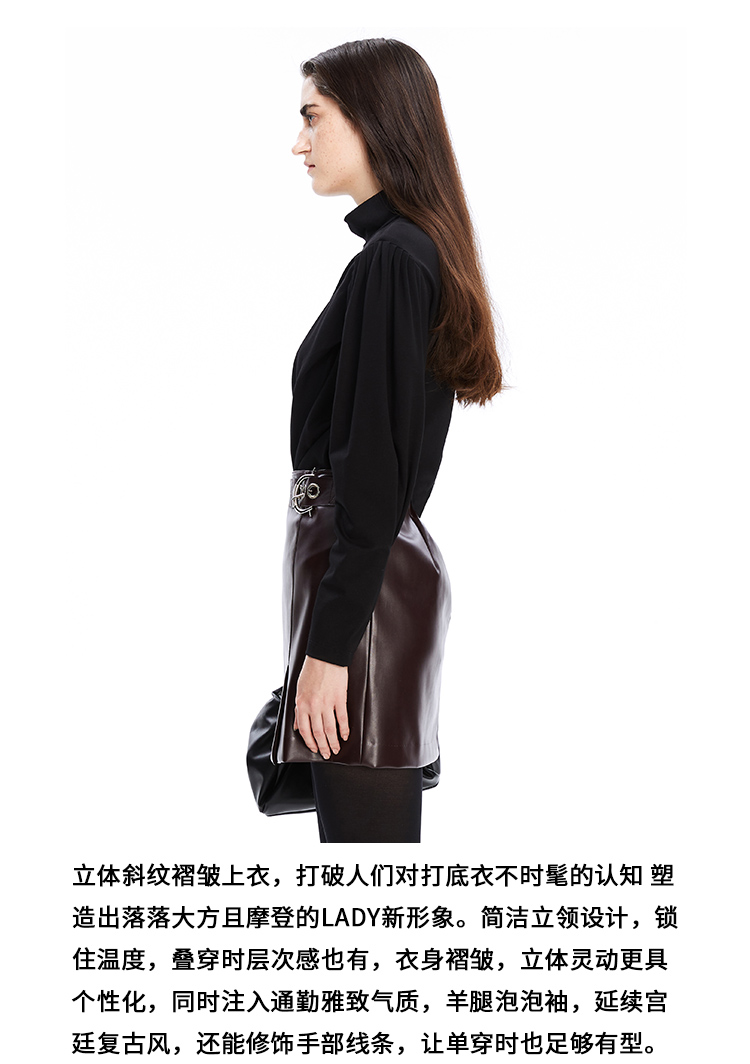 VIMAGE纬漫纪秋季新品简约百搭半高领小上衣打底衫套头V1613210