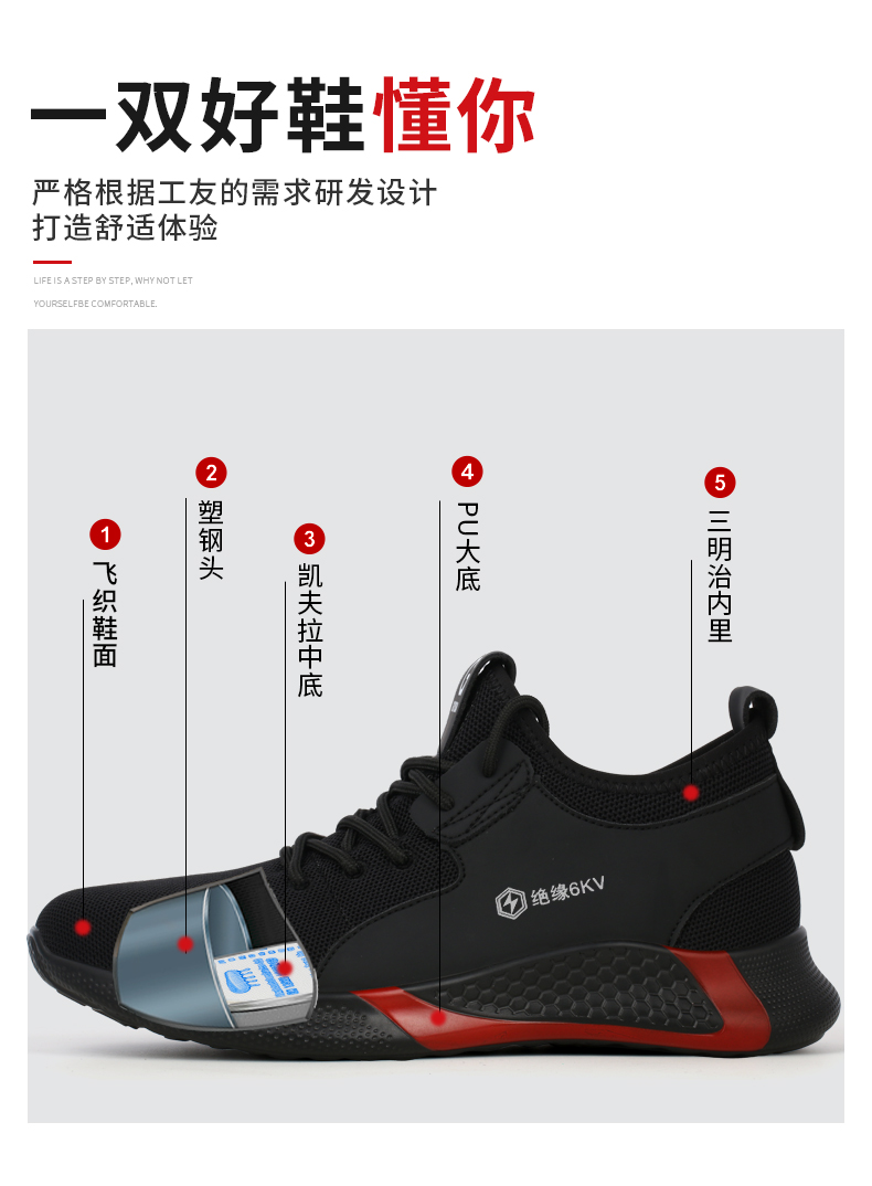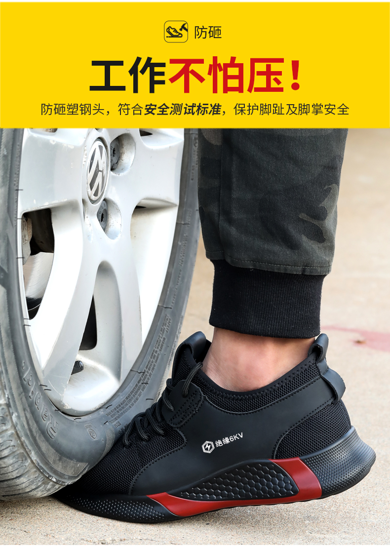 劳保绝缘鞋防砸防刺飞织网面超轻防护鞋