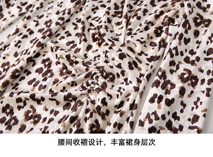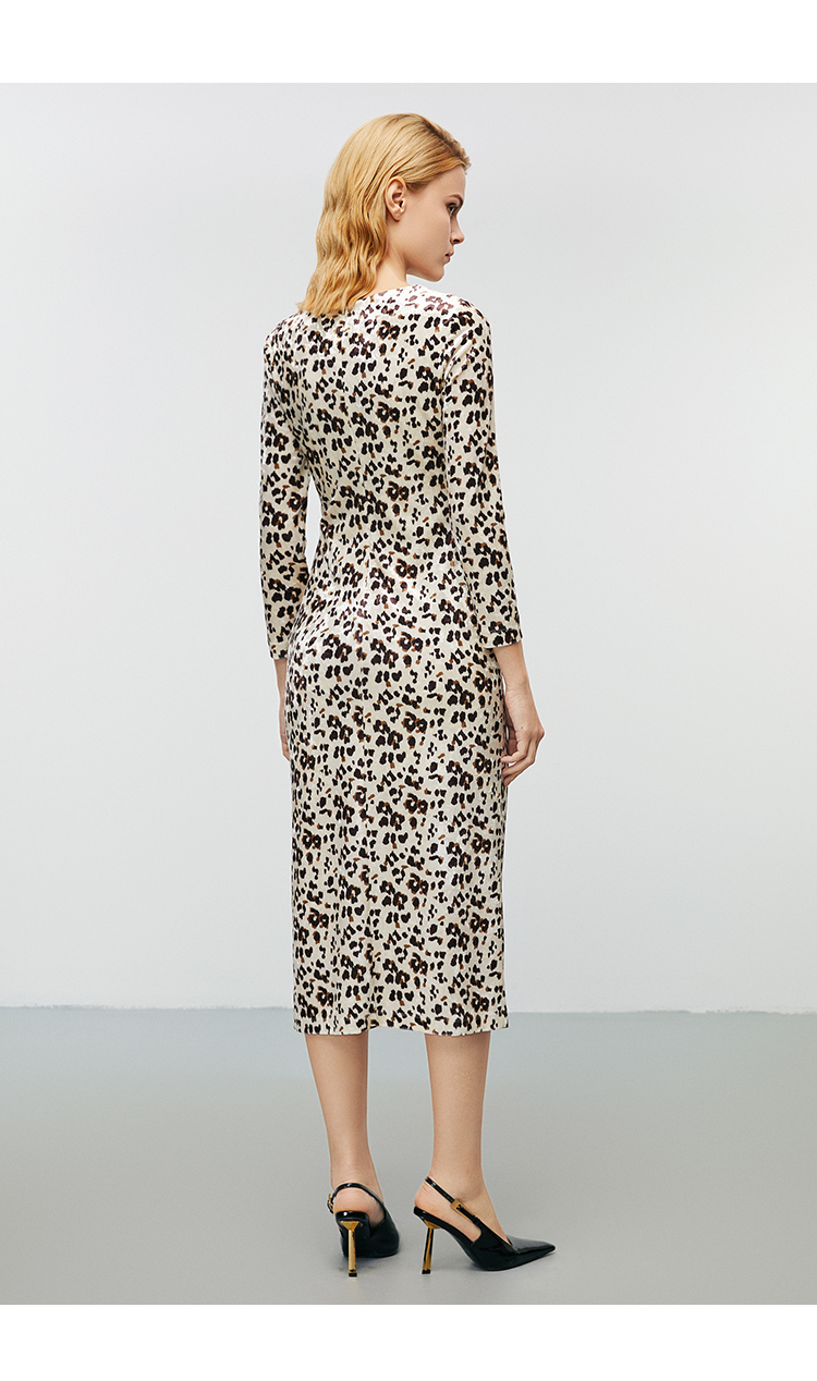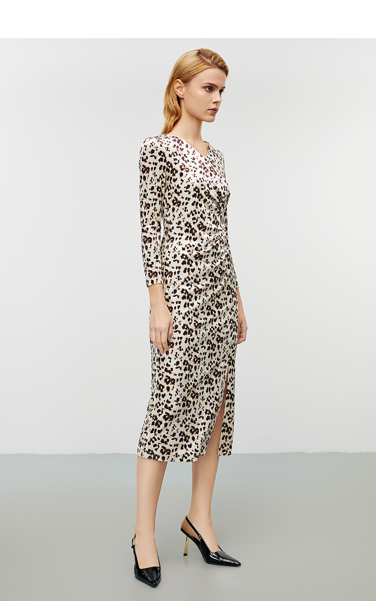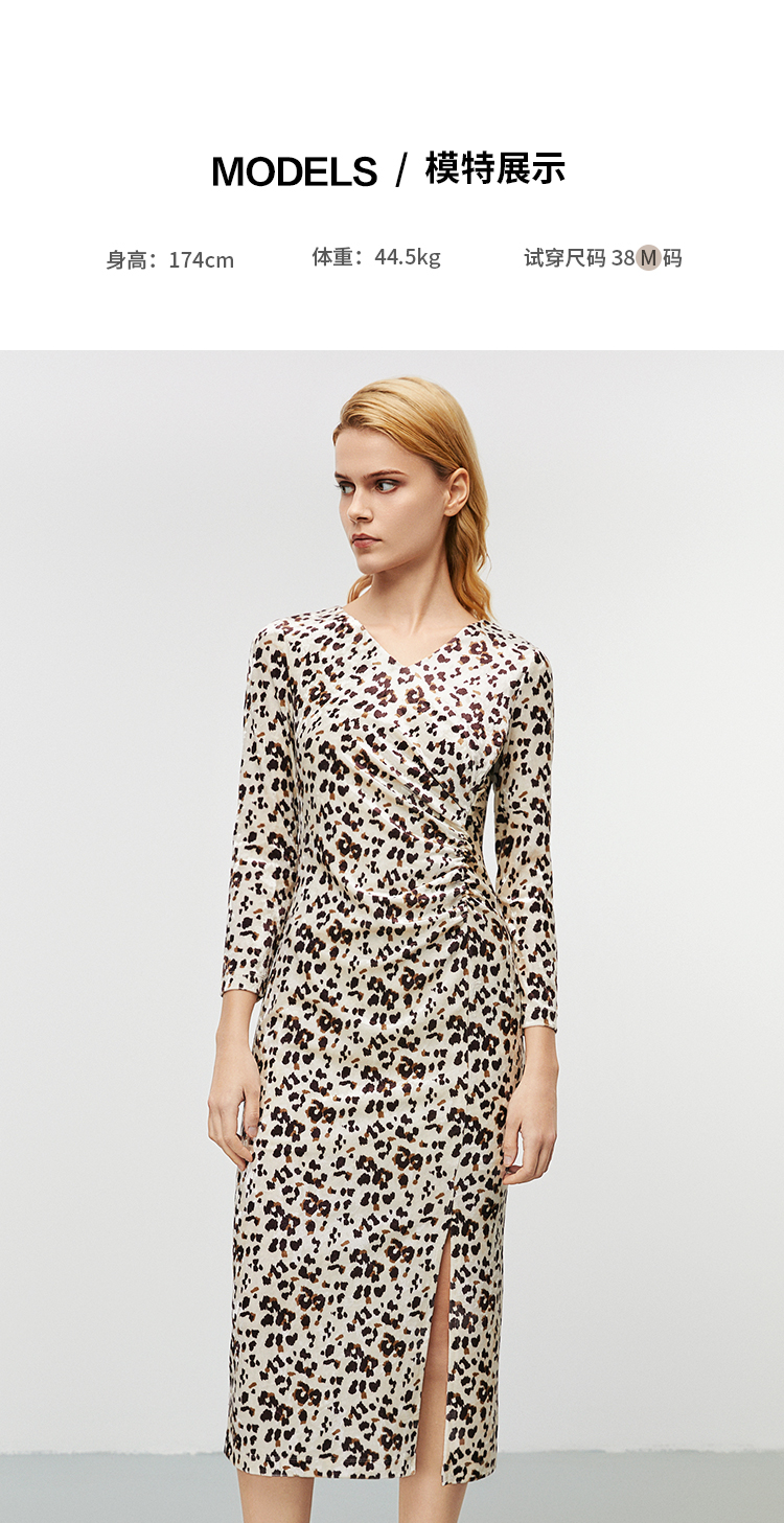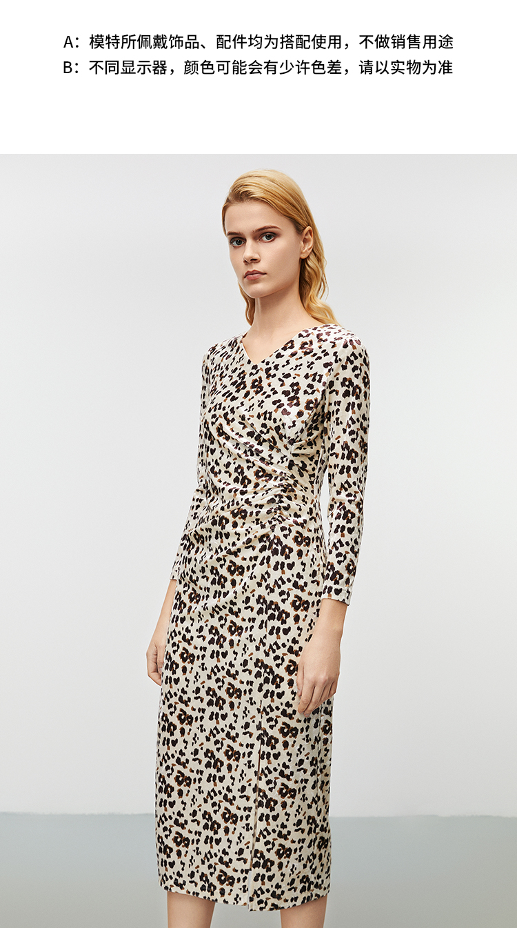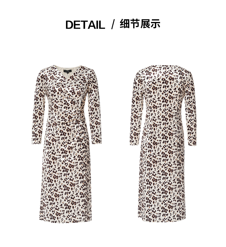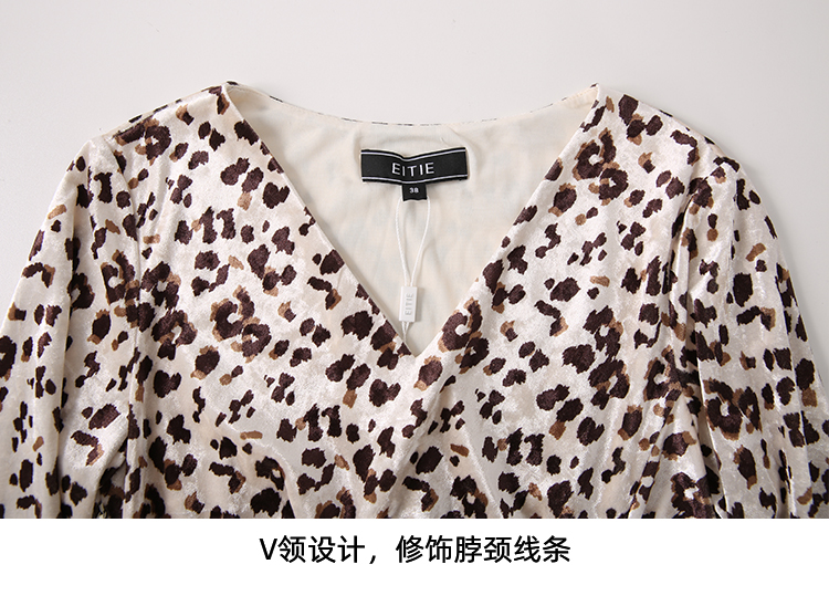 EITIE爱特爱气质V领收腰显瘦通勤百搭开叉印花连衣裙秋季新款7907633