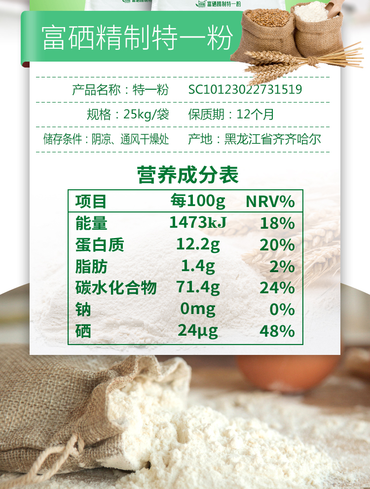 泰来县素食猫品牌富硒精制特一粉小麦粉25千克