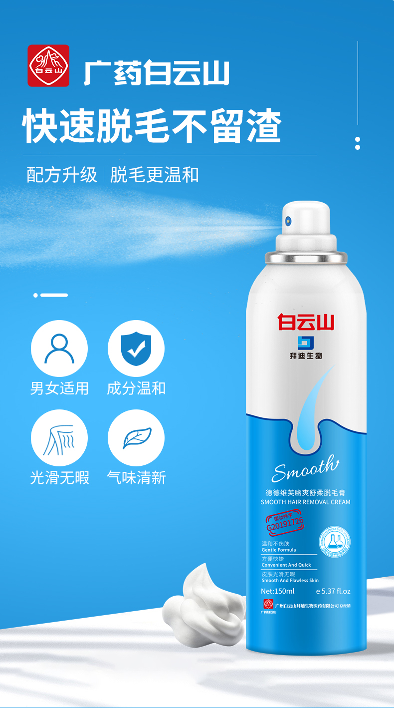 广药白云山脱毛膏喷雾泡沫脱腋下毛全身腿毛非永久神器男女专用