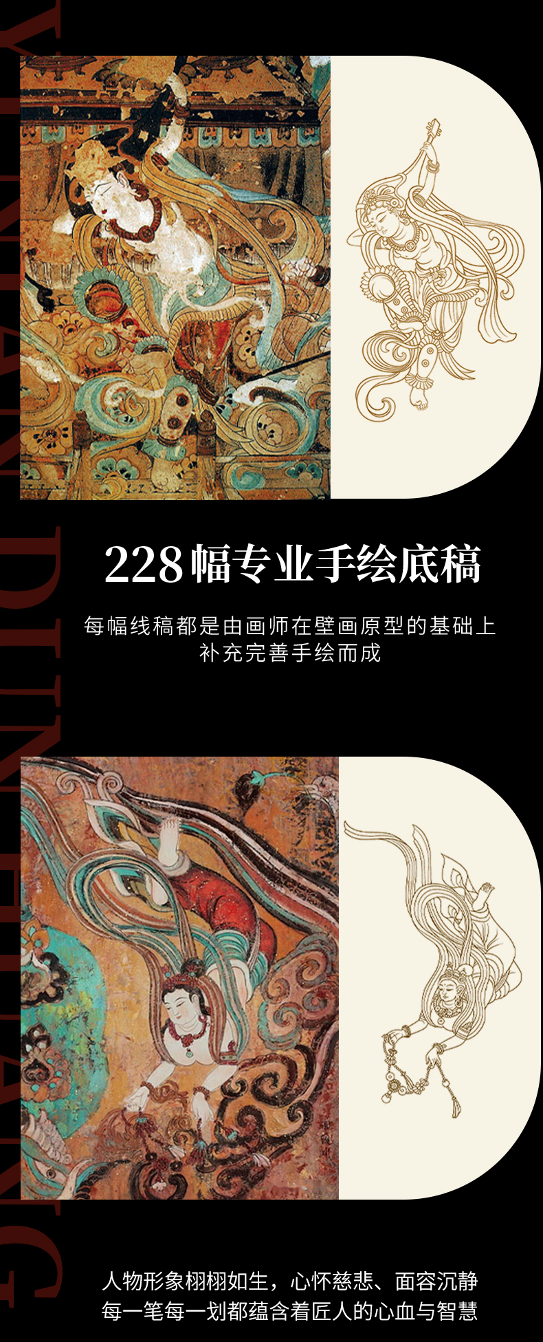 一念敦煌礼盒·敦煌壁画线稿精品描摹 全3册 纹样篇 装饰篇 人物篇