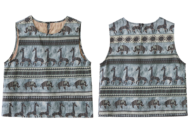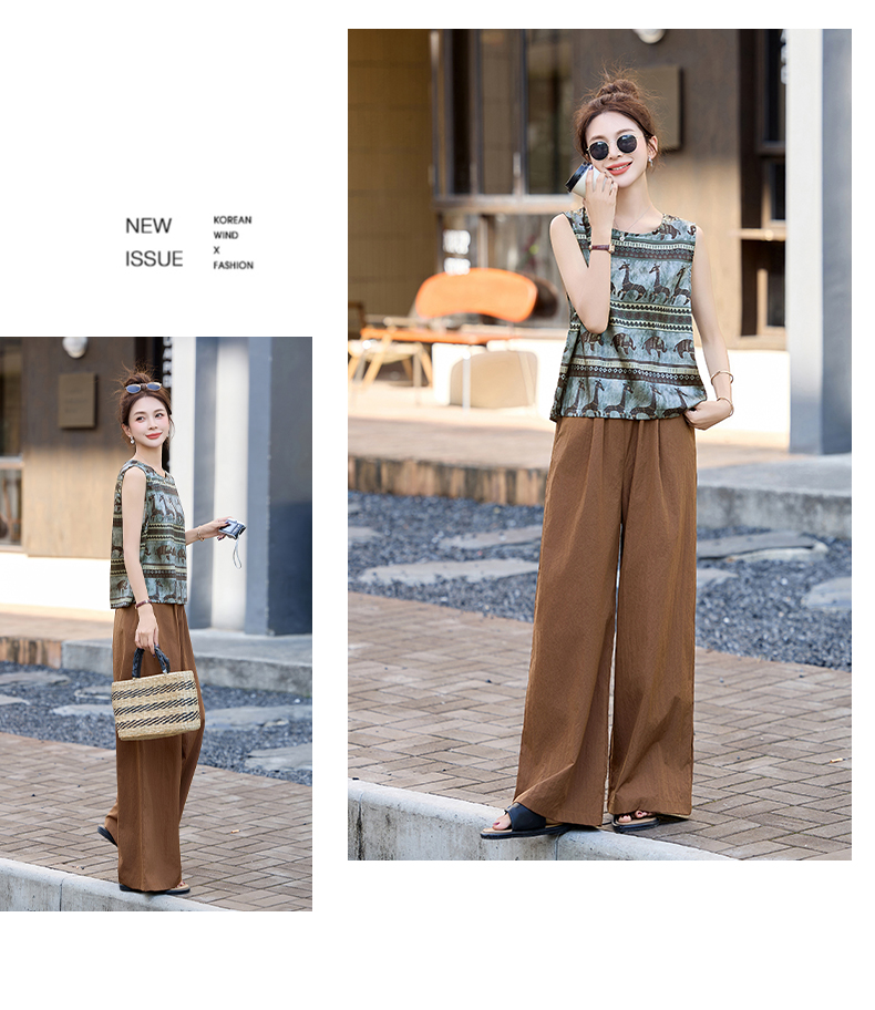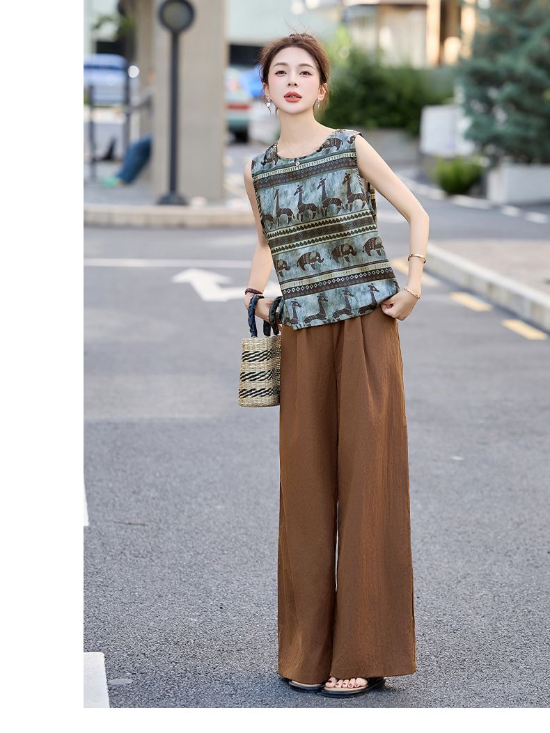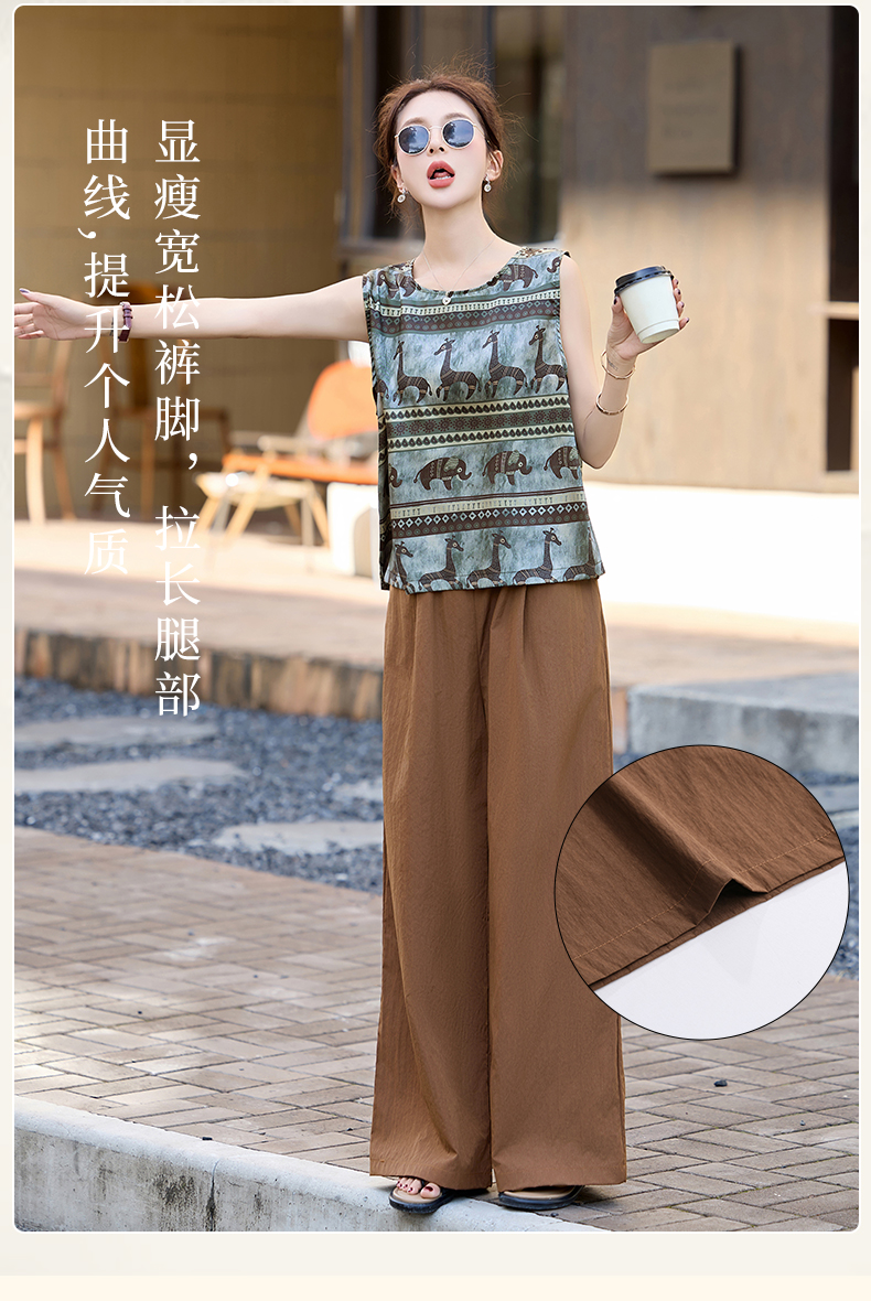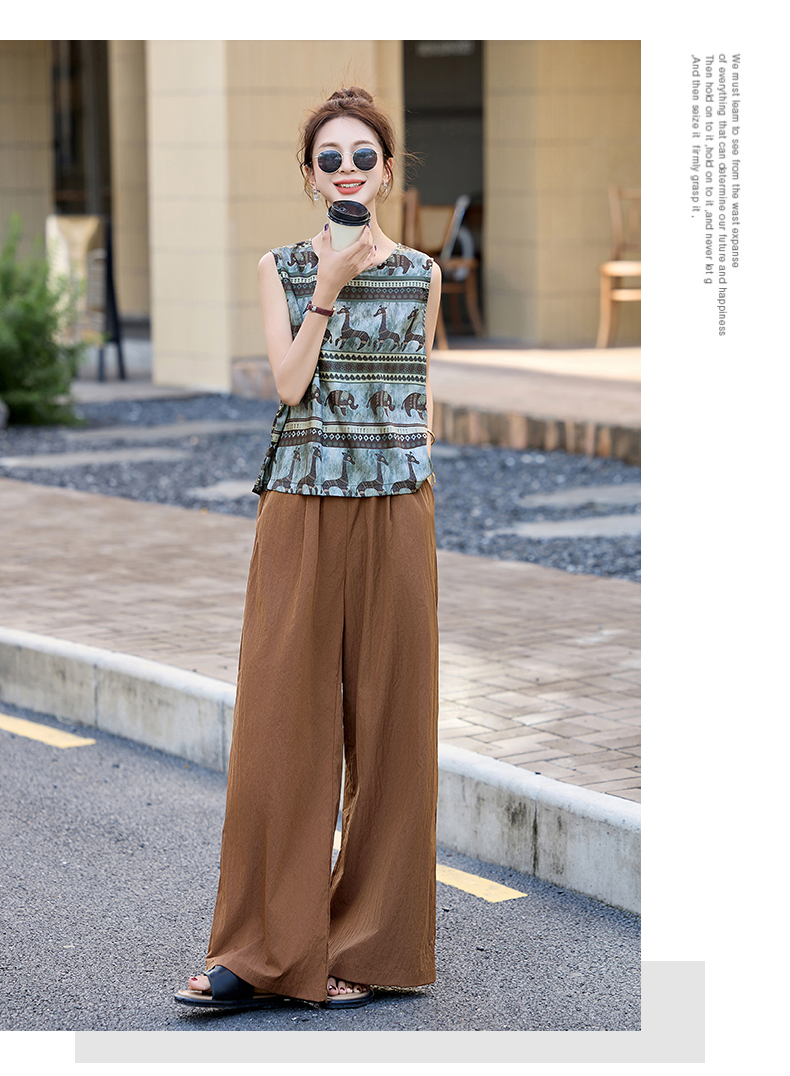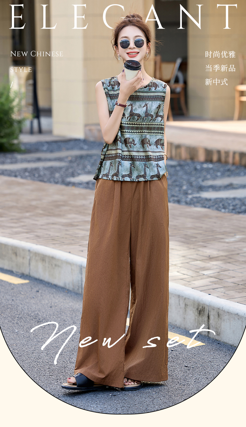 夏装复古老钱风气质圆领印花背心休闲阔腿裤套装女 HPT-CPYY8151