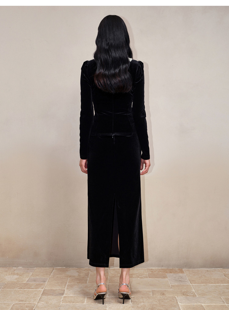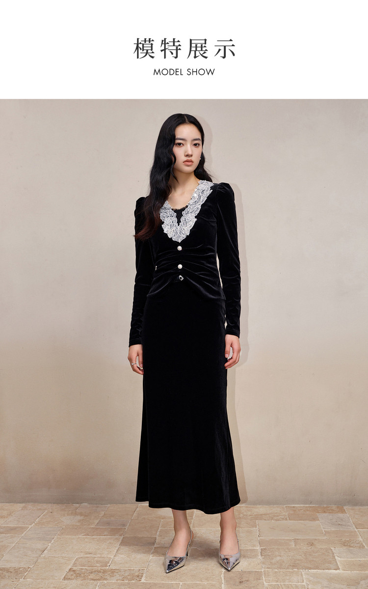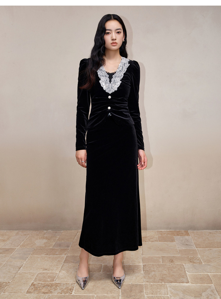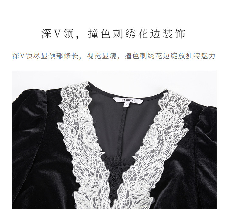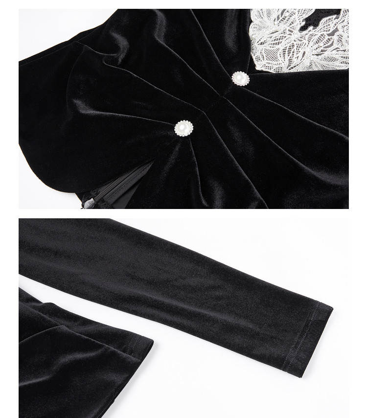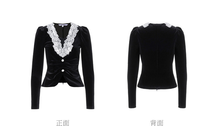 法式优雅复古氛围感丝绒蕾丝上衣修身MS88TP501A90