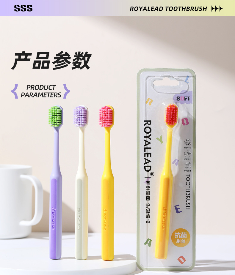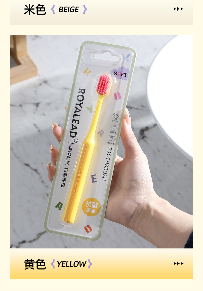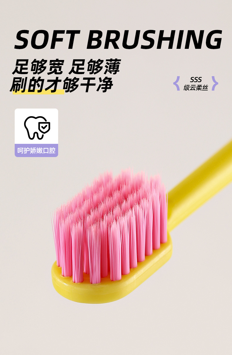 【小胖墩宽头,刷牙新活力~】三支装!小胖墩成人抑菌软毛牙刷单支装 家用情侣护龈宽头软毛高级牙刷-QQ