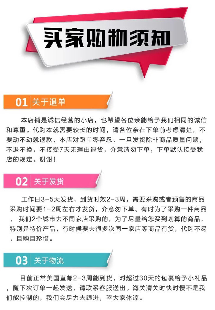 - 北美GO是一家专业从事海外代购和跨境电商店铺,保证代购商品均为国外正规网站、超市、专卖店采购后寄到客户指定地址,无中文标签。本店只提供海外代买服务,不承担商品的具体功效承诺及异议。
