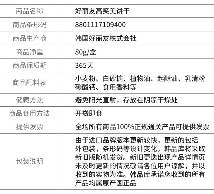 오리온고소미과자好丽友高笑美饼干70g