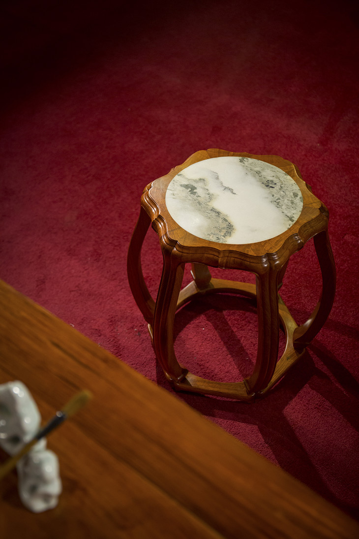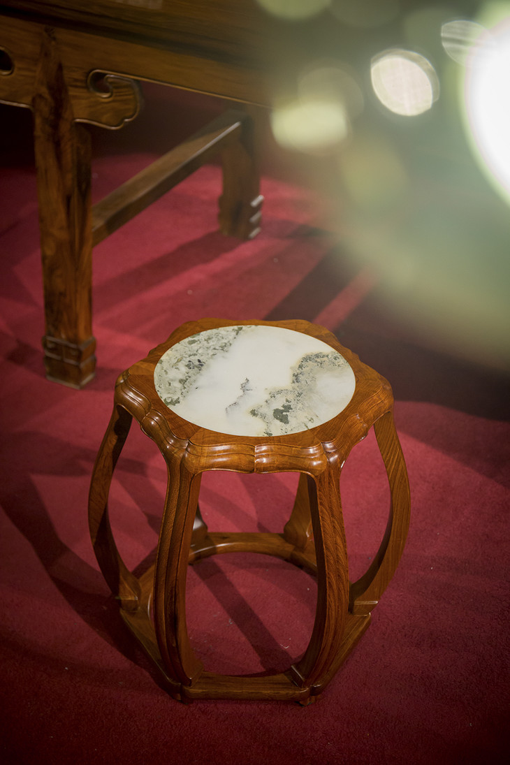 48 石面 六足海棠 圆鼓凳