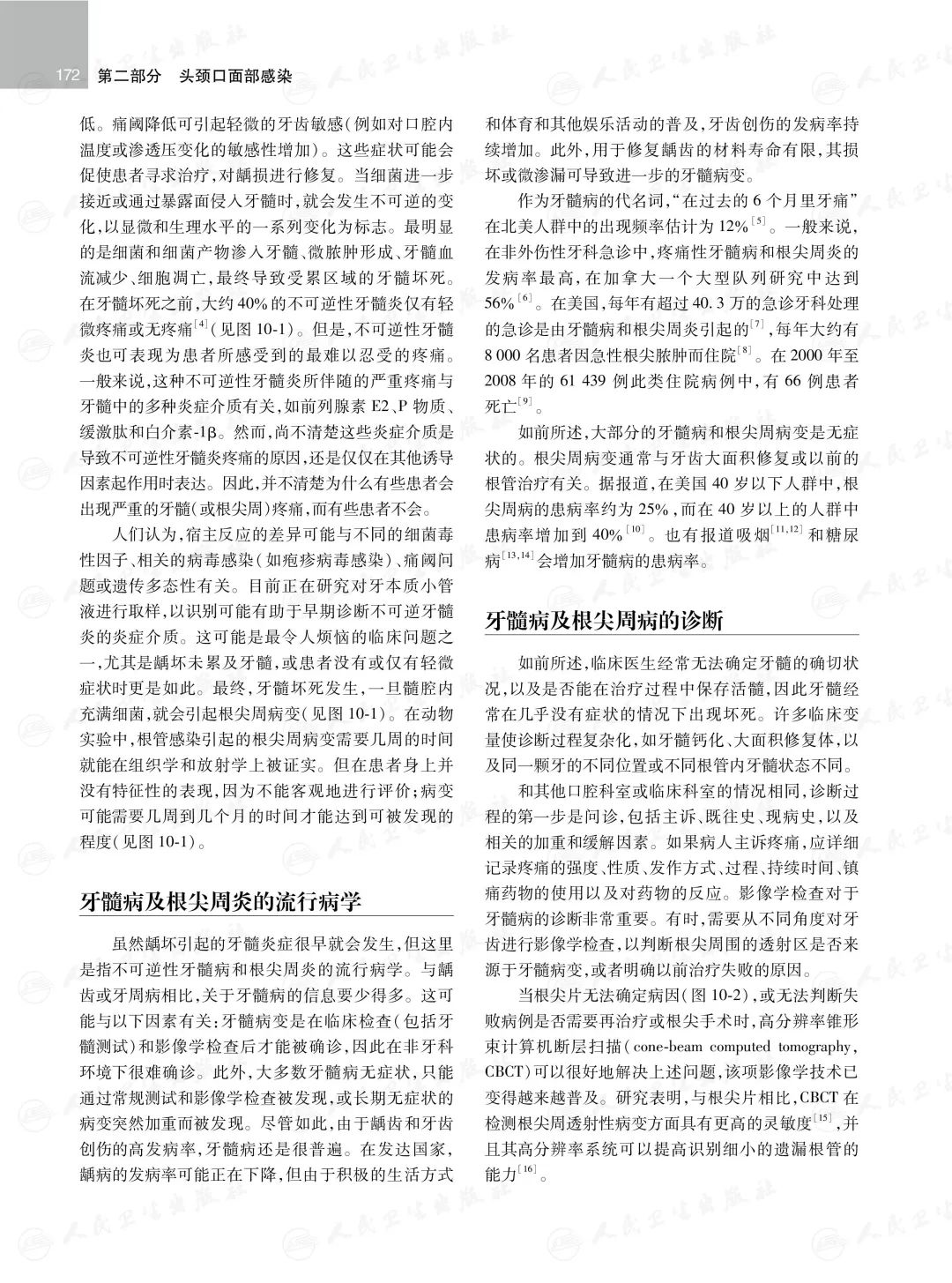 口腔内存在着人体独一无二的器官——牙齿。从出生后半年一直到生命的终点,细菌等微生物可以通过牙齿硬组织、牙周组织以及冠周组织进入牙齿、牙槽骨以及深部的颌骨,从而造成牙齿、牙周的感染,以及头颈口面部间隙感染和颌骨骨髓炎。正是由于牙齿这一特殊的存在,头颈口面部才会发生各类型的“牙源性感染”。还有,牙源性感染还可作为局部诱发因素,造成放射性颌骨坏死以及药物性颌骨坏死。牙源性感染还会向眼眶、颅脑扩散,甚至向全身播散,而危及生命。